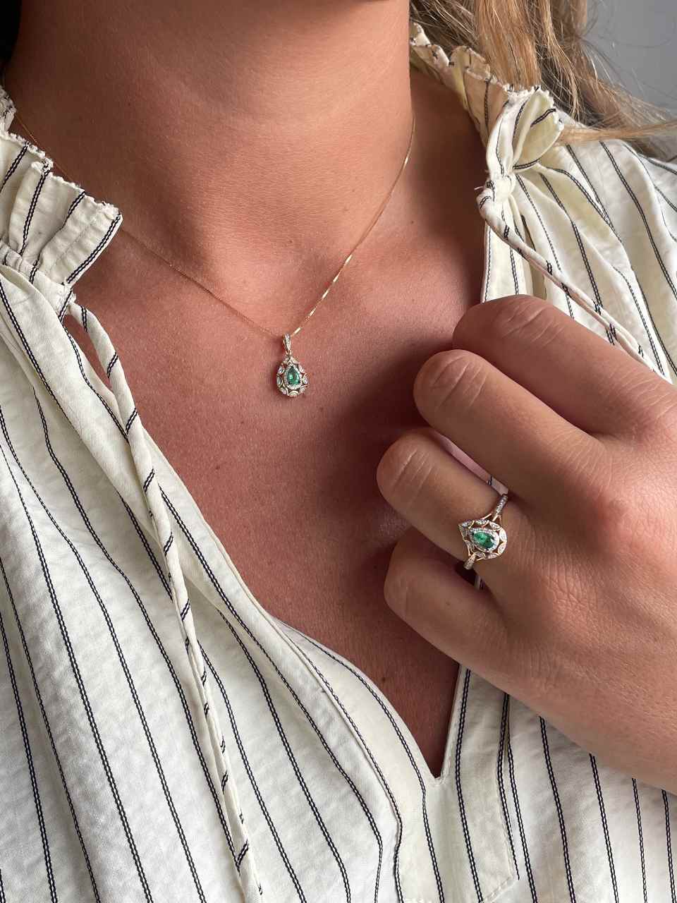 SAIREN is an Art Deco-style ring with a diamond and emerald center, ideal for a special occasion . Set in 14-karat yellow gold, it's perfect for everyday wear.