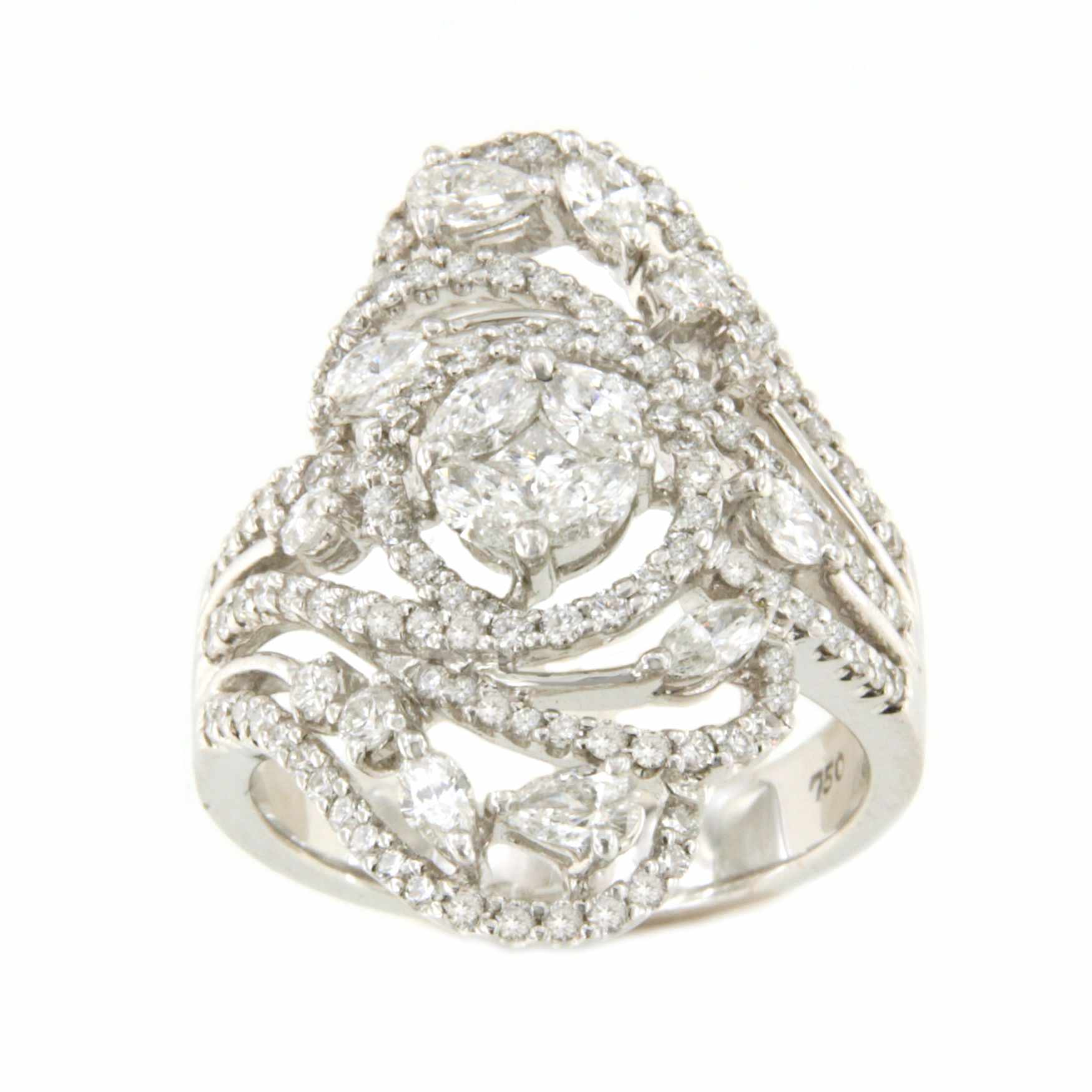 SITGES 18k white gold ring with diamonds, marquise and princess