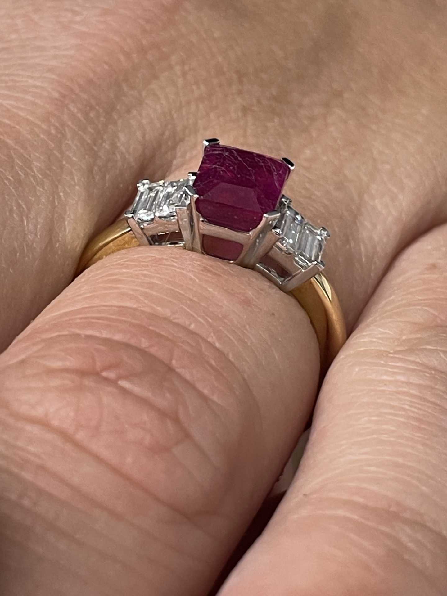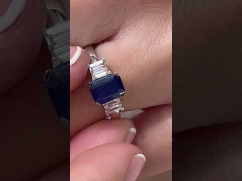 Precious gem: 4 baguette cut diamonds (0.48 carats), 1 diffusion sapphire (2.07 carats) or 1 fusion ruby (2.38 carats).