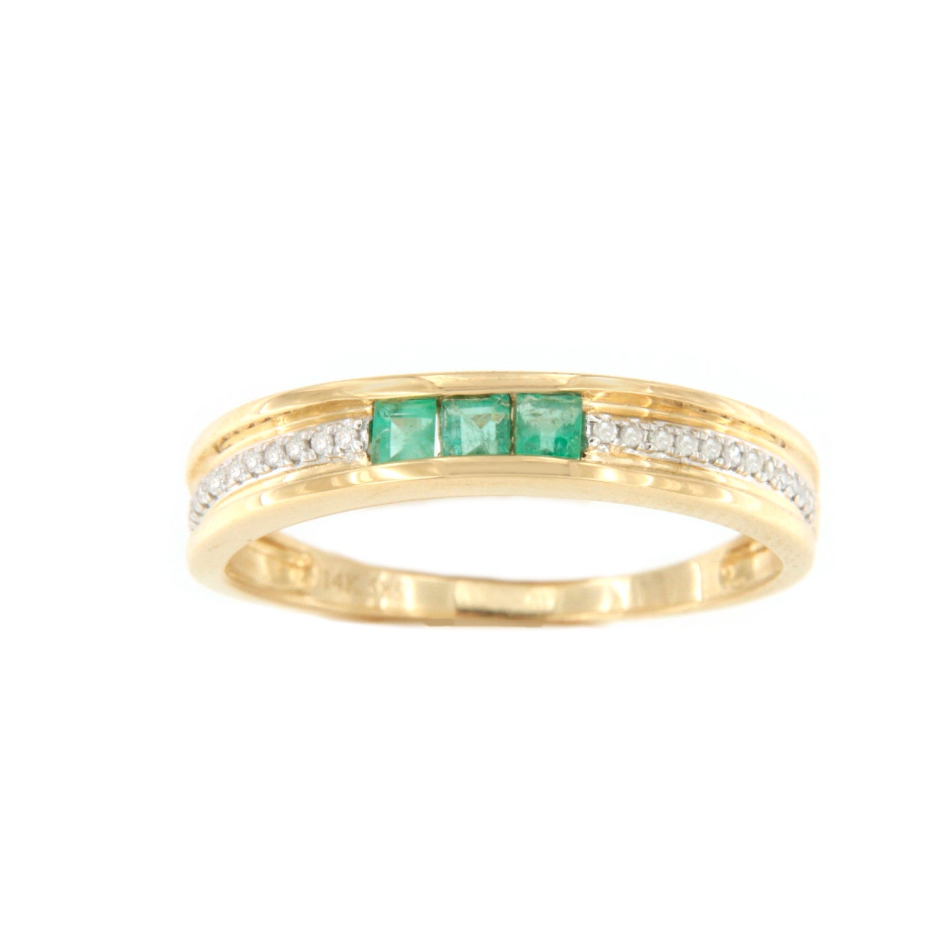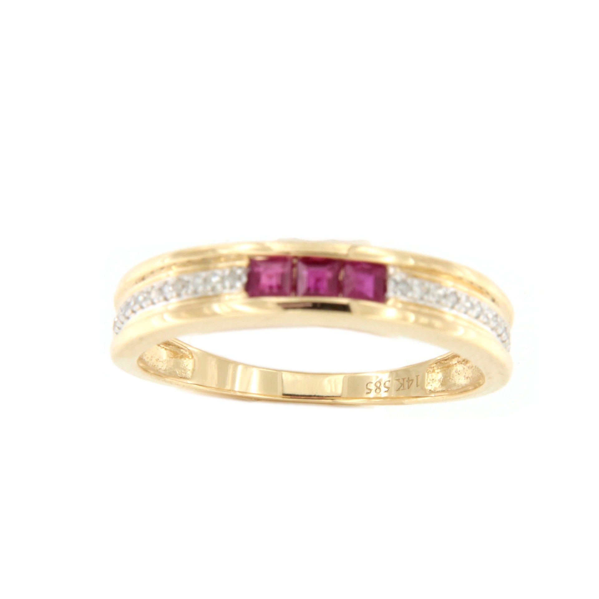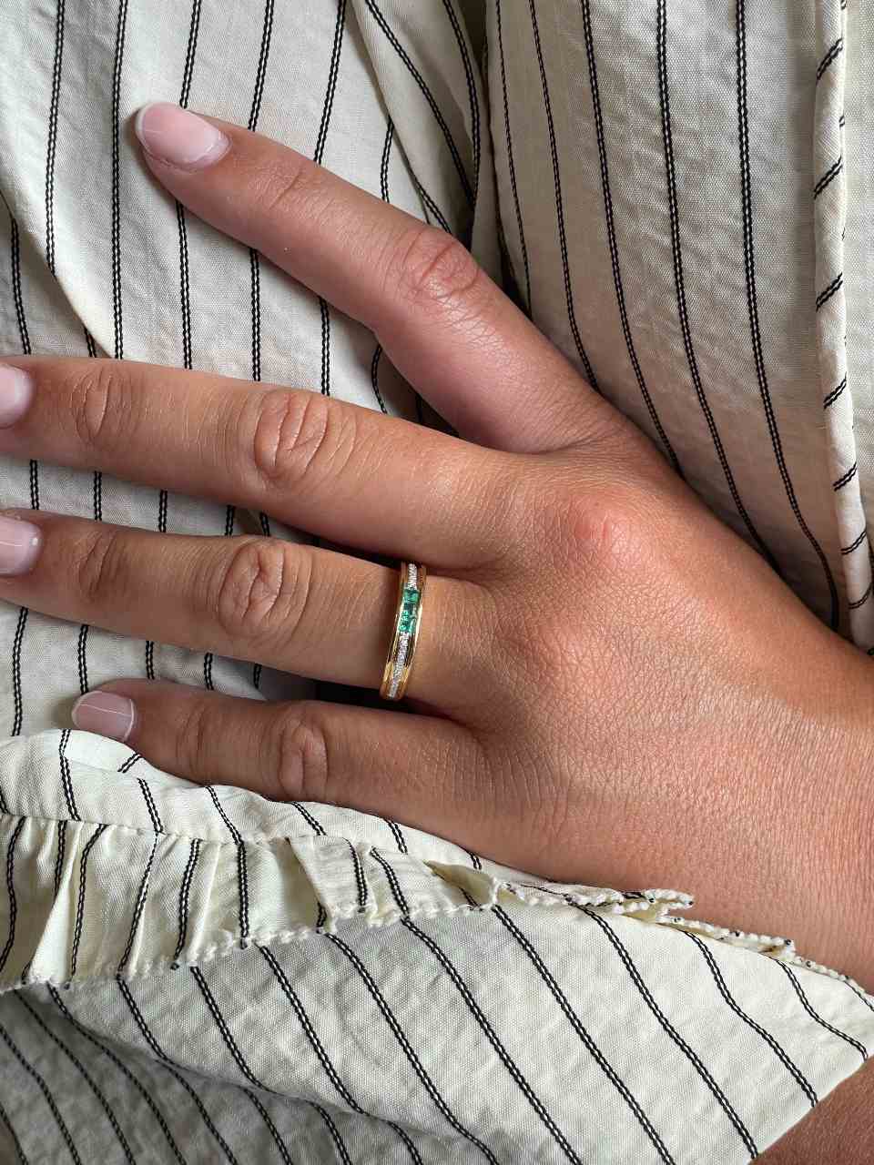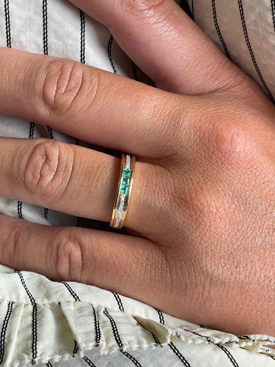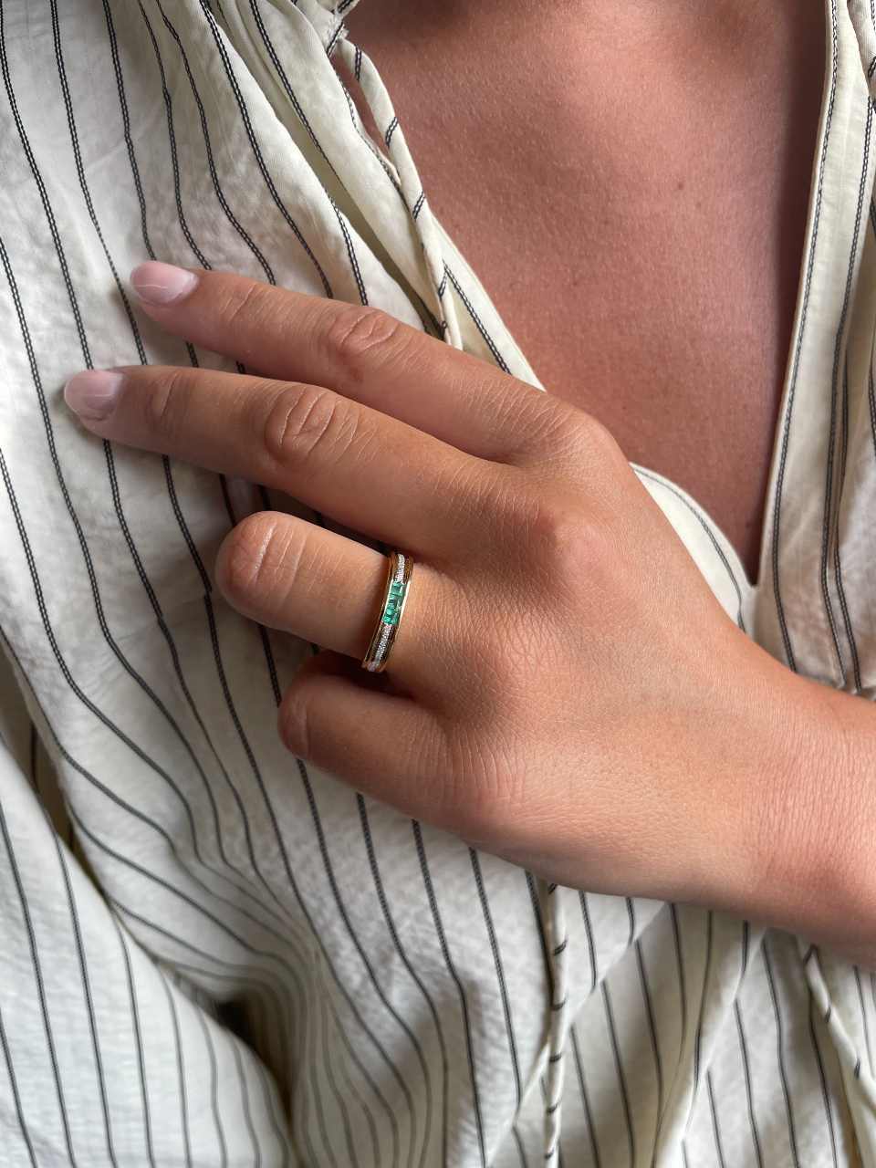 TISARA wedding band with diamonds in 14k yellow gold and rubies/emeralds