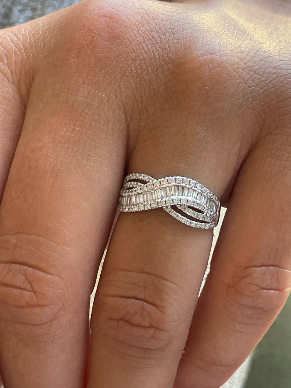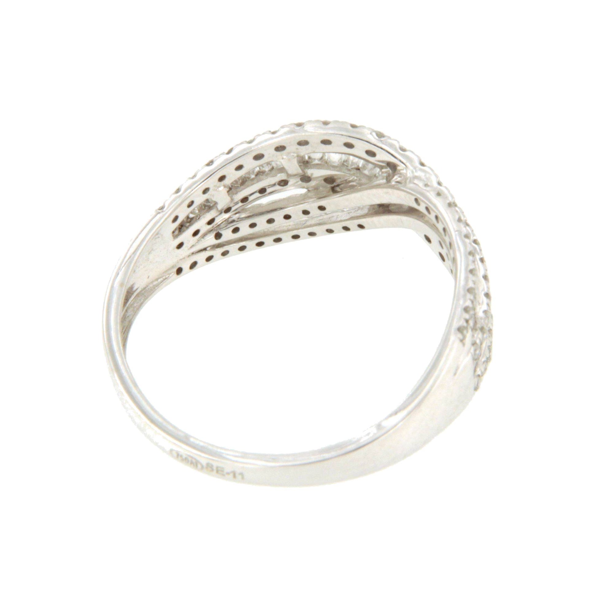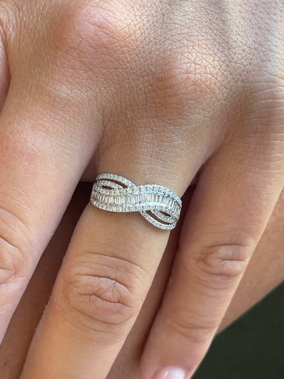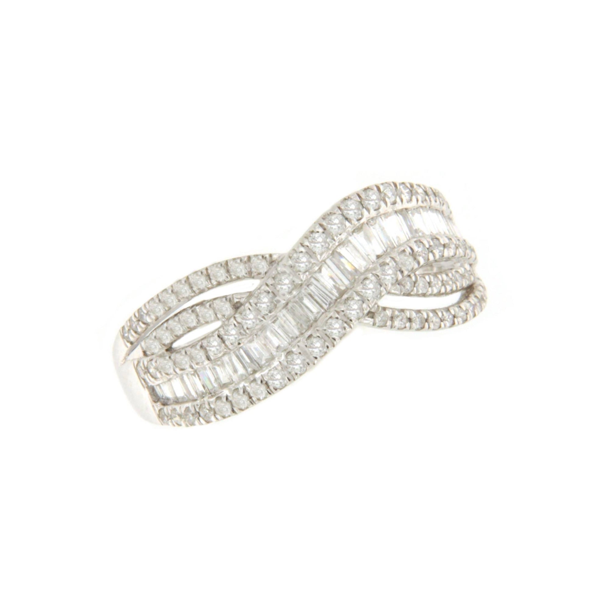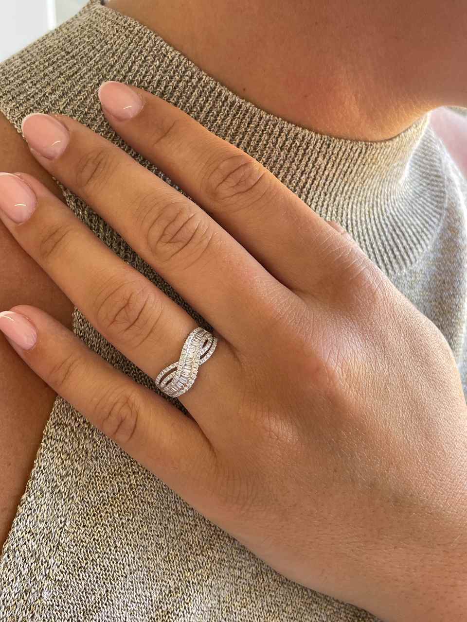 UCHUVA ring with baguette and diamond bands in 18k white gold