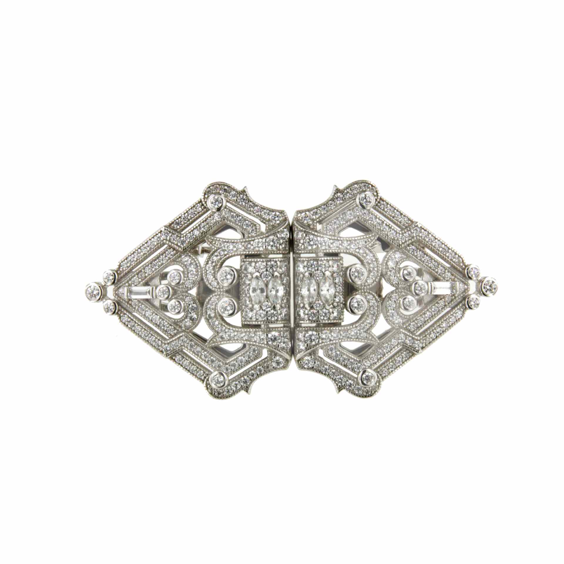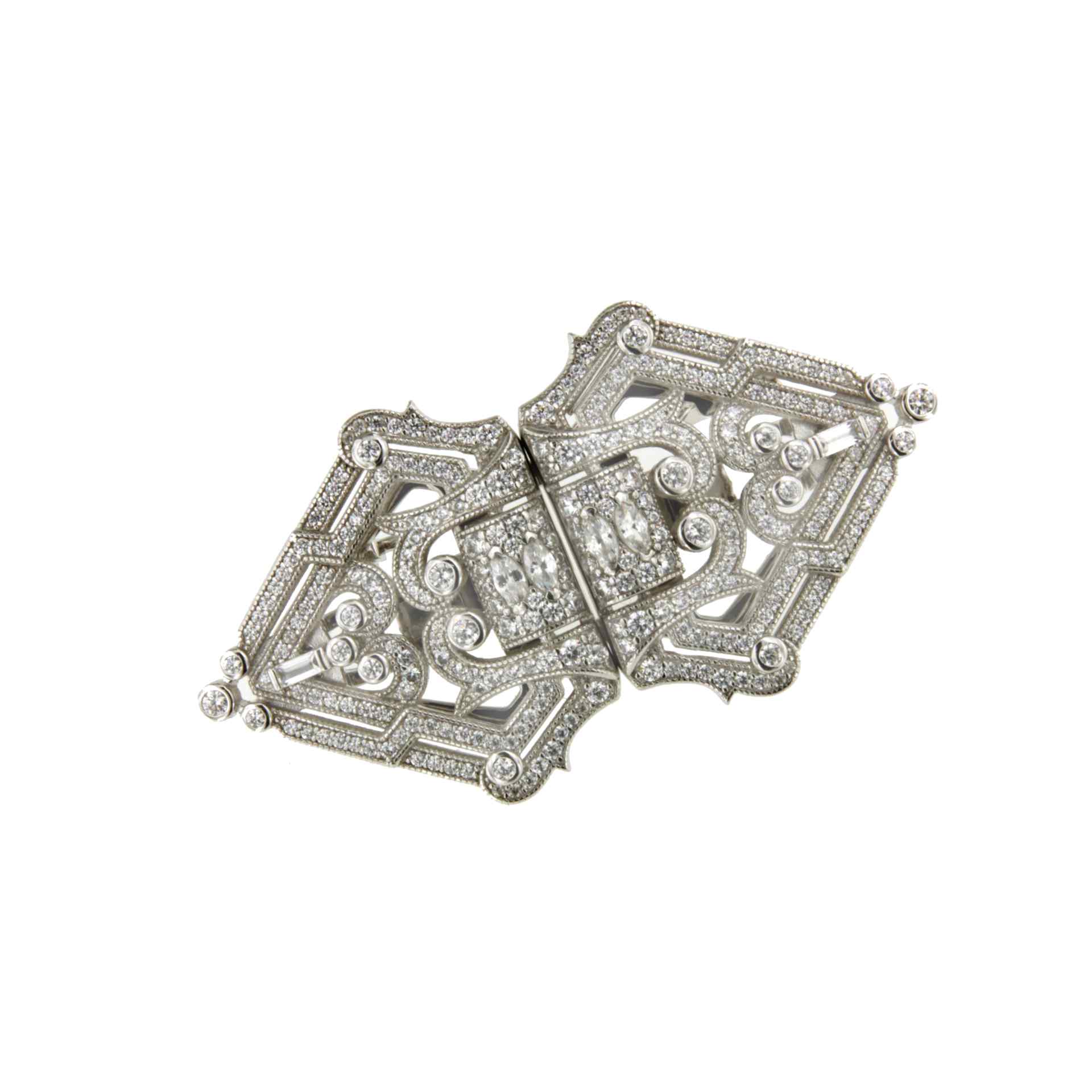 SAPO is an original 925 sterling silver brooch with cubic zirconia that can be disassembled into studless earrings to be put on using only the pressure of the omega.