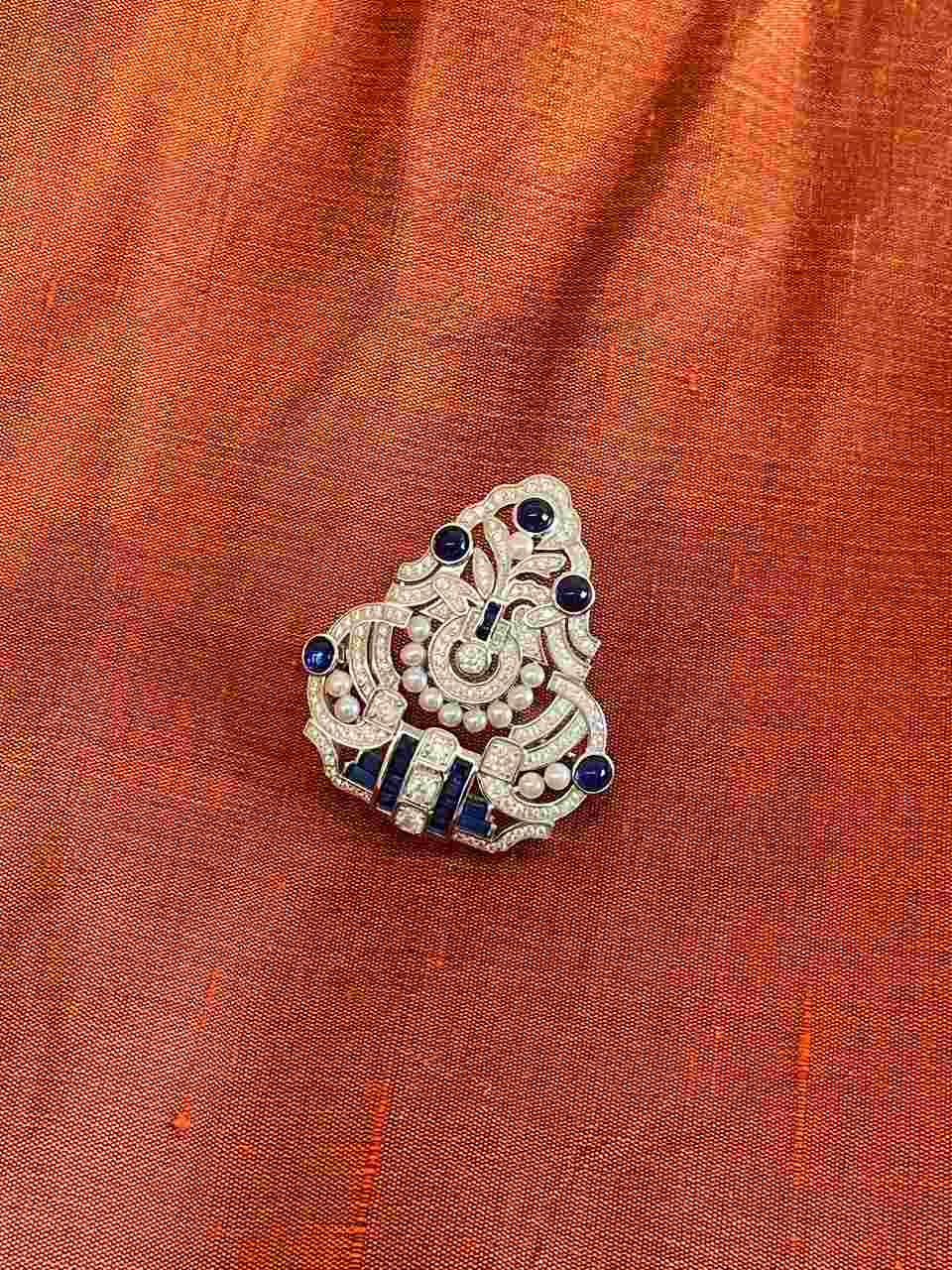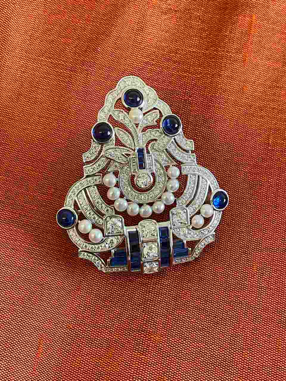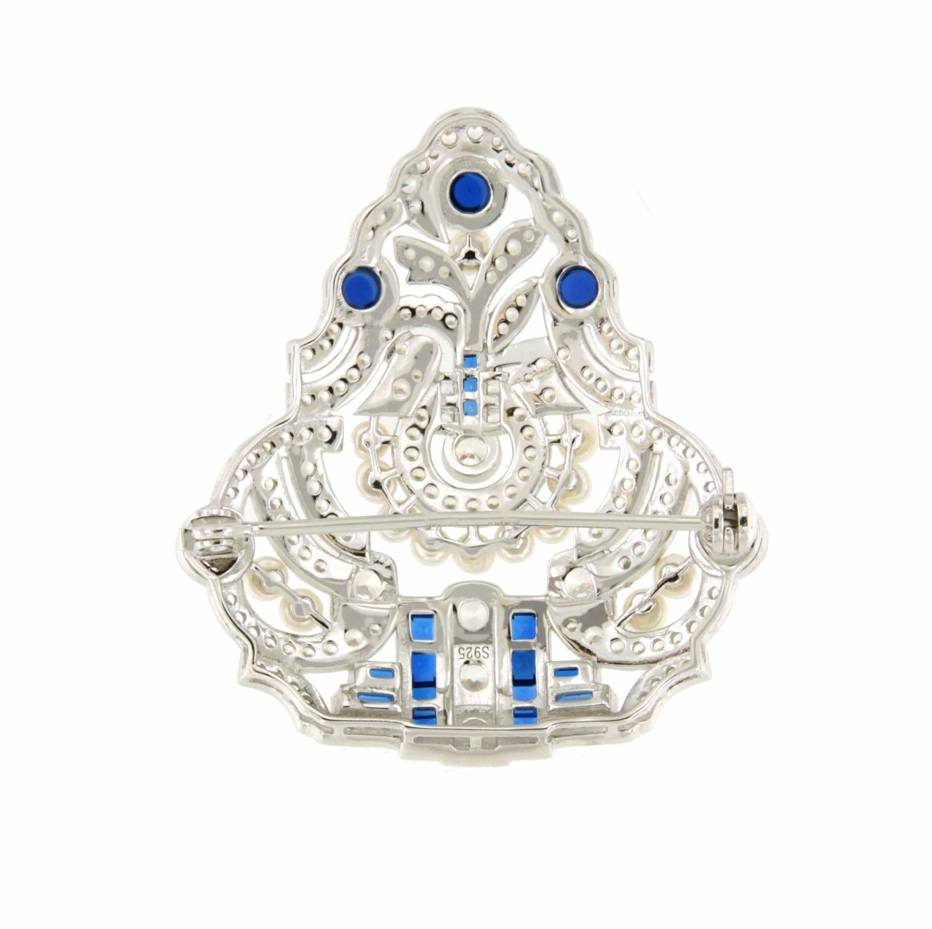 Wonderful GREECE brooch in 925 sterling silver with blue cubic zirconia and pearls