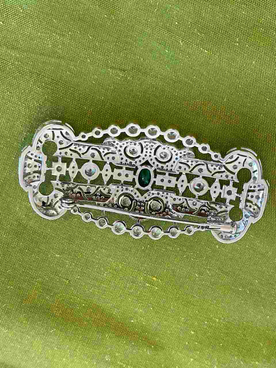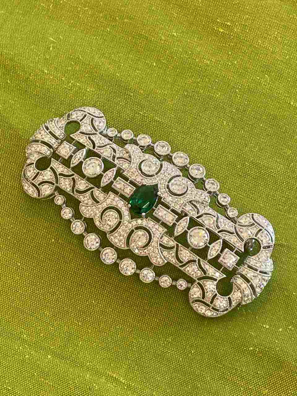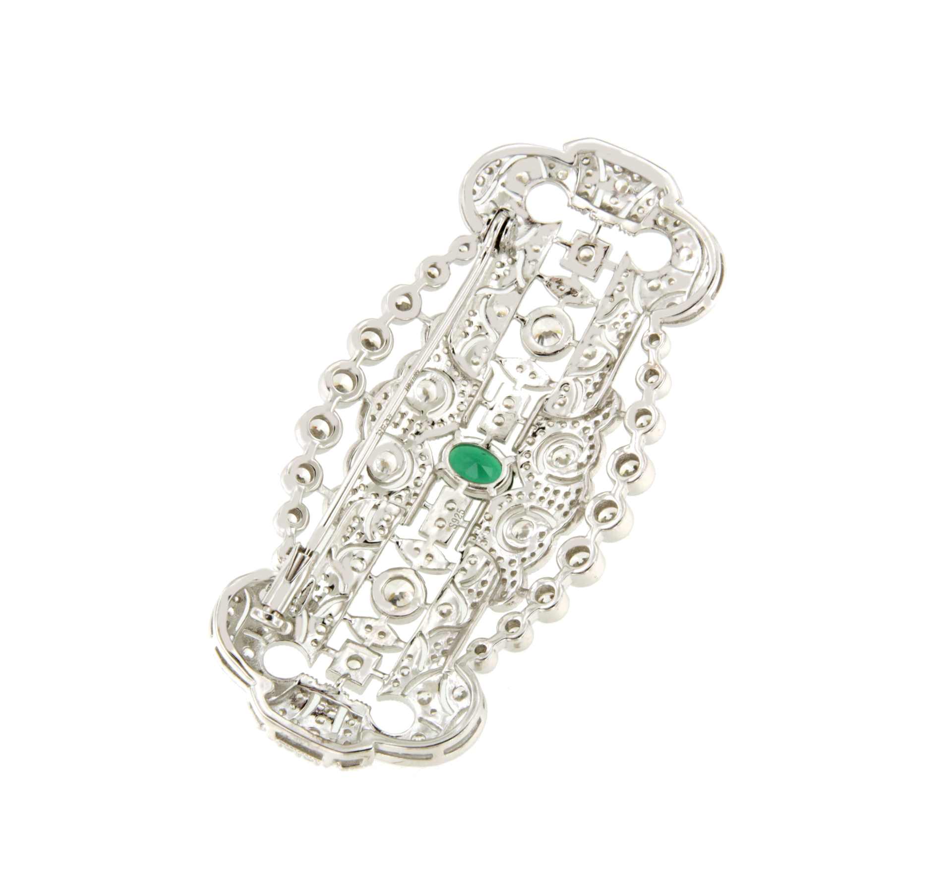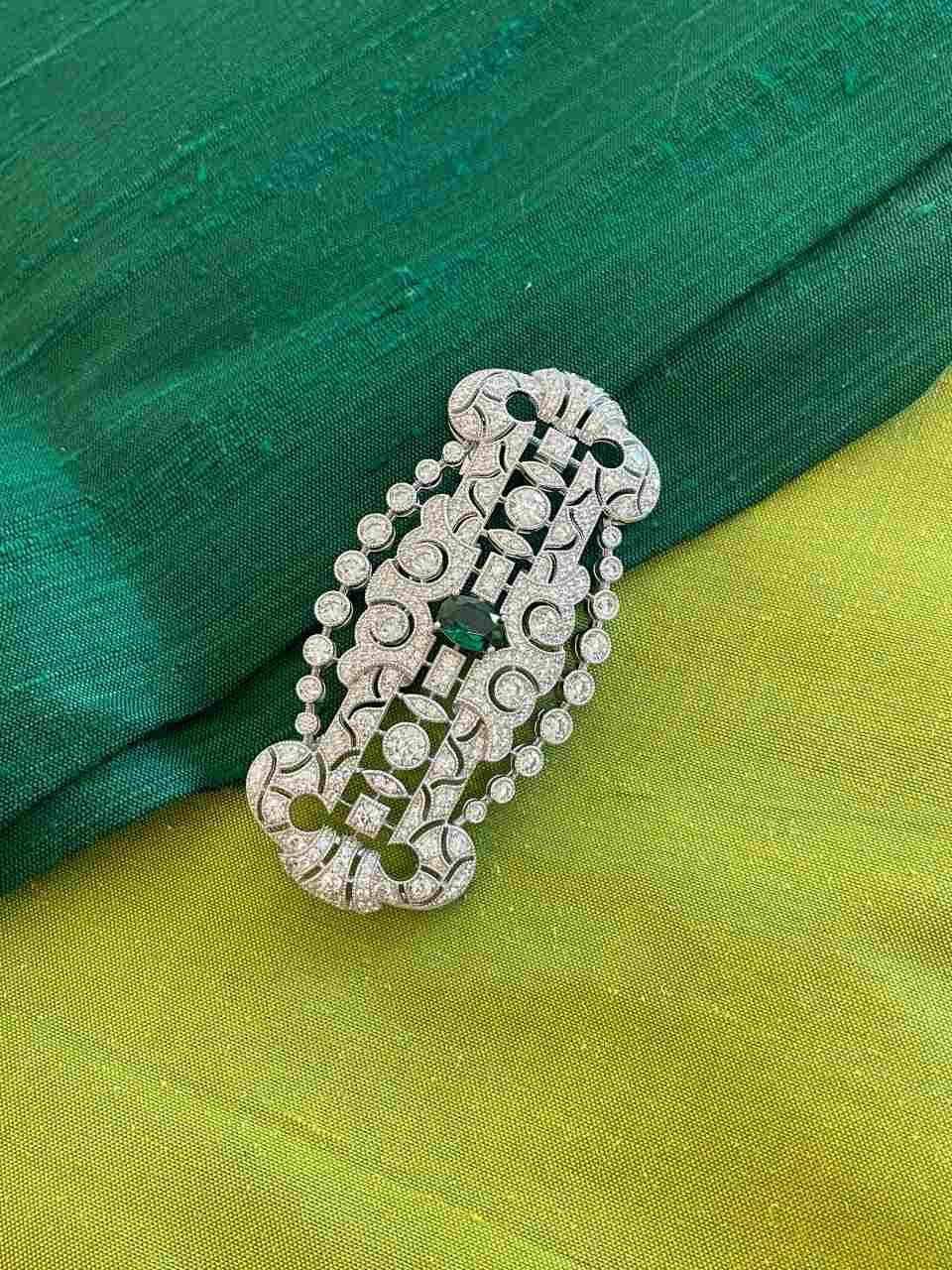 Wonderful LISBON art deco brooch in 925 sterling silver with emerald cubic zirconia