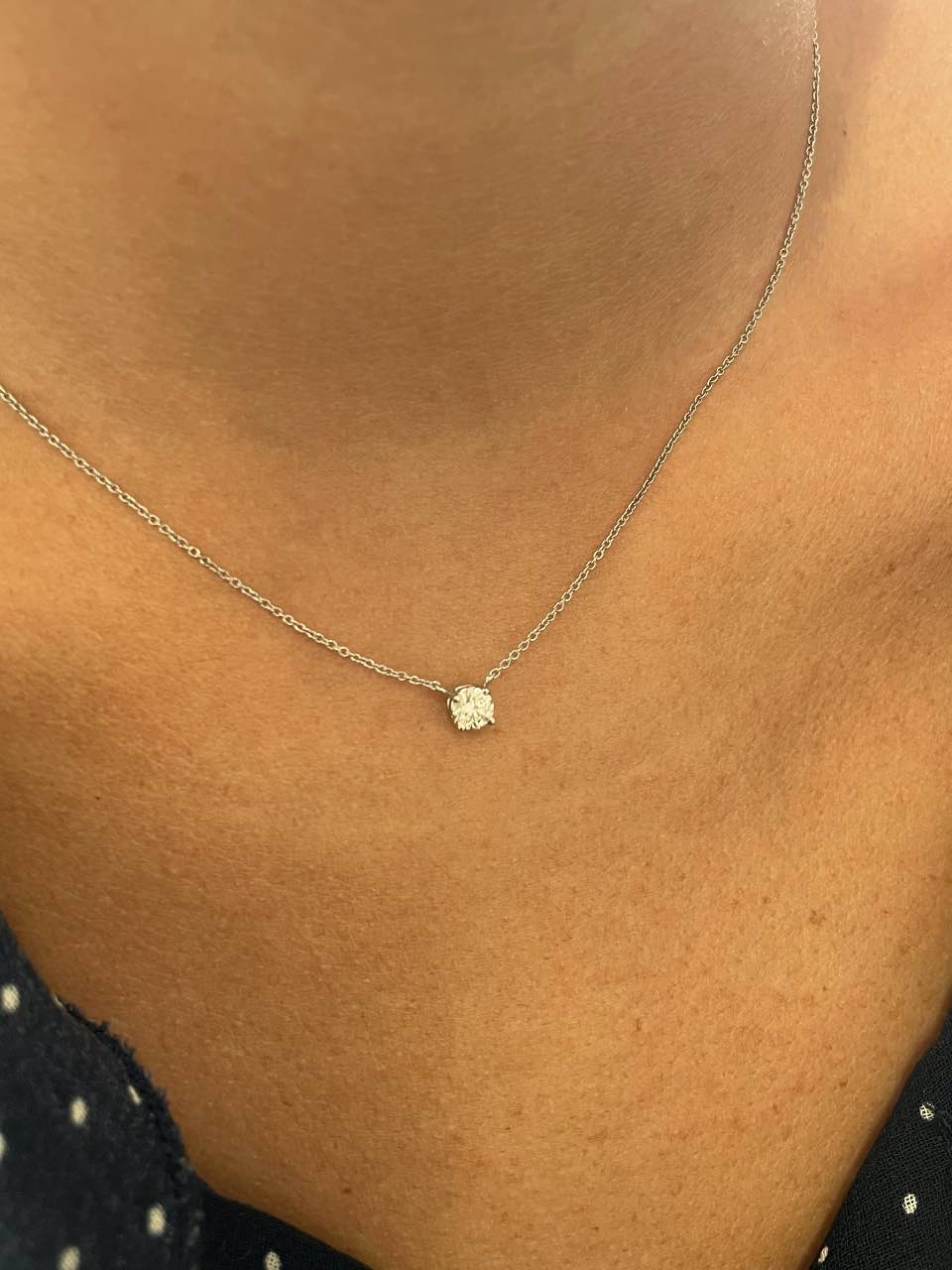 Small chain made of 18-karat gold , with a total weight of 1.90, 1.97 and 2.19 grams (0.30, 0.40 and 0.50 carats), composed of a 4-claw mount in the center with a brilliant-cut diamond of a weight of 0.30, 0.40 and 0.50 carats .