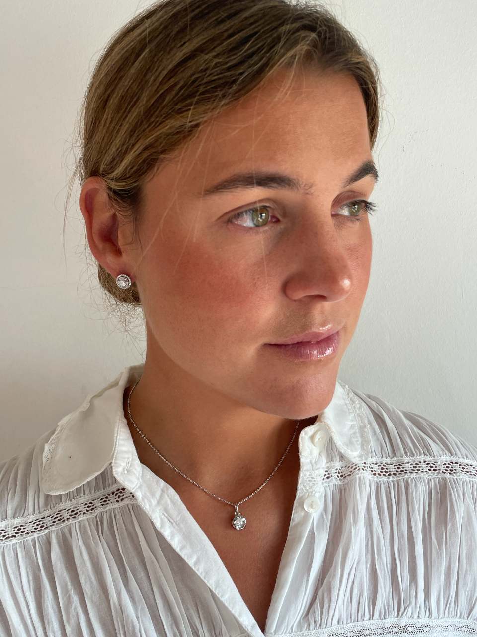 ALGUER is a pendant , made of 18k white gold , the This pendant features a brilliant-cut diamond set in an illusion base with a bail, and is available in two sizes. Chain not included in the price.