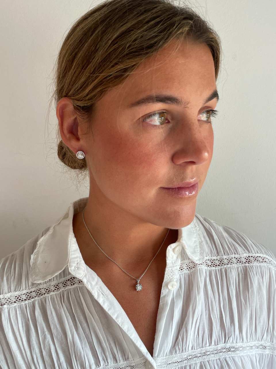 BATH is a pendant , made of 18k white gold , the The pendant features a brilliant-cut diamond, set in an illusion base with a bail. Chain not included in the price.