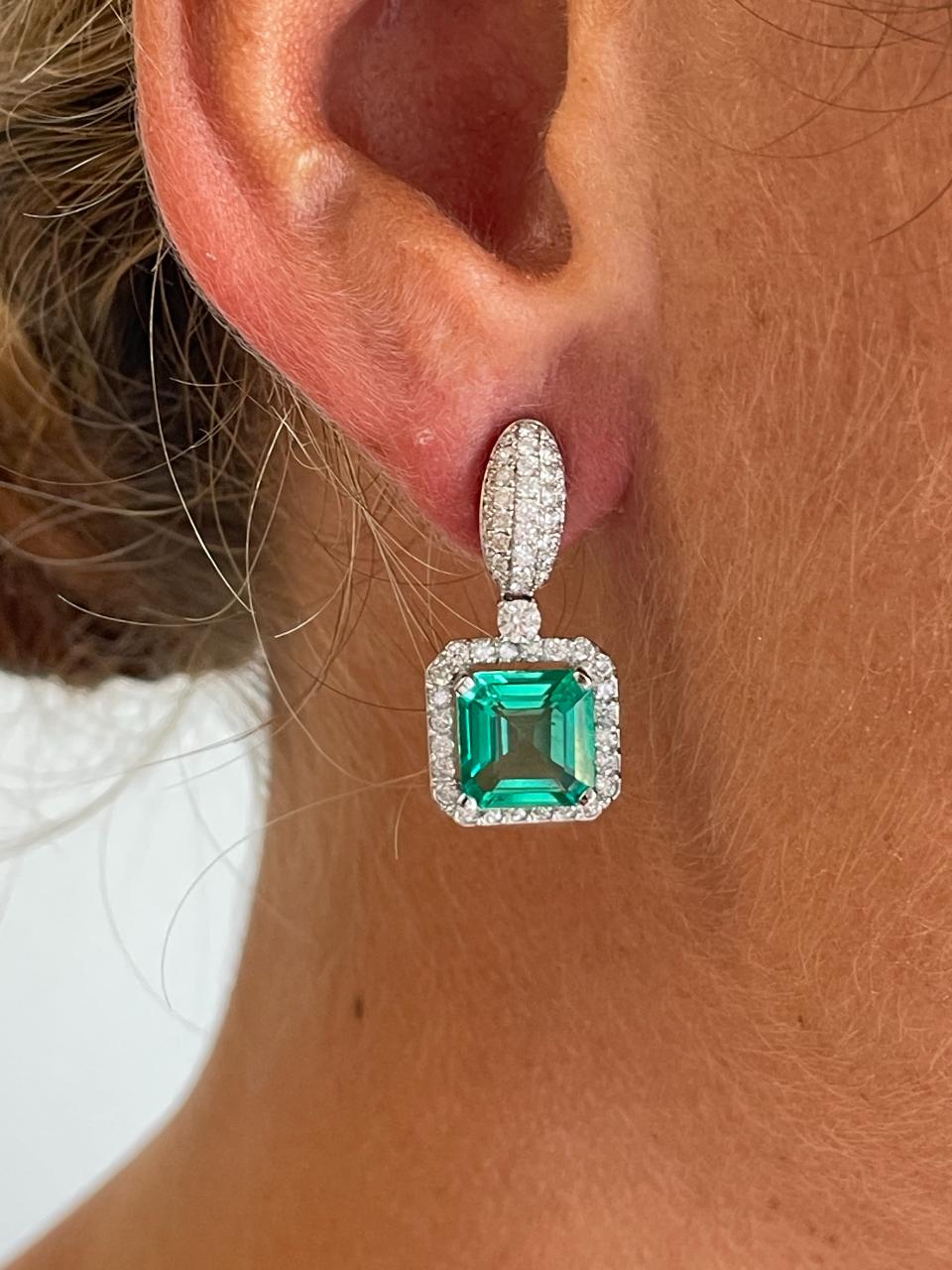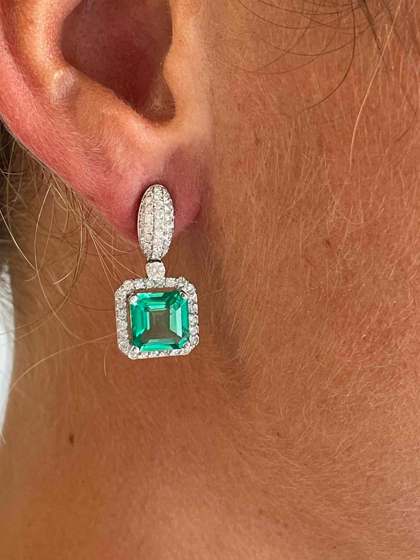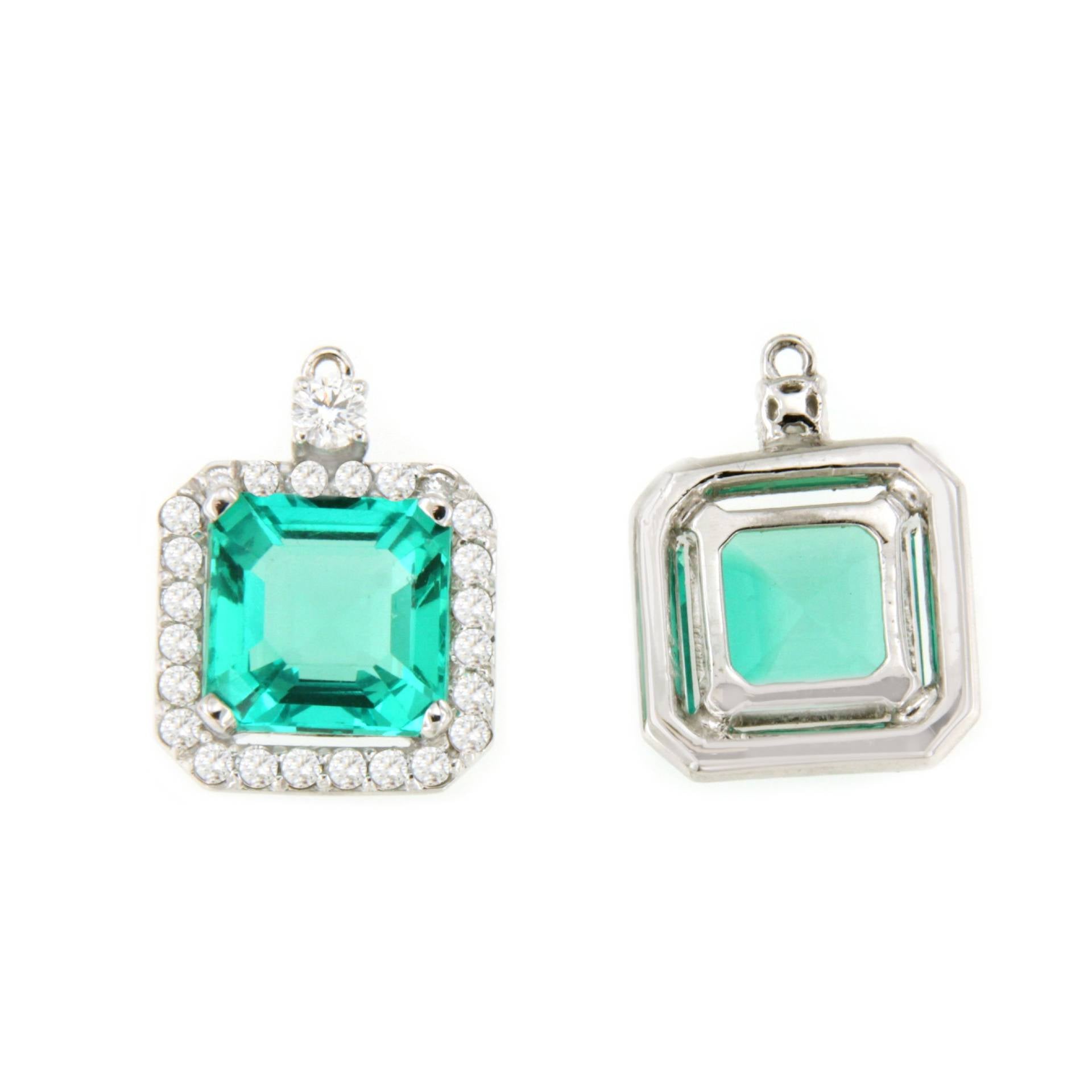The KIOTO pendant is an exceptional piece to complement our detachable earrings. Crafted in 18-karat white gold , it features stunning princess-cut emeralds surrounded by an elegant halo of brilliant-cut diamonds .