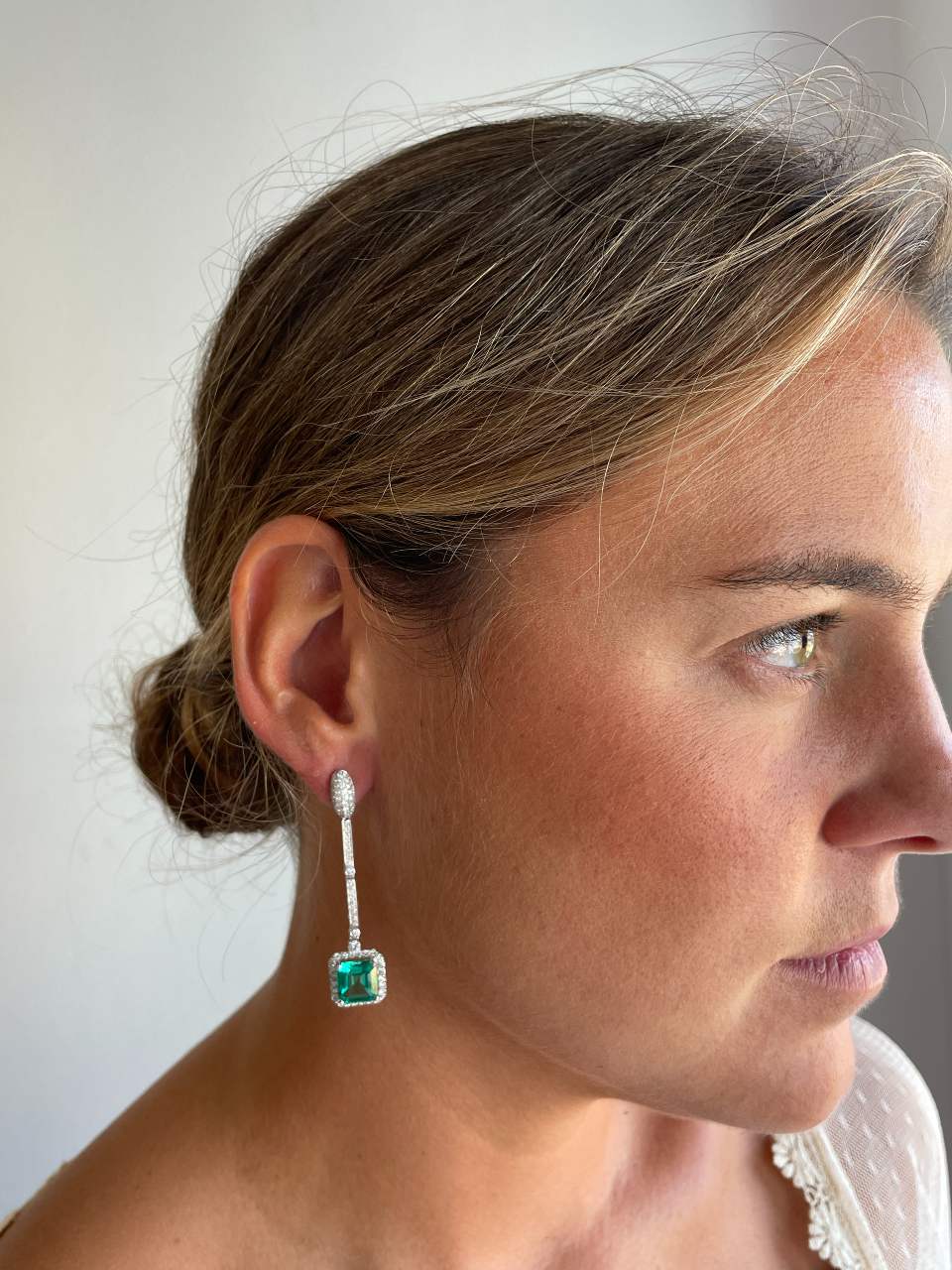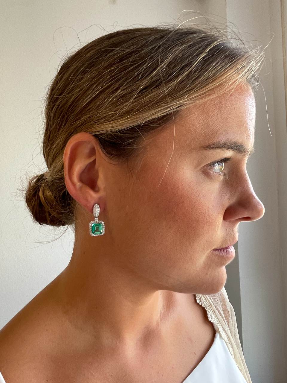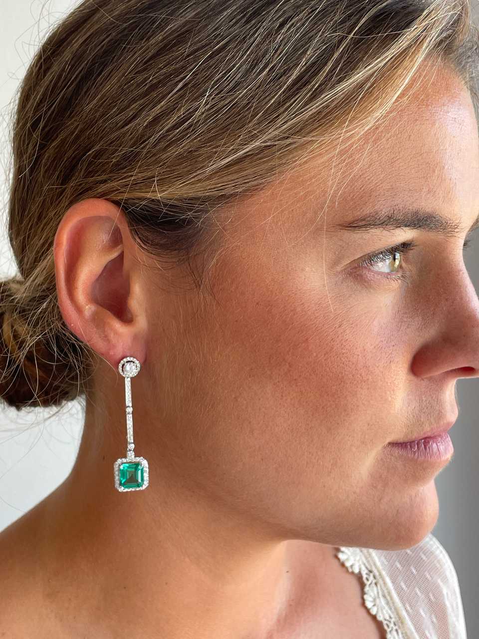 The KIOTO pendant is an exceptional piece to complement our detachable earrings. Crafted in 18-karat white gold , it features stunning princess-cut emeralds surrounded by an elegant halo of brilliant-cut diamonds .