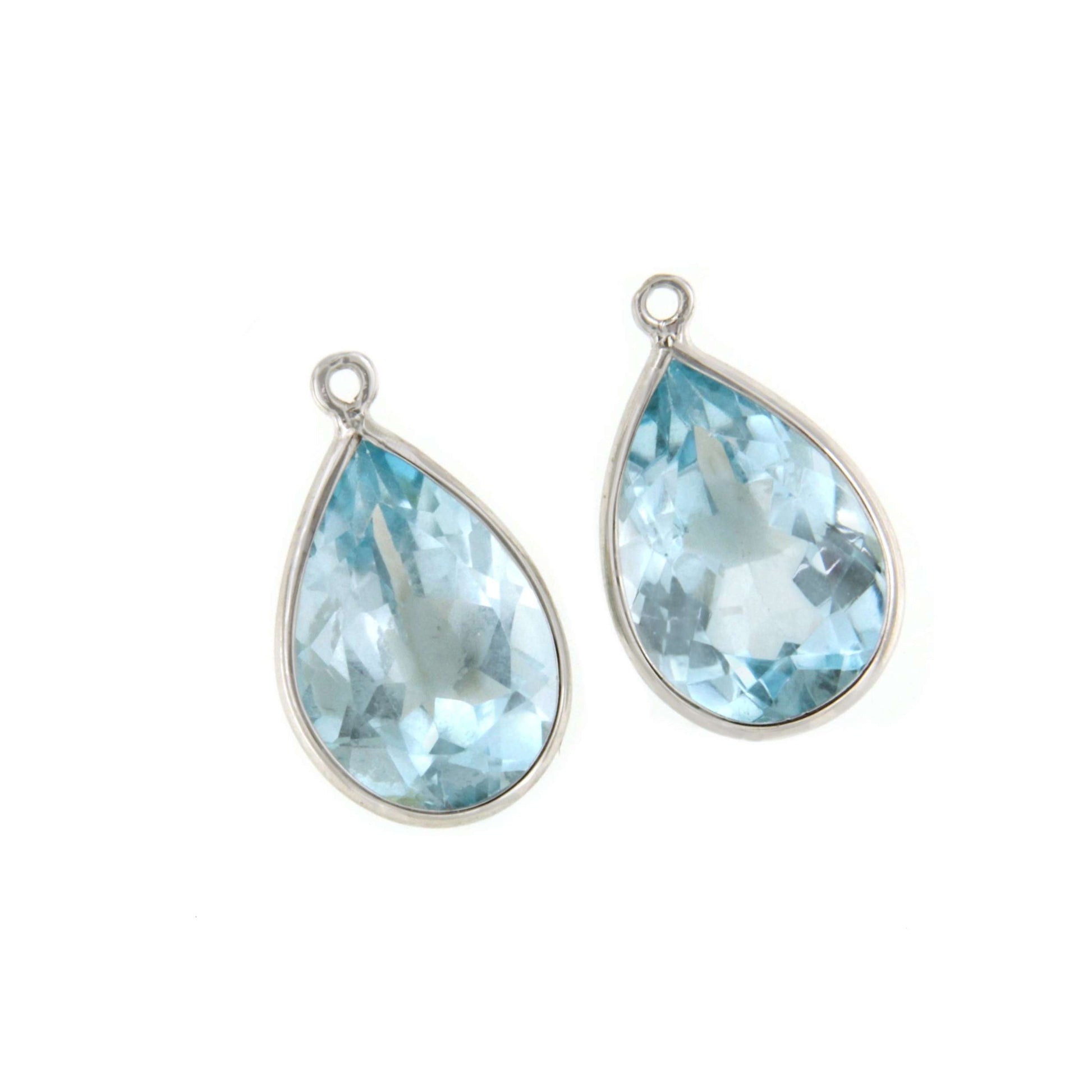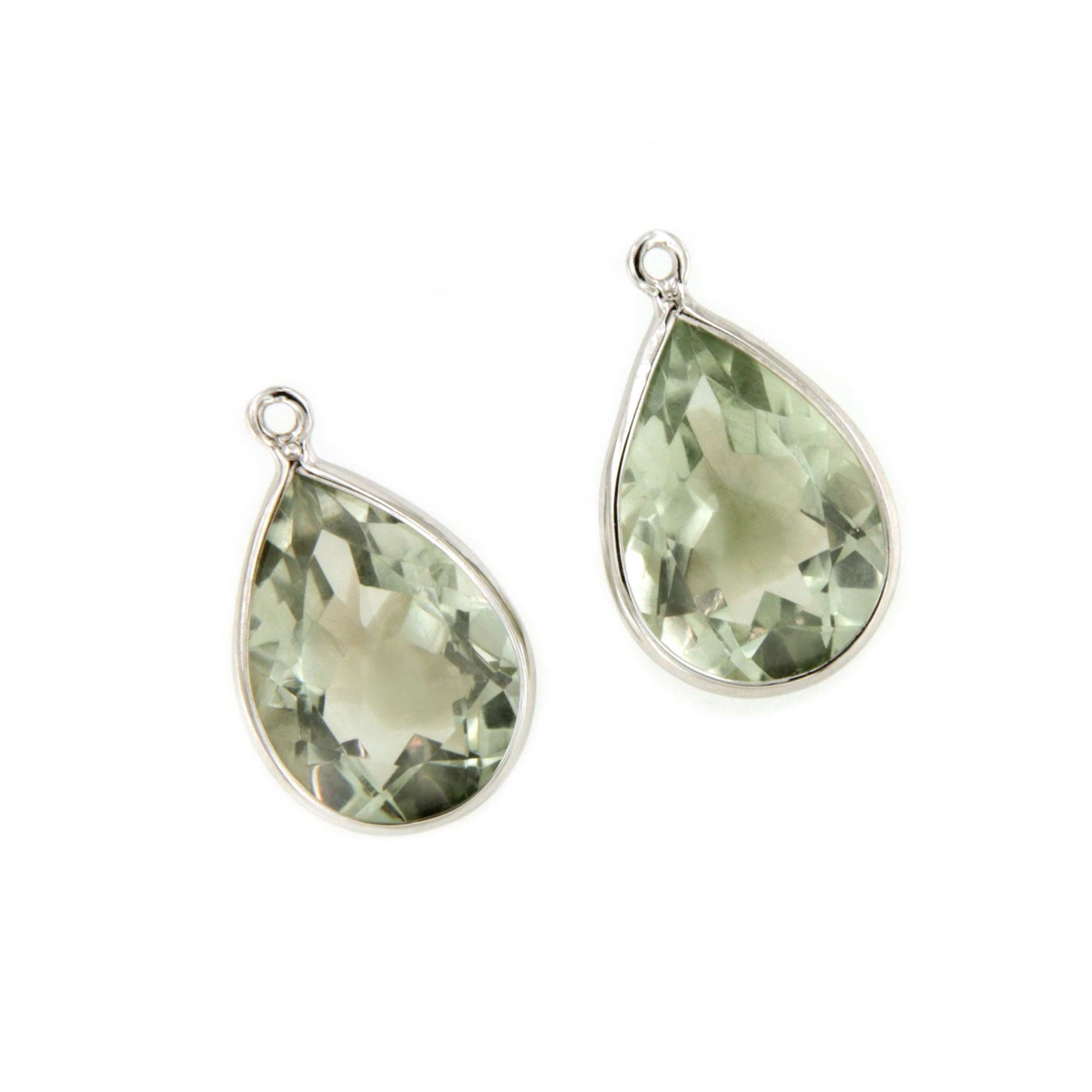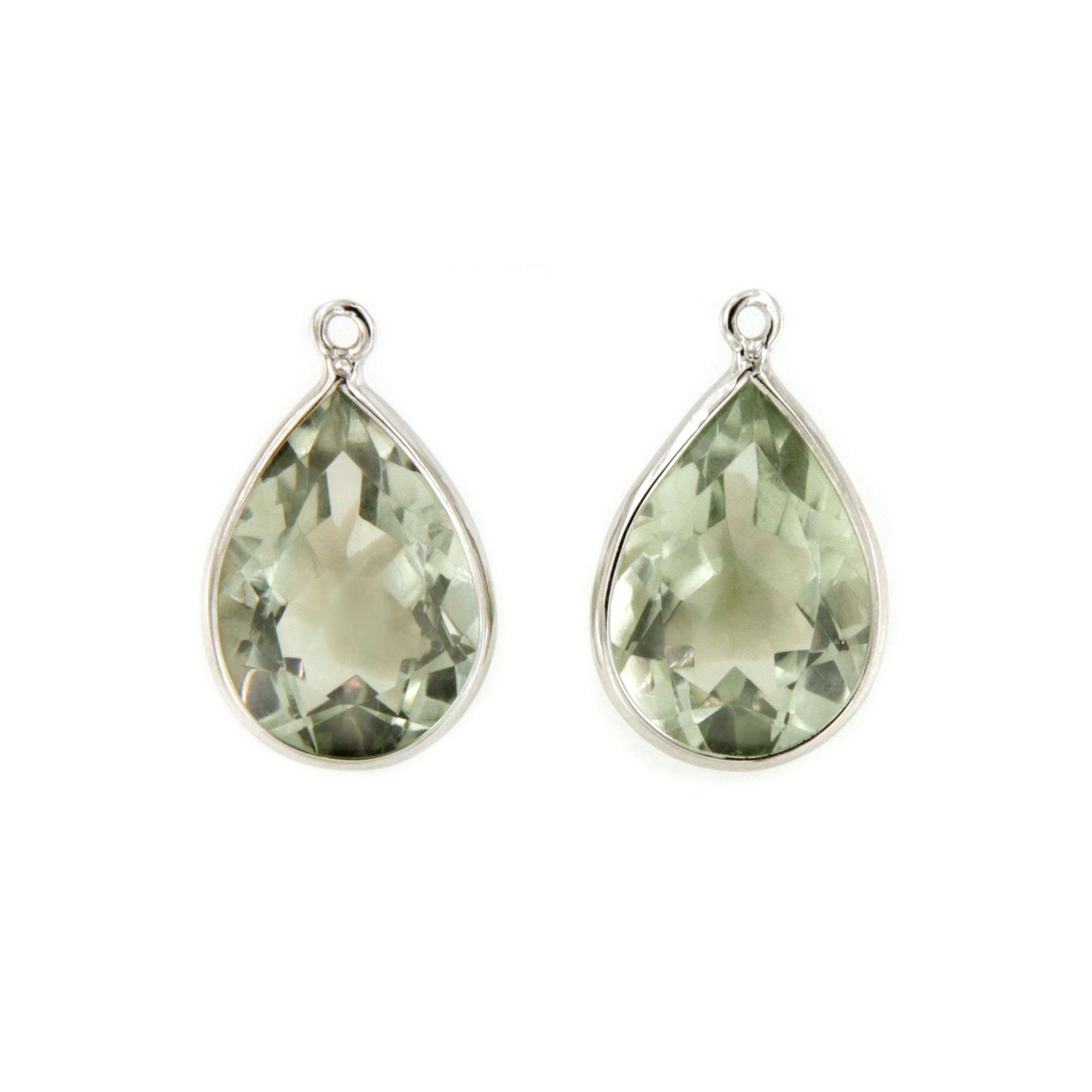 PAU , 18k white gold pendants for faceted detachable earrings, set with green amethyst or blue topaz around the perimeter. Pendant only.