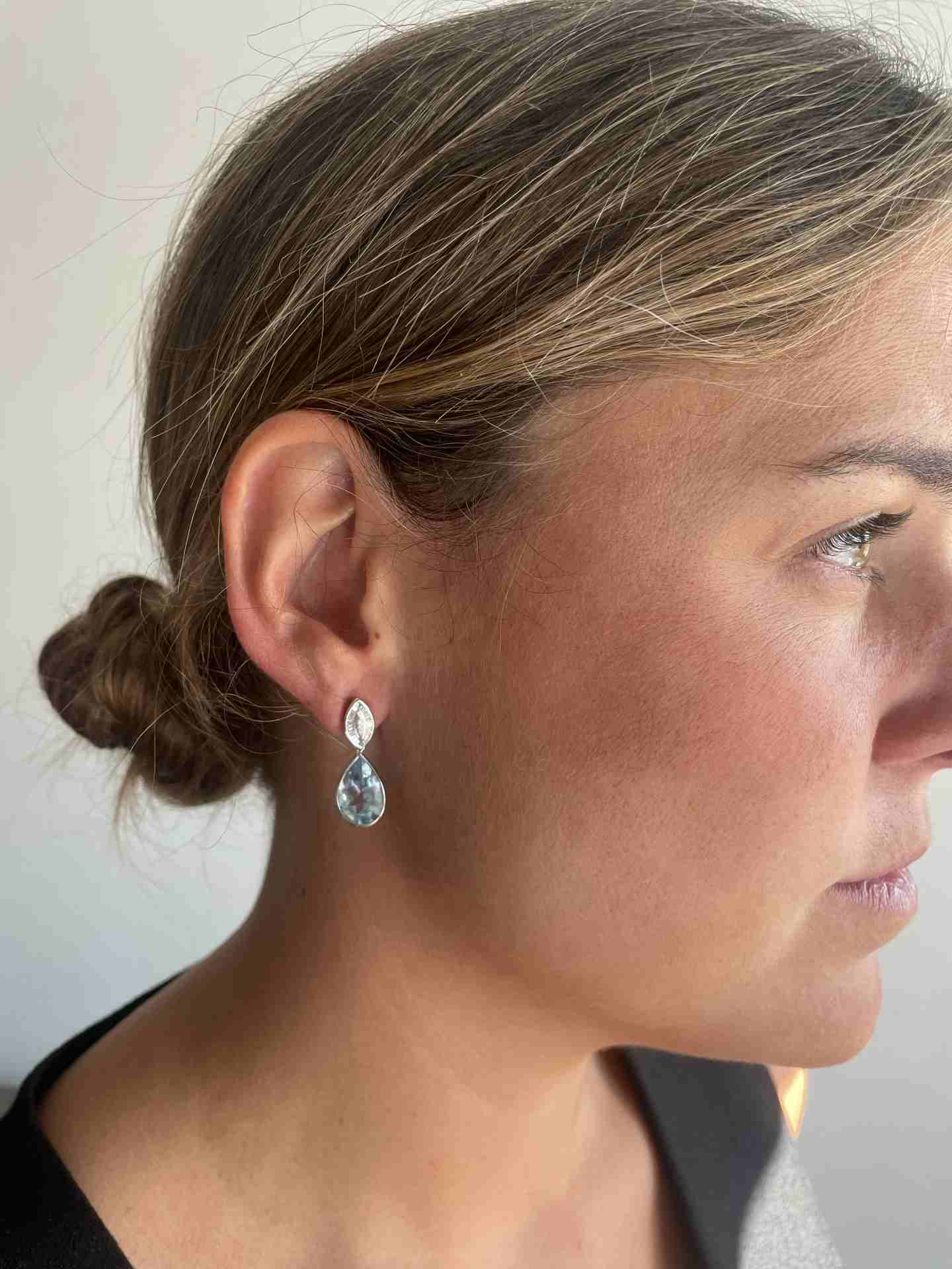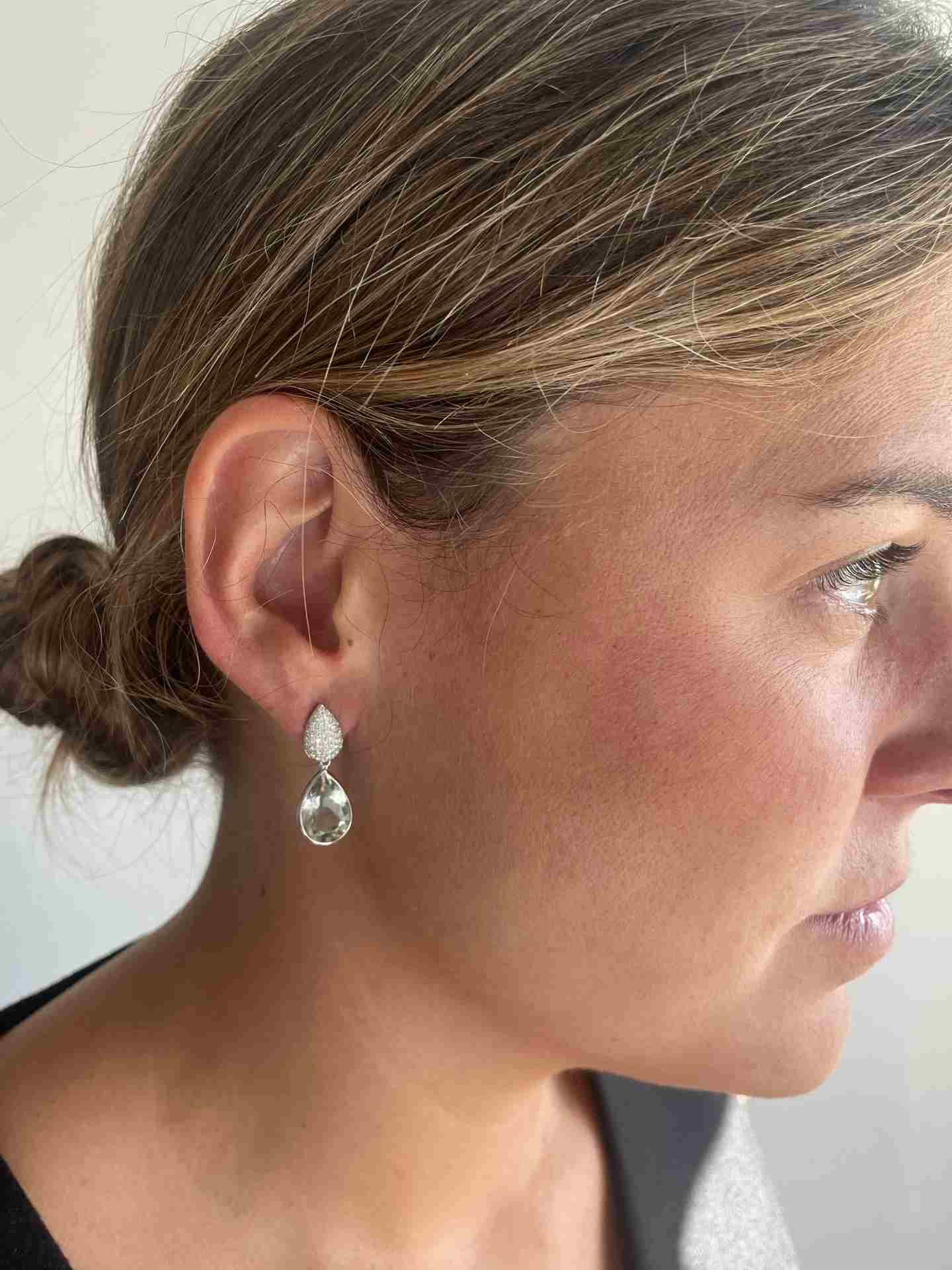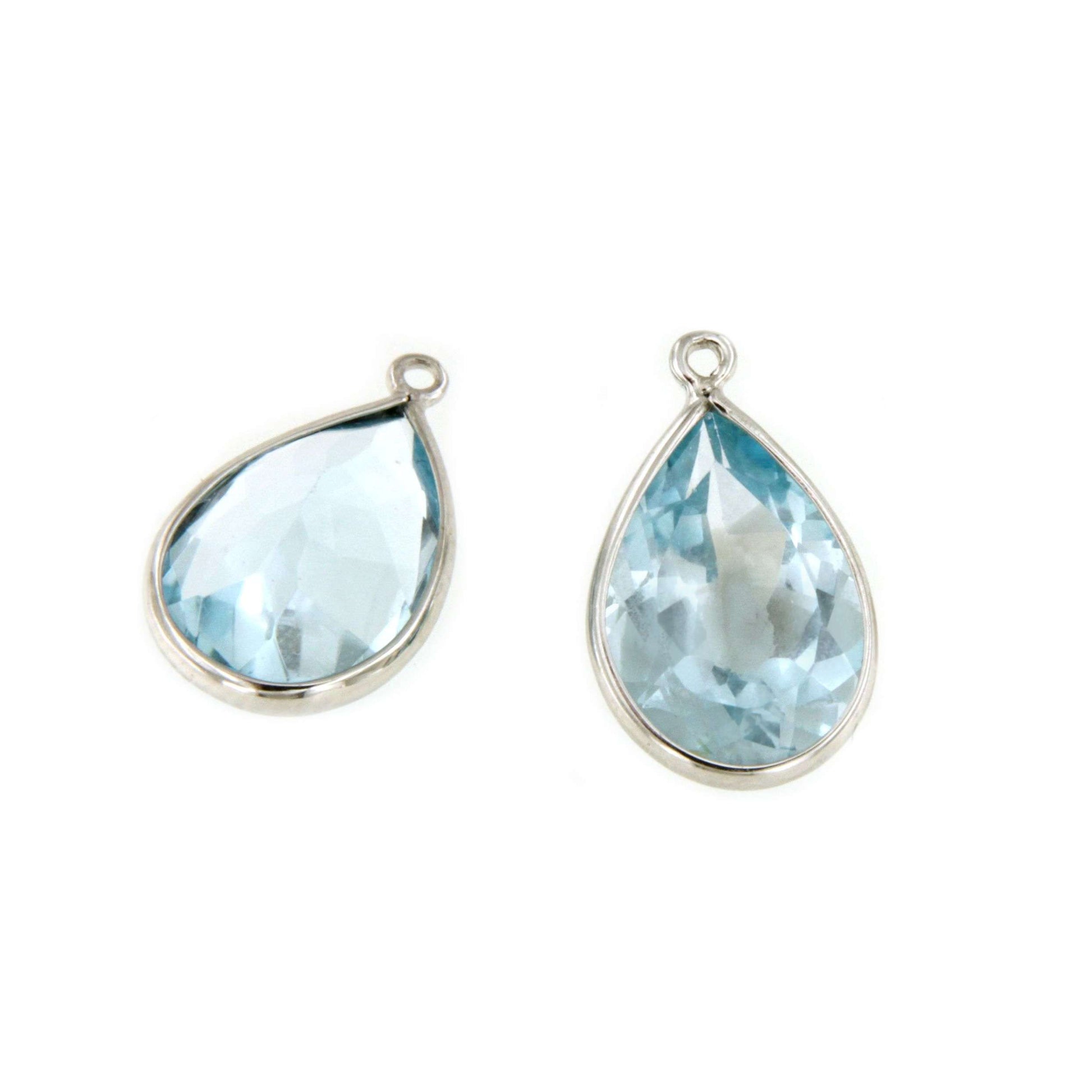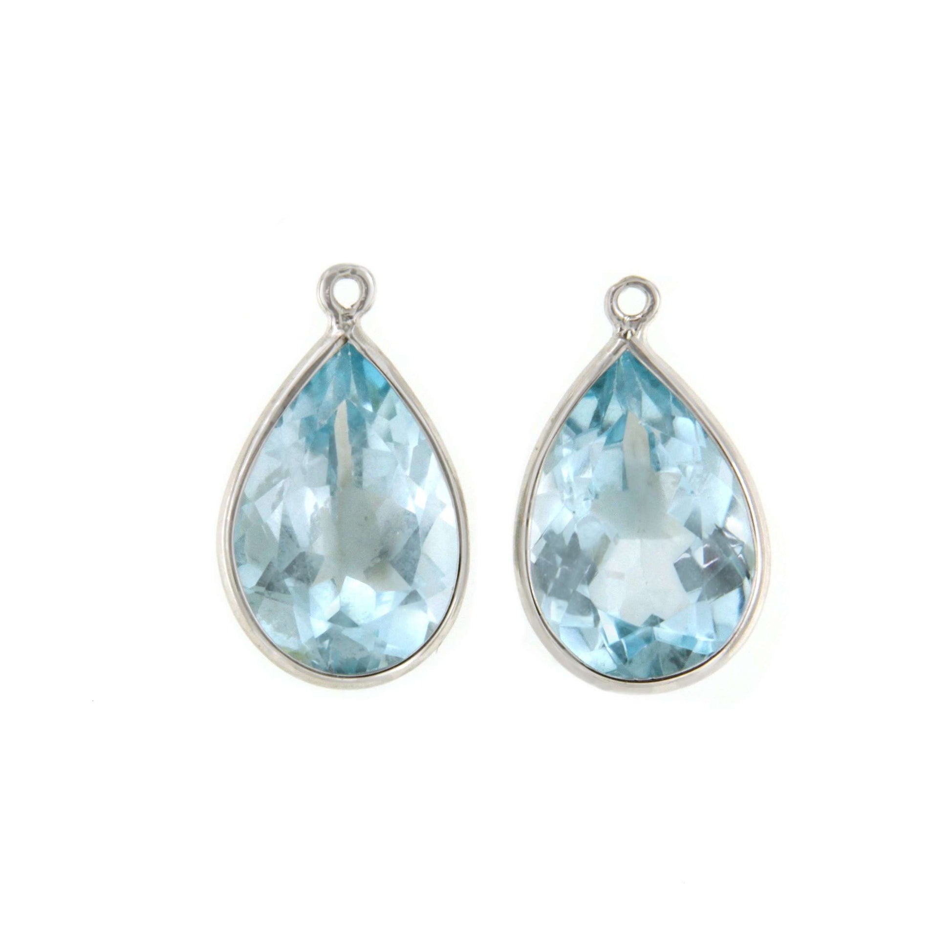 PAU , 18k white gold pendants for faceted detachable earrings, set with green amethyst or blue topaz around the perimeter. Pendant only.