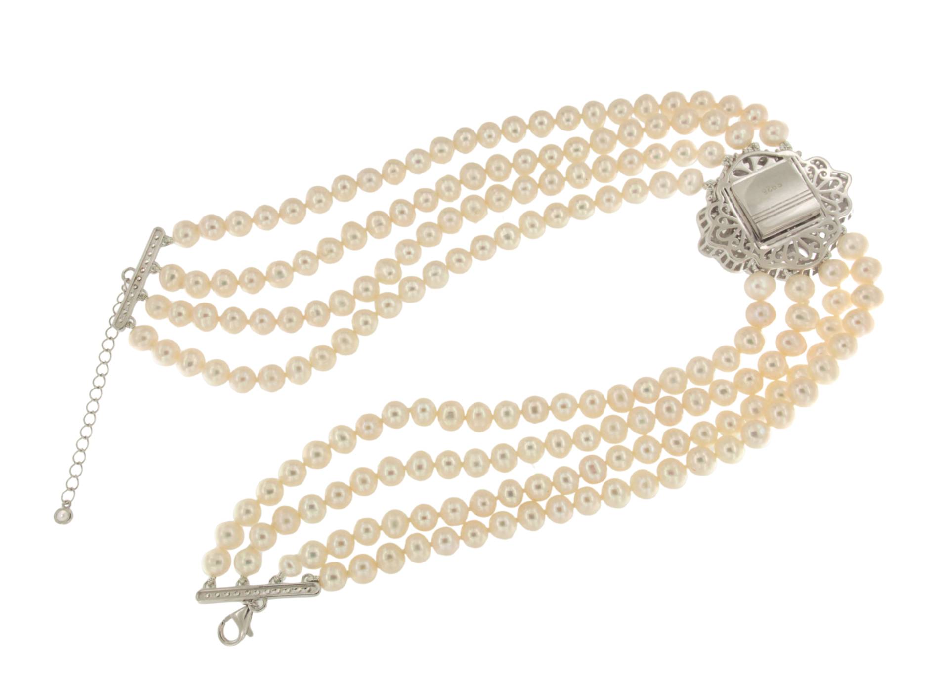 ADELAIDA choker made of Chinese pearls with a silver center and cubic zirconia