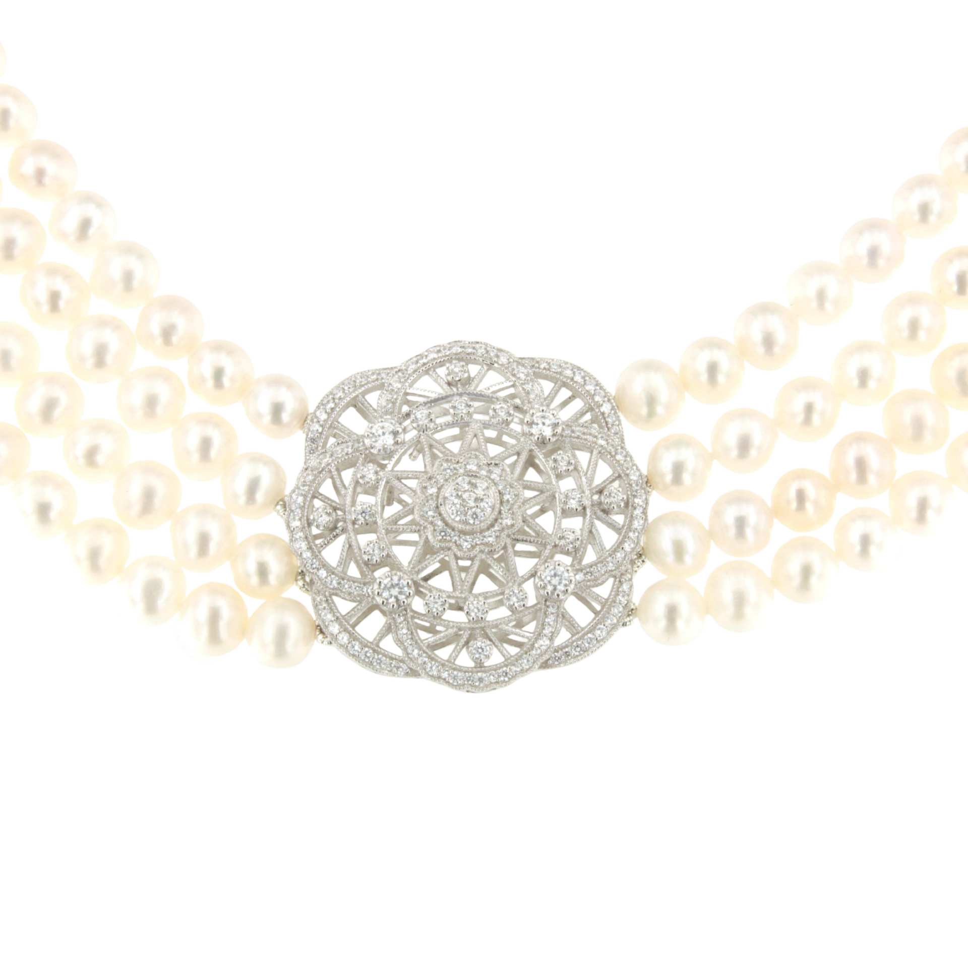 CLAUDIA choker made of Chinese pearls with a silver center and cubic zirconia