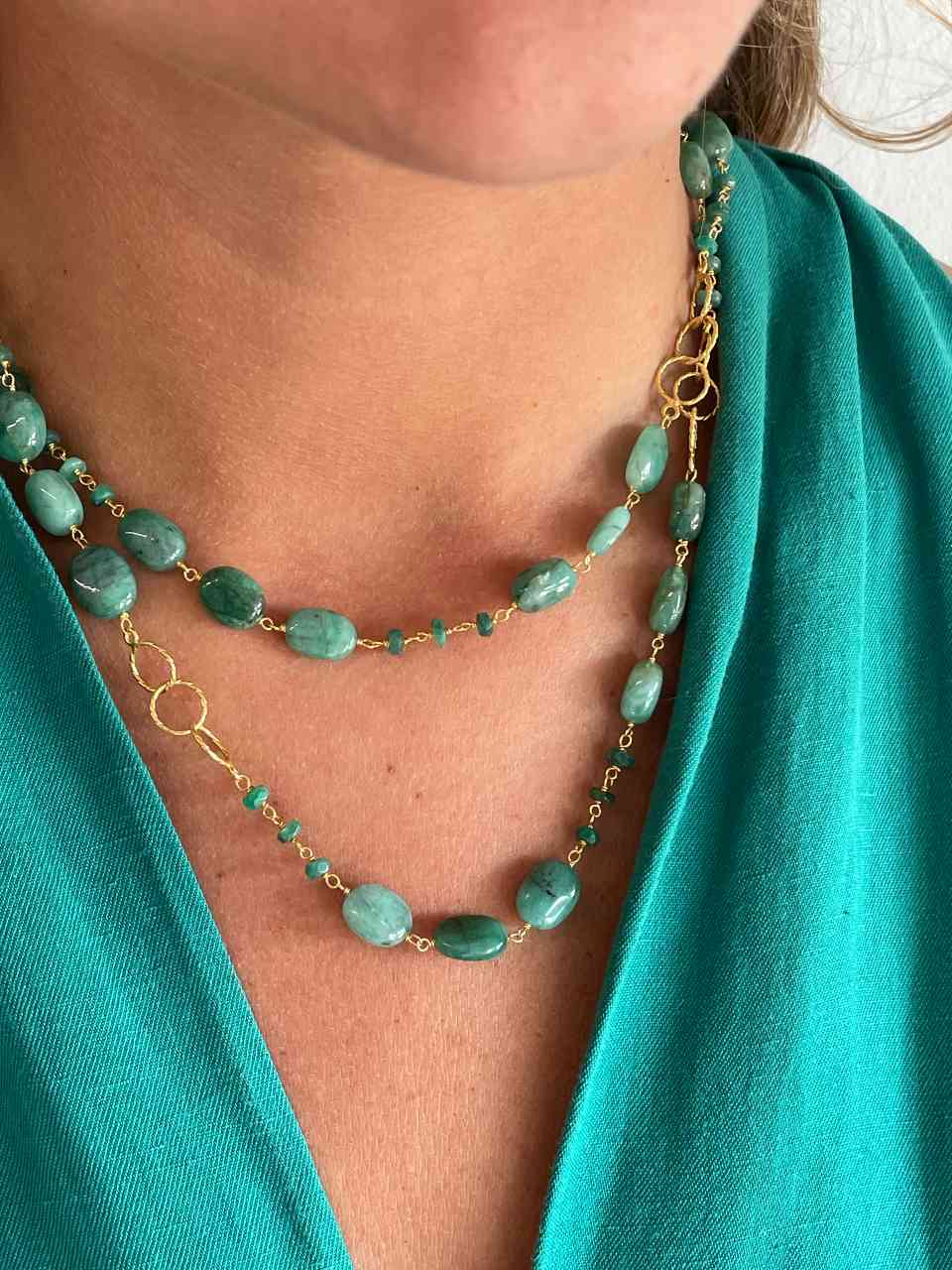 MELON necklace in sterling silver with 18k gold plating and emeralds