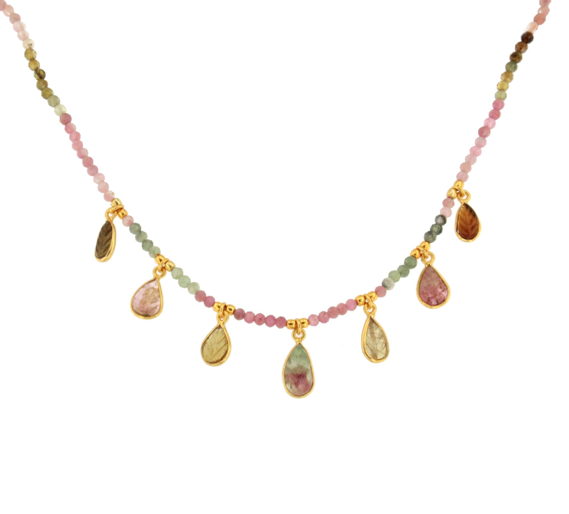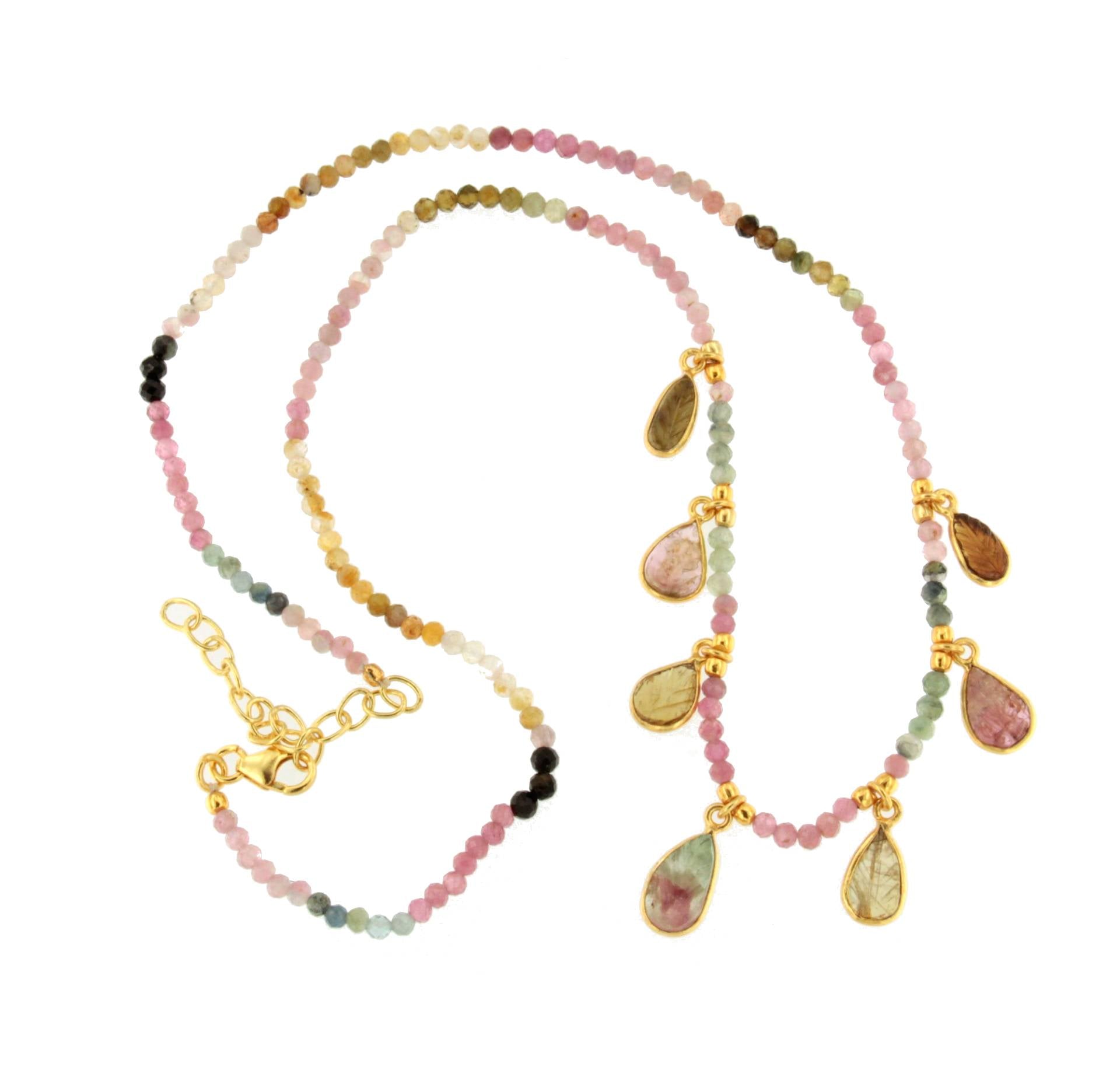 MORA necklace in sterling silver with 18k gold plating and precious stones