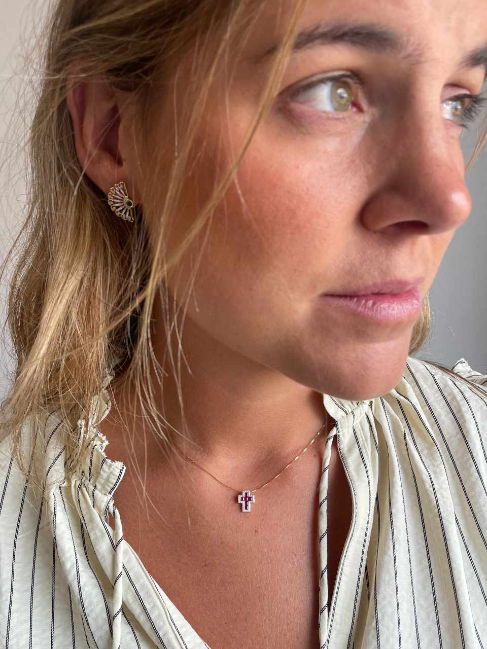 AUREZA cross in 14k gold with diamonds and sapphire/ruby
