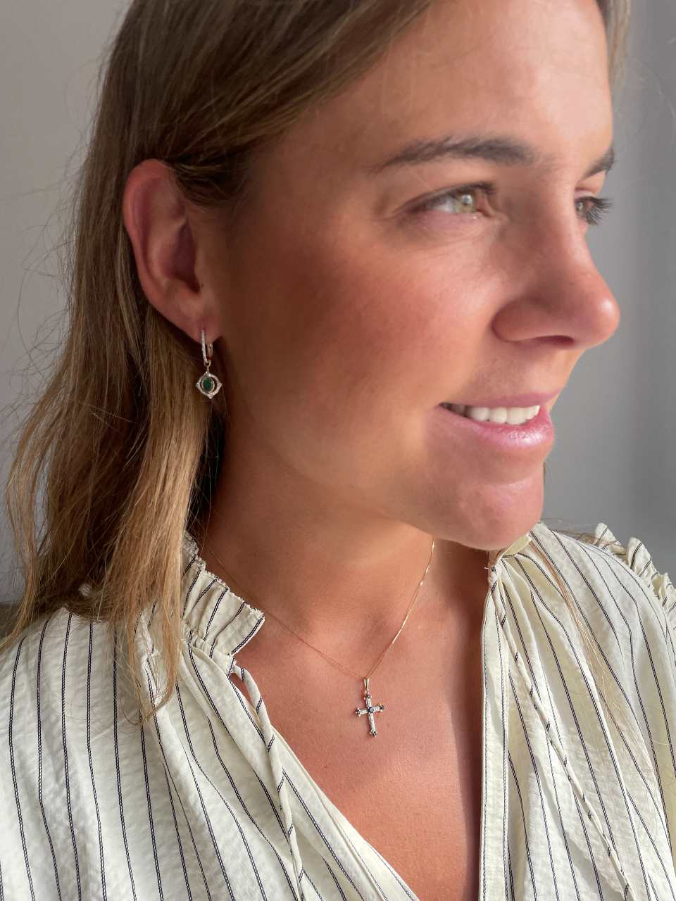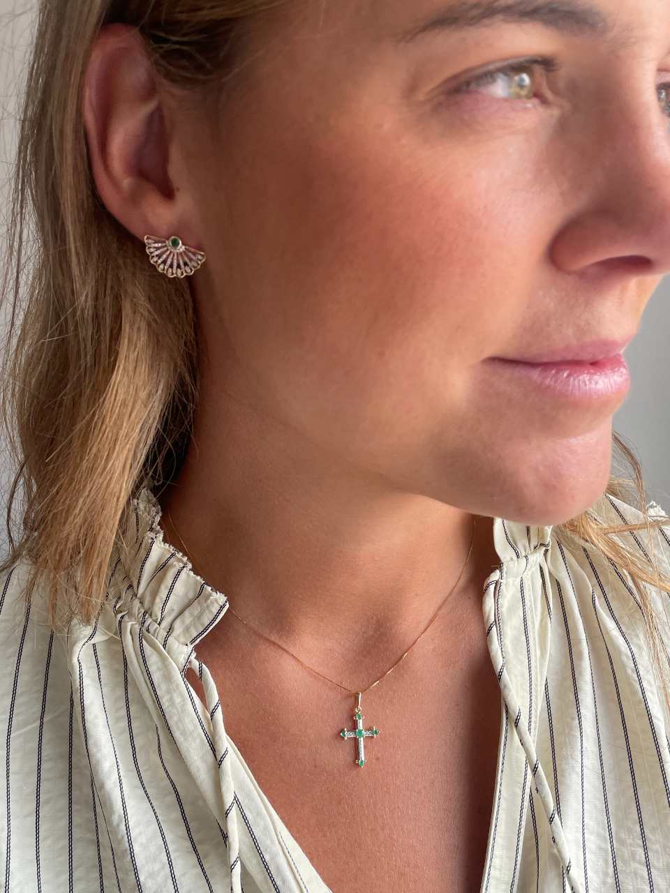 Available with sapphires or emeralds. Ideal as a gift for a First Communion or christening. A perfect everyday piece that everyone will ask you about.