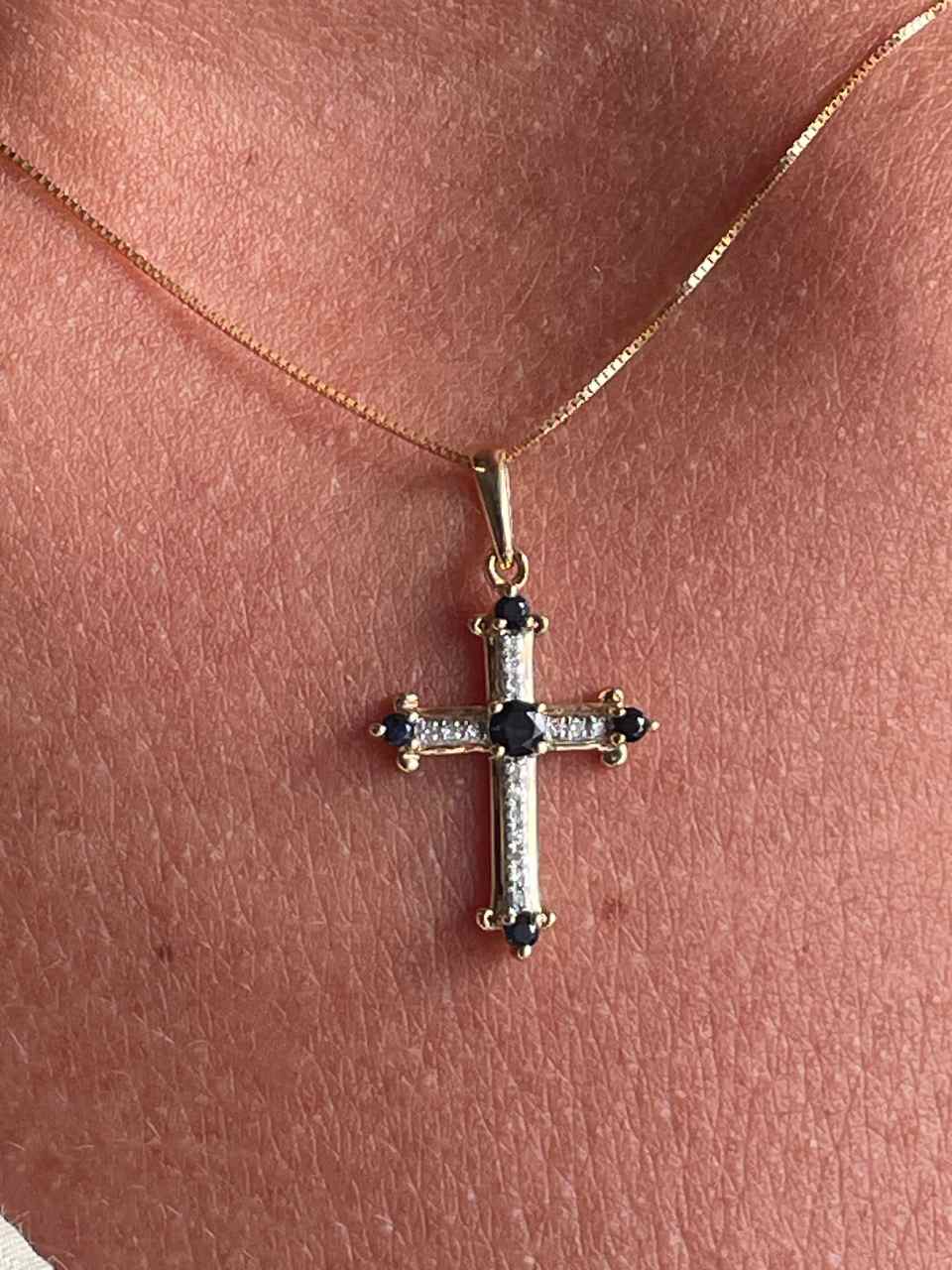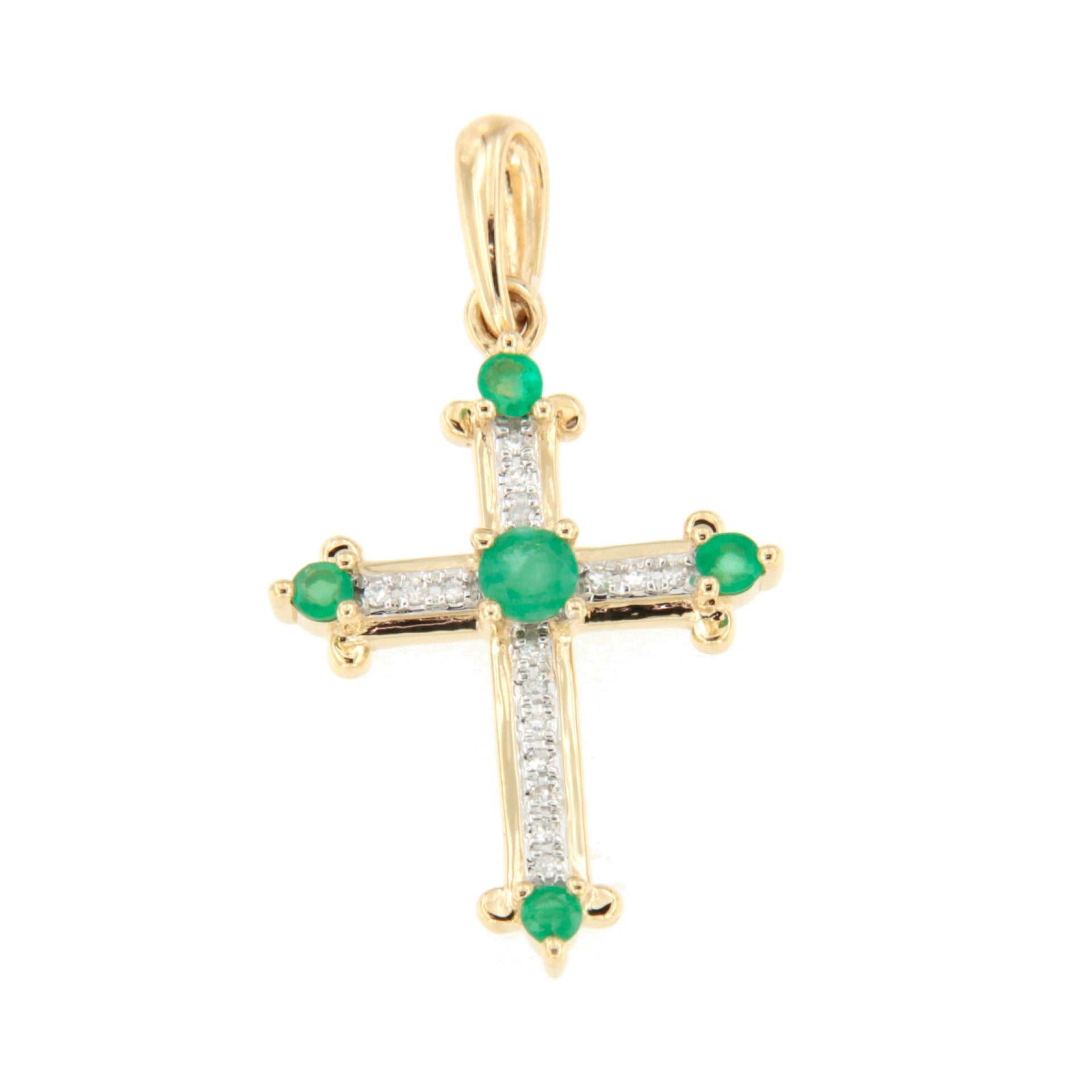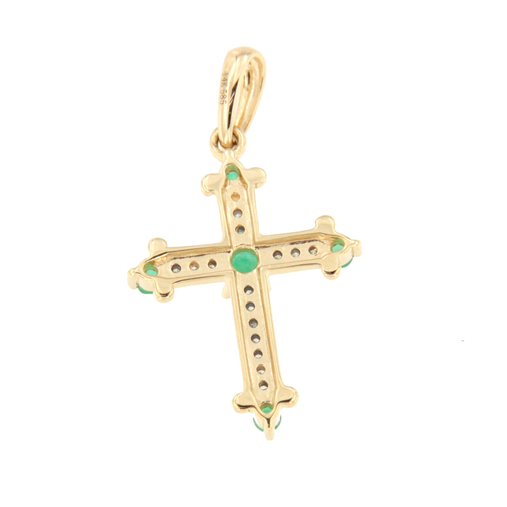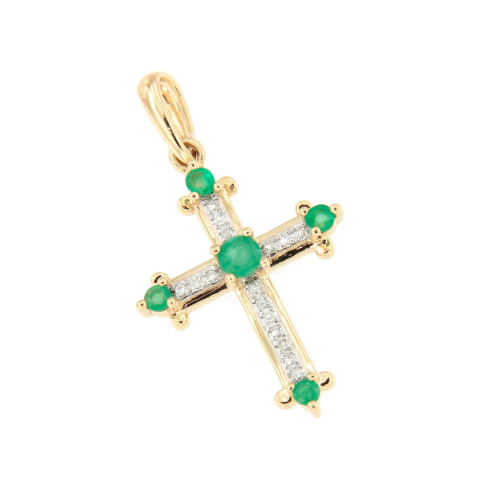 CLARIVA cross in 14k gold with diamonds and sapphire/emerald