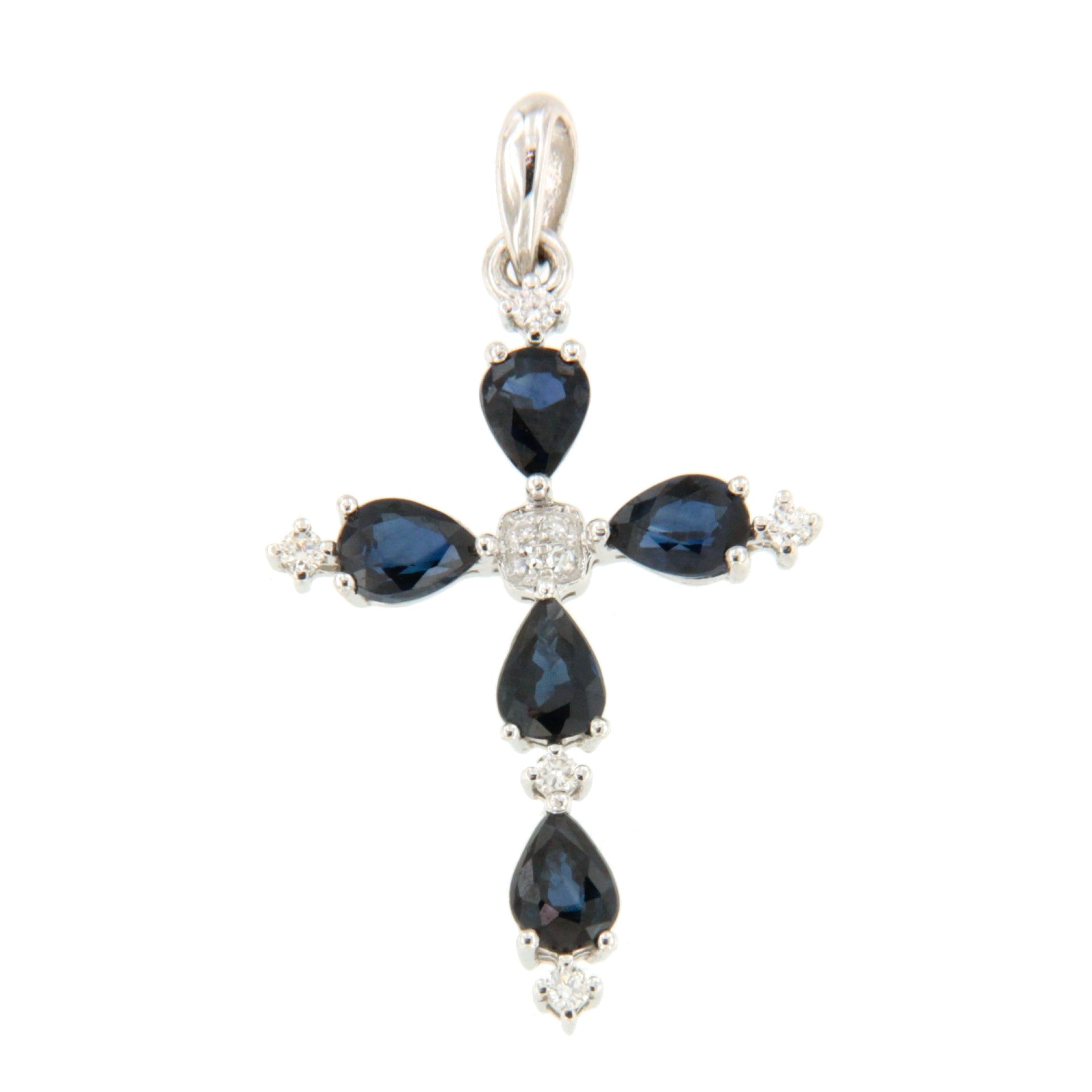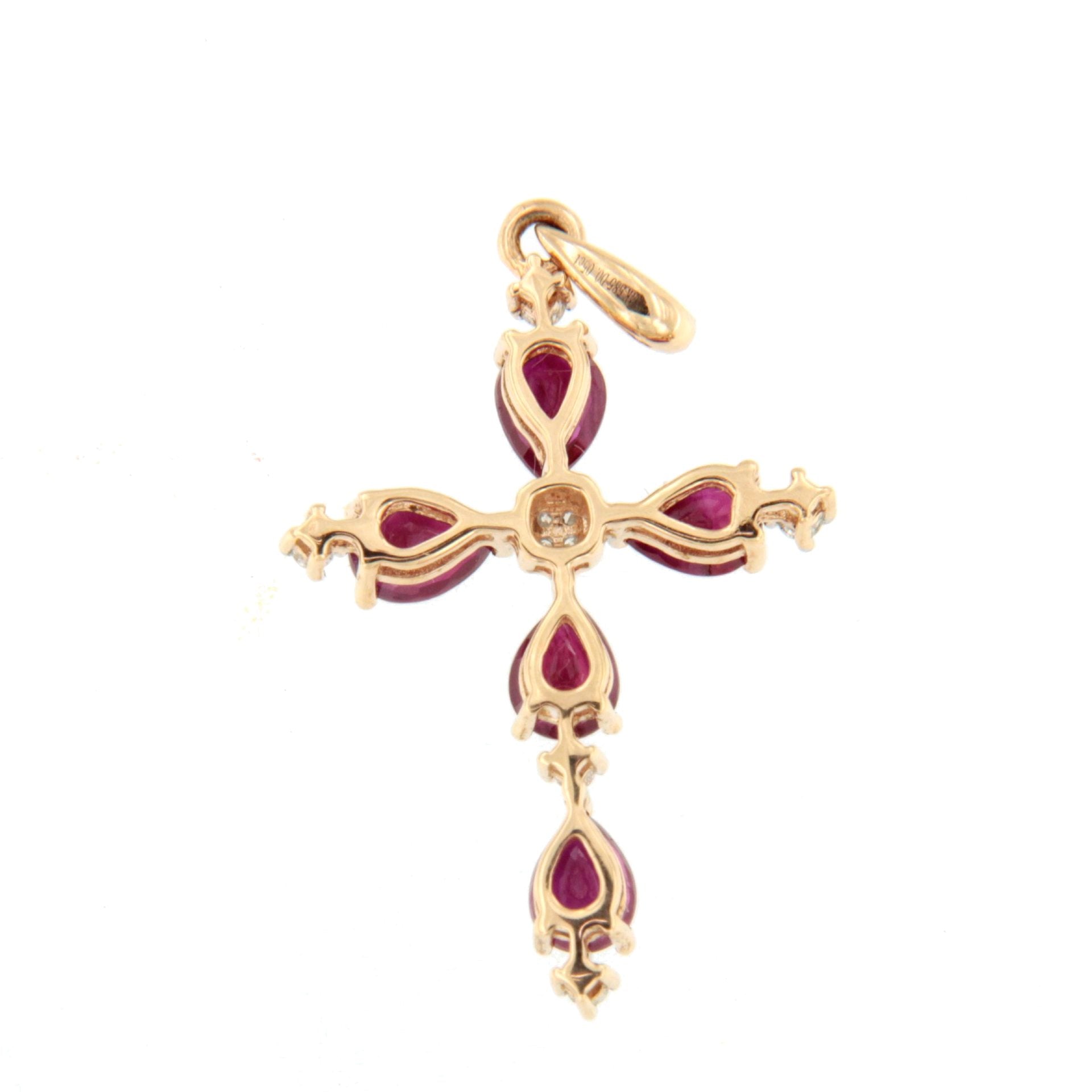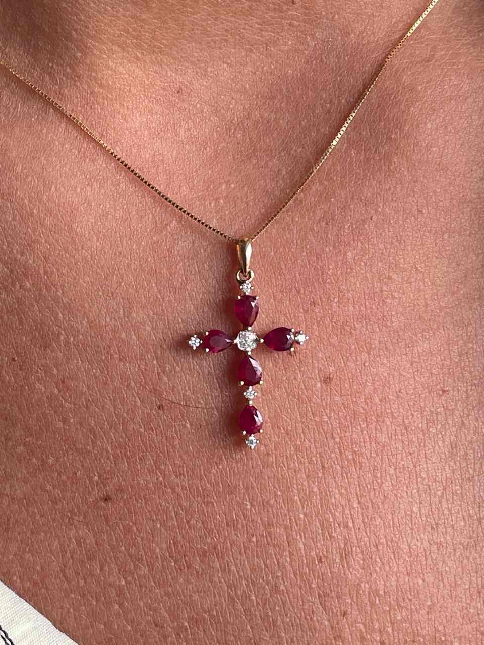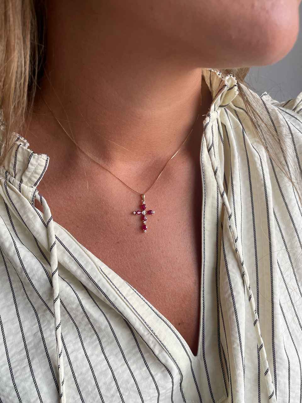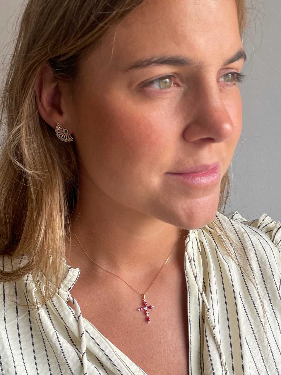 ZARELA cross in 14k gold with diamonds and sapphire/rubies