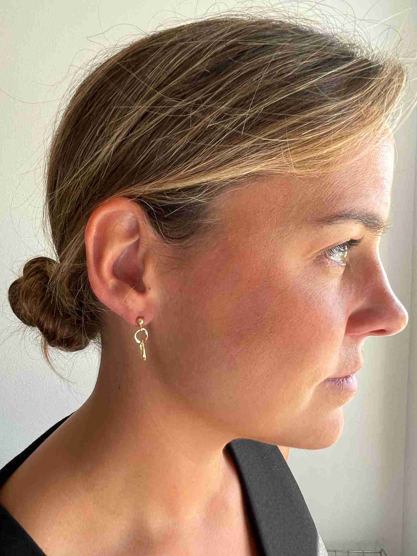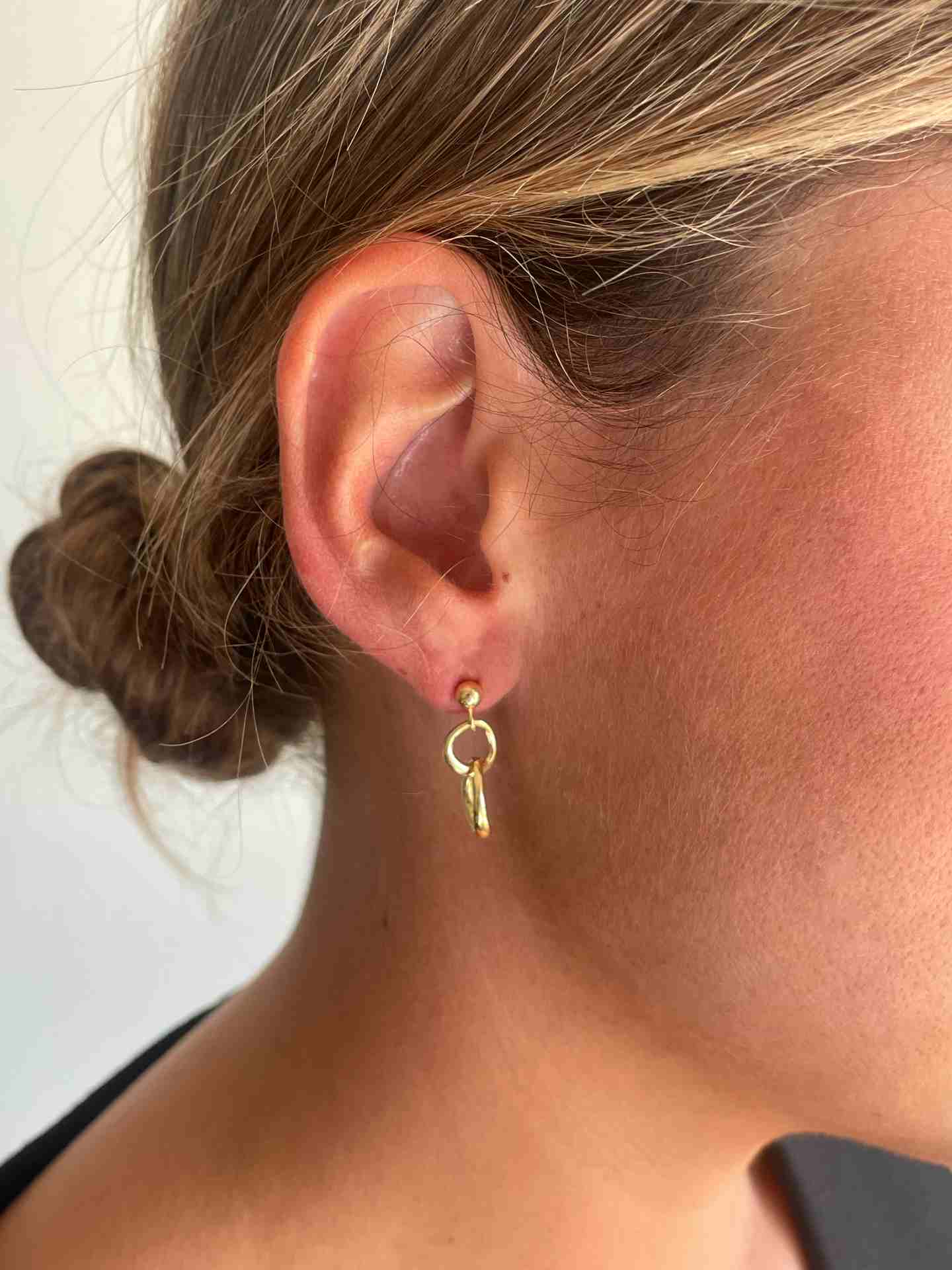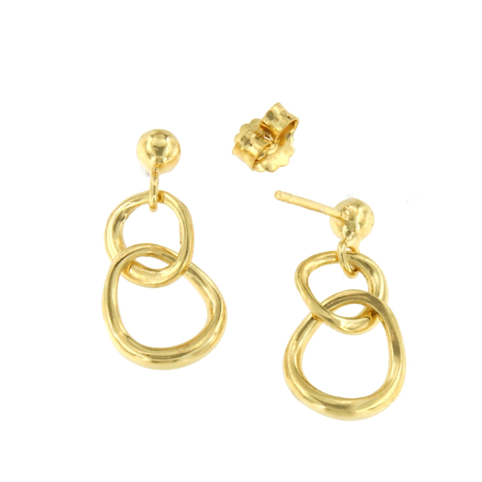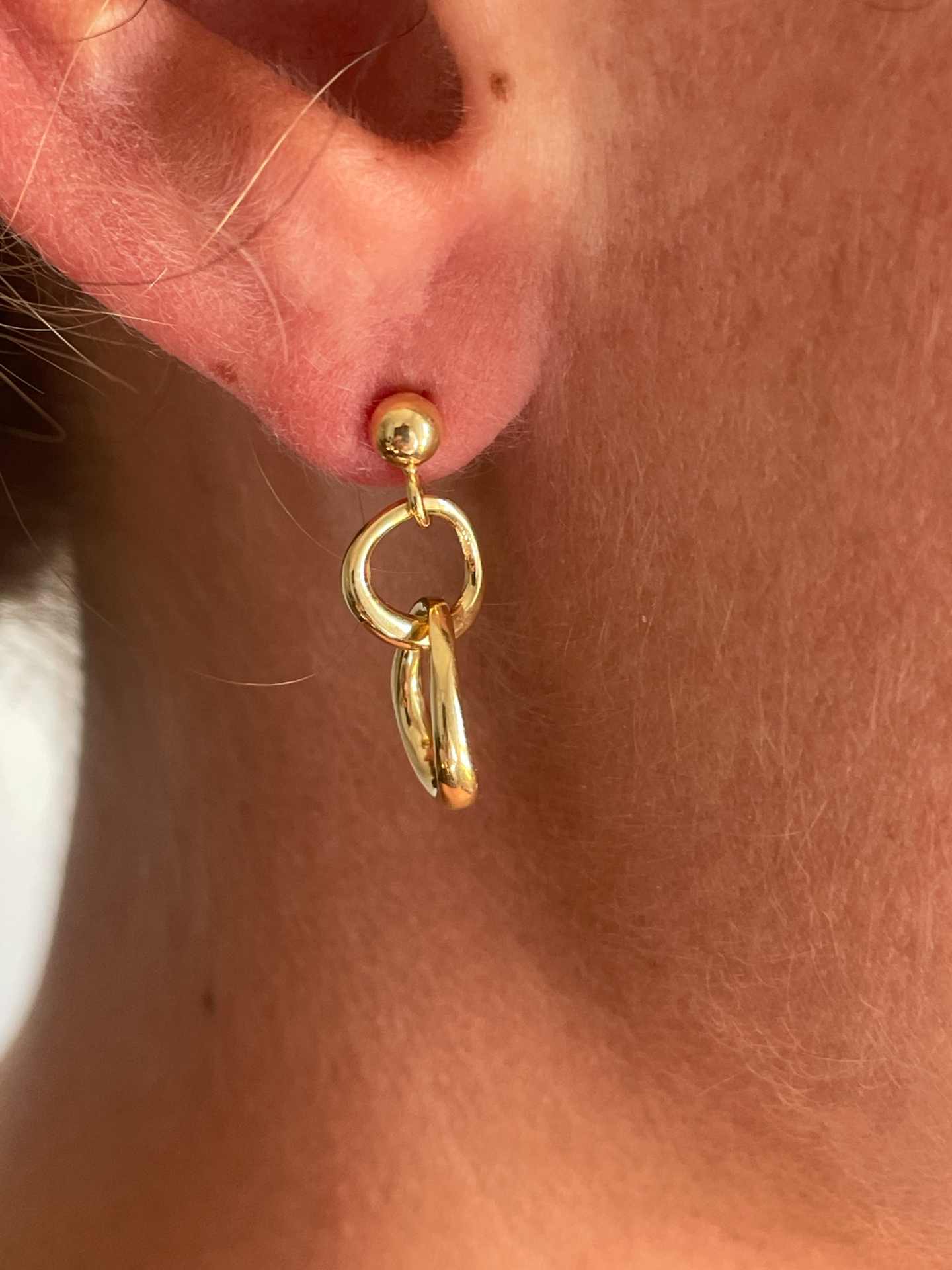 FEZ is a very lightweight earring, made of sterling silver, with an 18-karat yellow gold plating; its design consists of linked hoops that hang down.