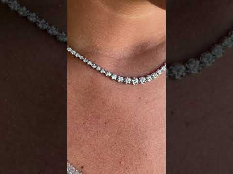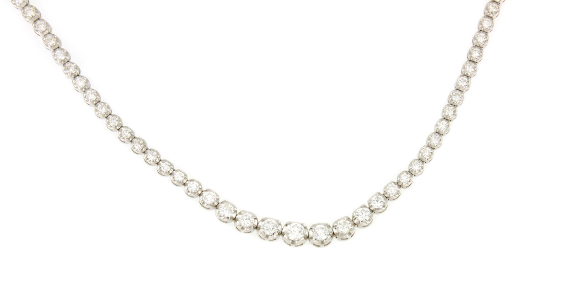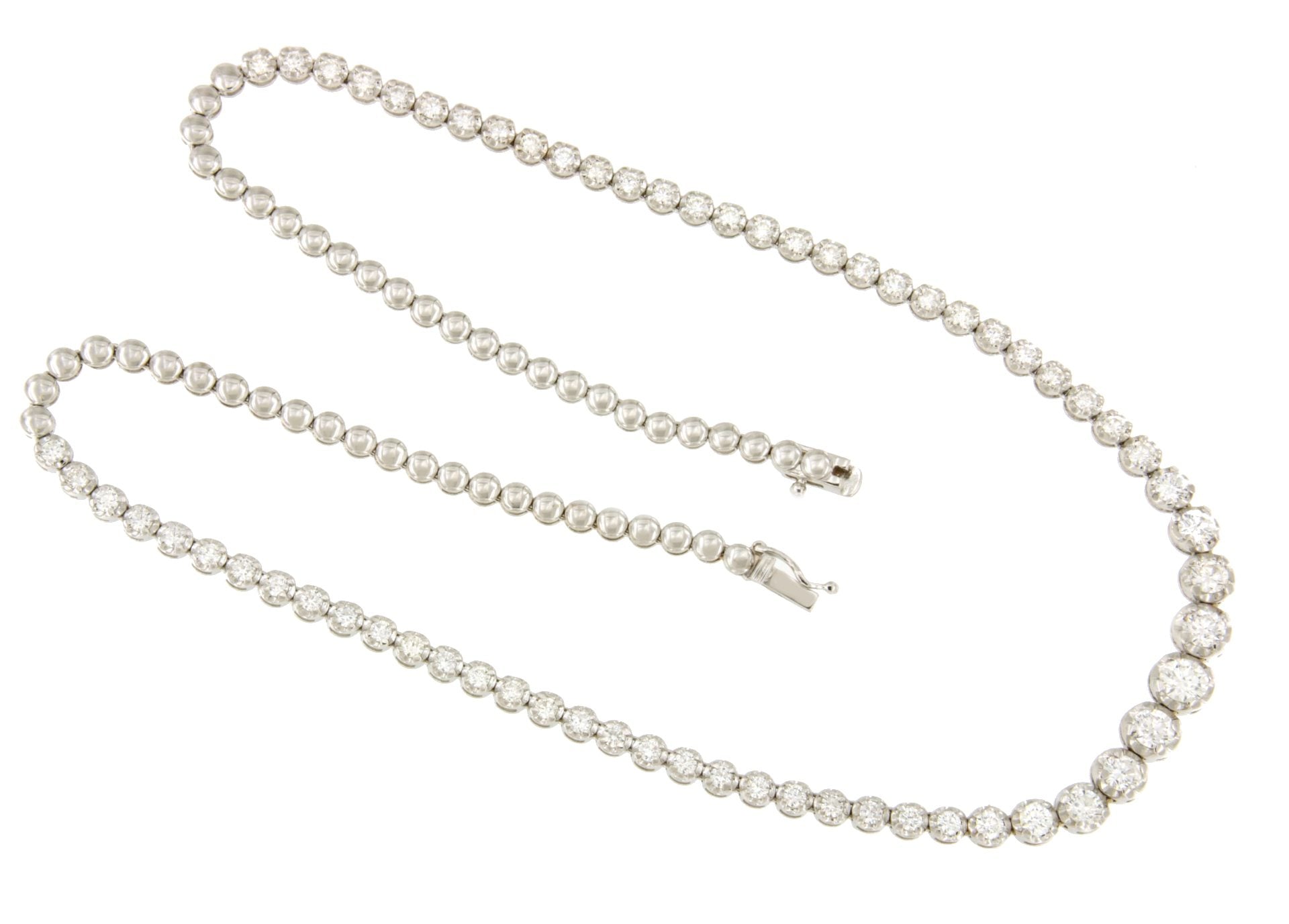 ABBEVILLE is a rivière-style necklace of diminishing diamonds , in which the diamonds are set on four prongs with illusion settings that create a more radiant effect. In 18-karat white gold.