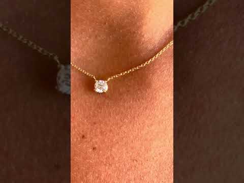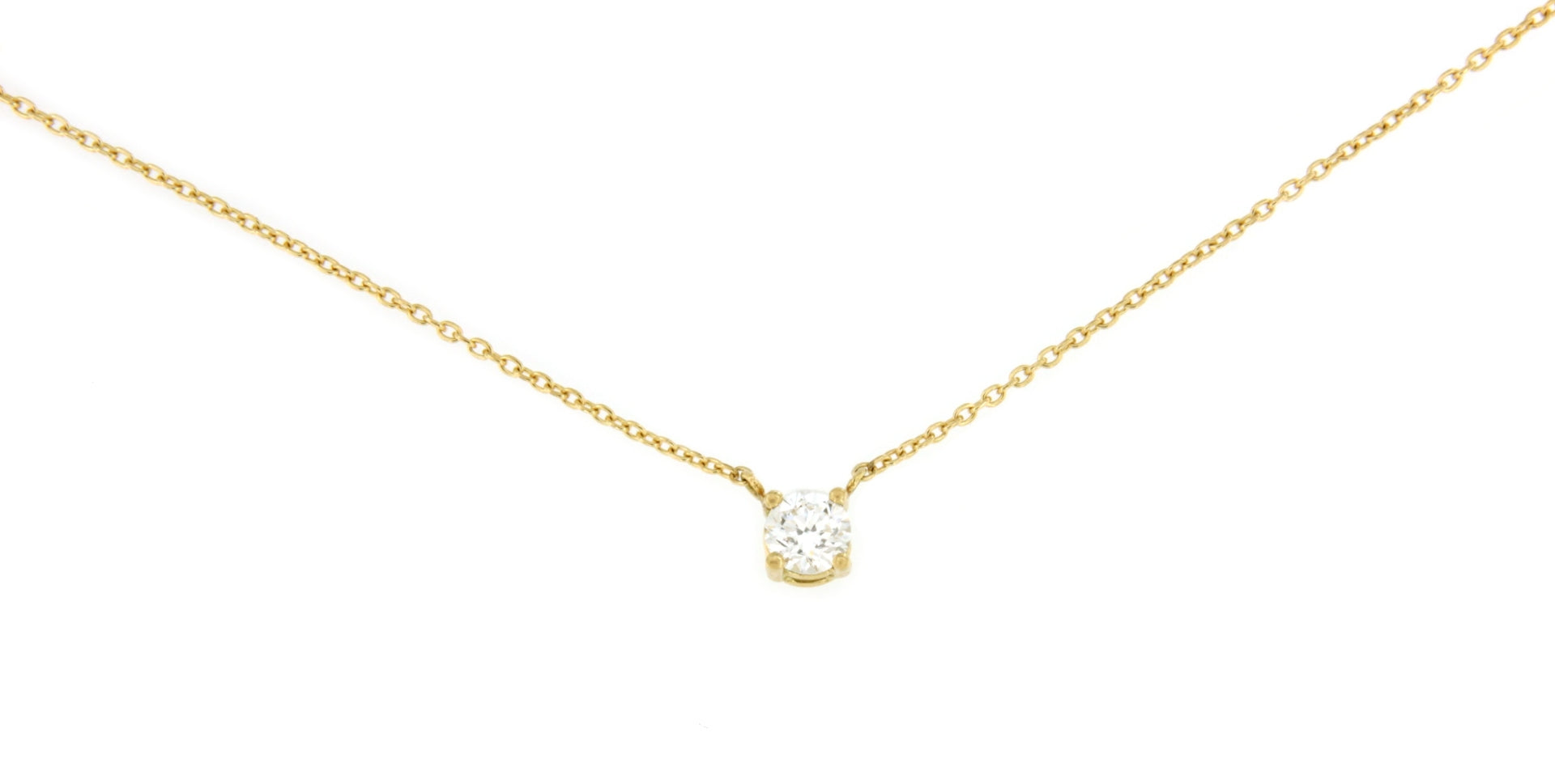 ARLES , a beautiful and classic solitaire diamond necklace in 18-karat yellow gold. It is mounted on four prongs on a classic curb chain.