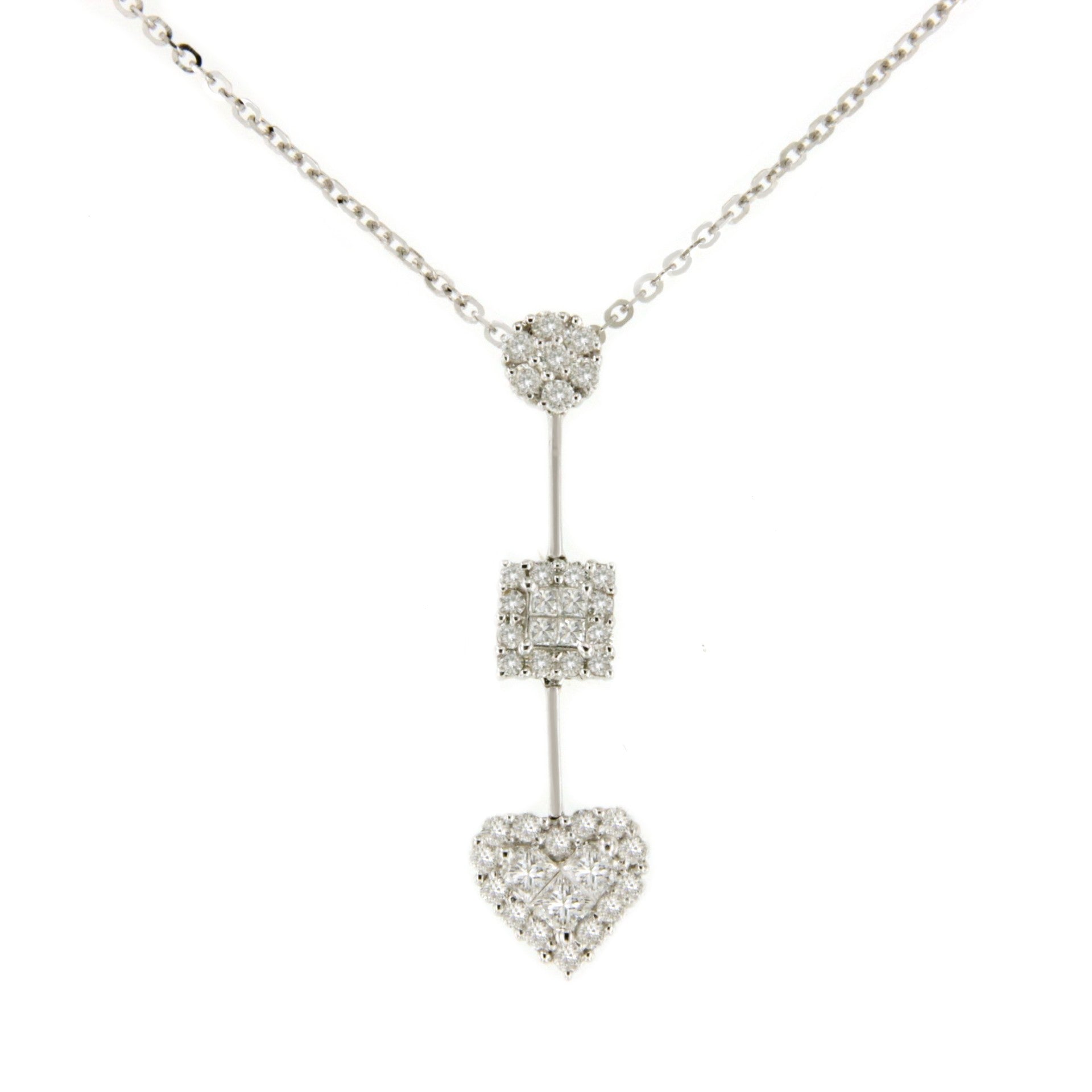 DELFIN is a choker with an ideal pendant in 18-karat white gold that hangs in different shapes: round, square, and heart , with diamonds and princesses .
