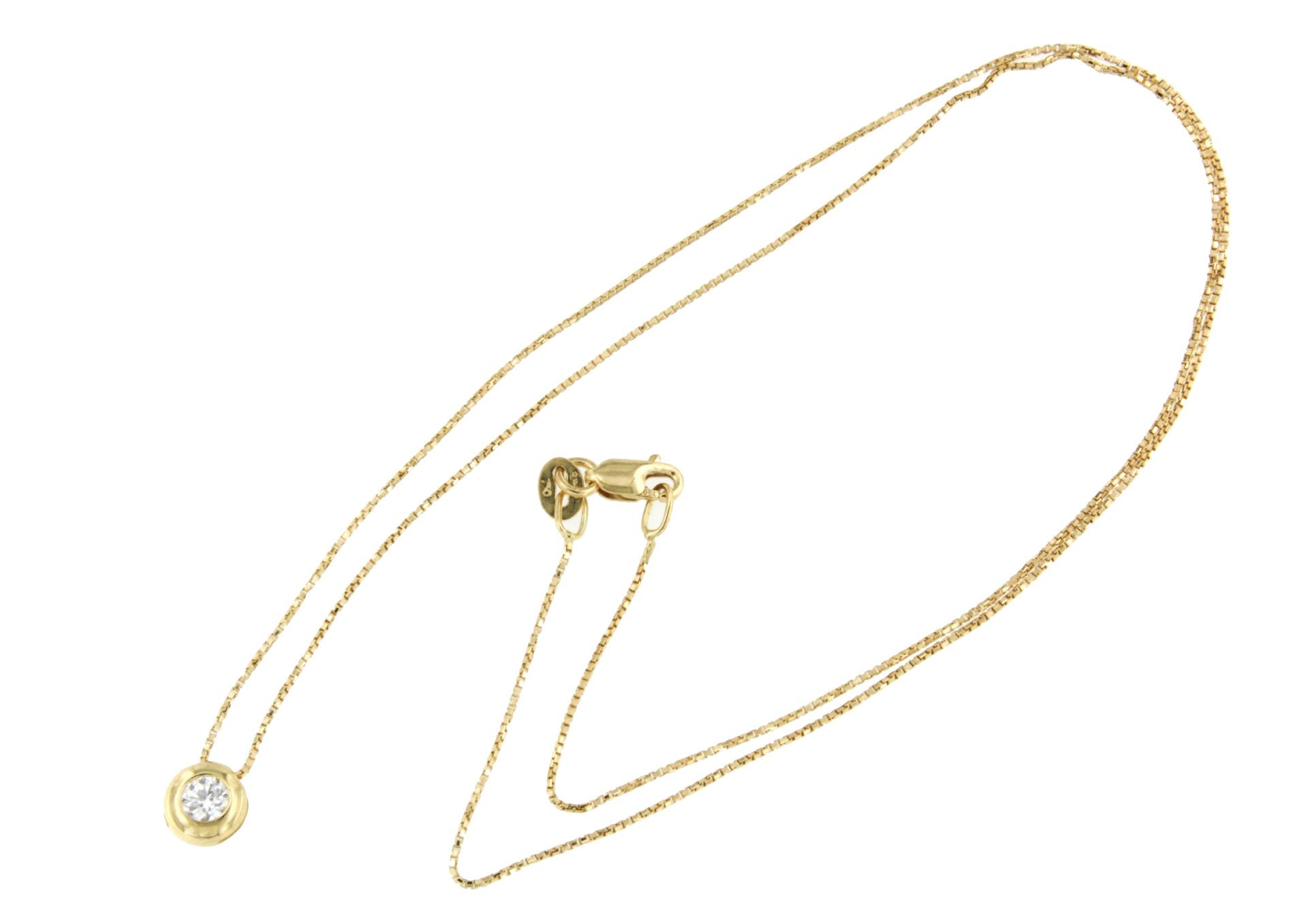 LAGES is a choker with an 18-karat yellow gold nozzle pendant , set with a cubic zirconia and mounted on a classic fine yellow gold chain.