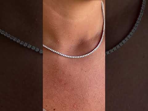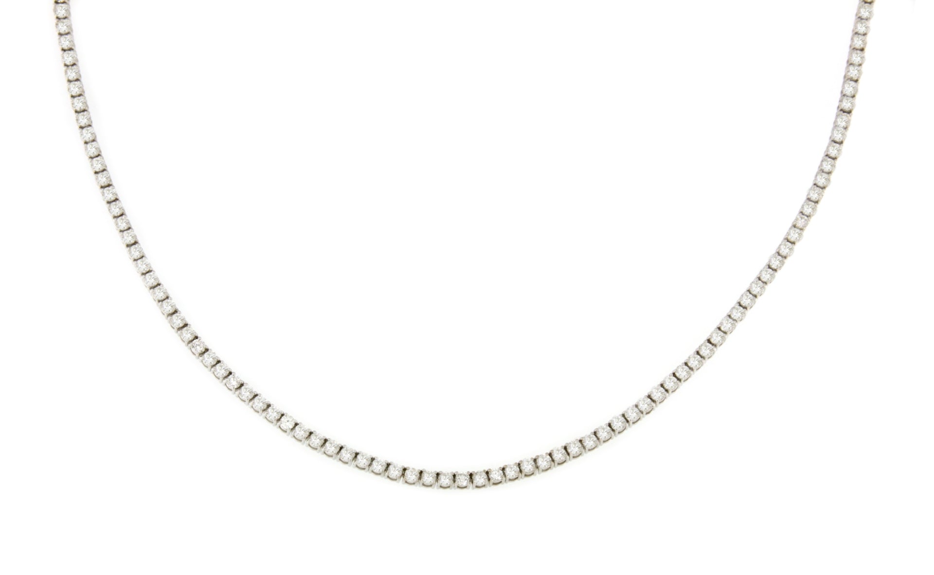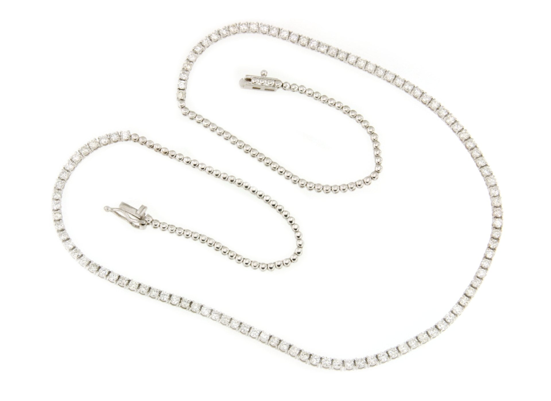 MENDE , fine and delicate riviere of diamonds set in four claws and mounted in 18 karat white gold .