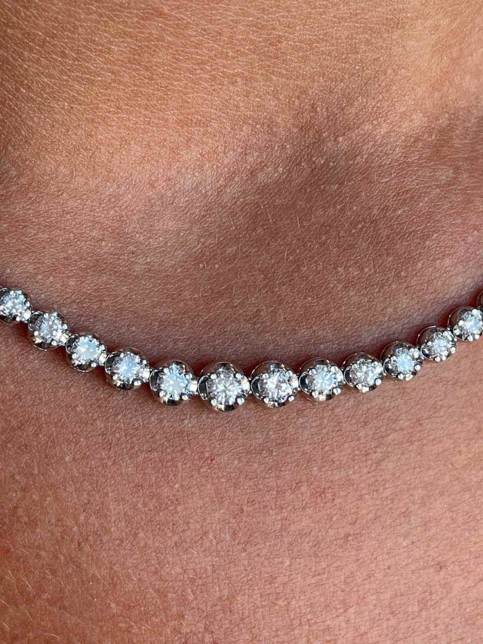 MONTLUCON , spectacular riviere of diminishing diamonds set on illusion view to enlarge them and mounted in 18 karat white gold.