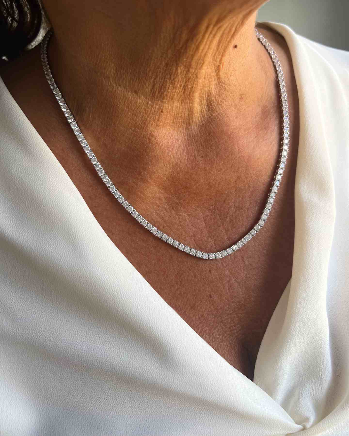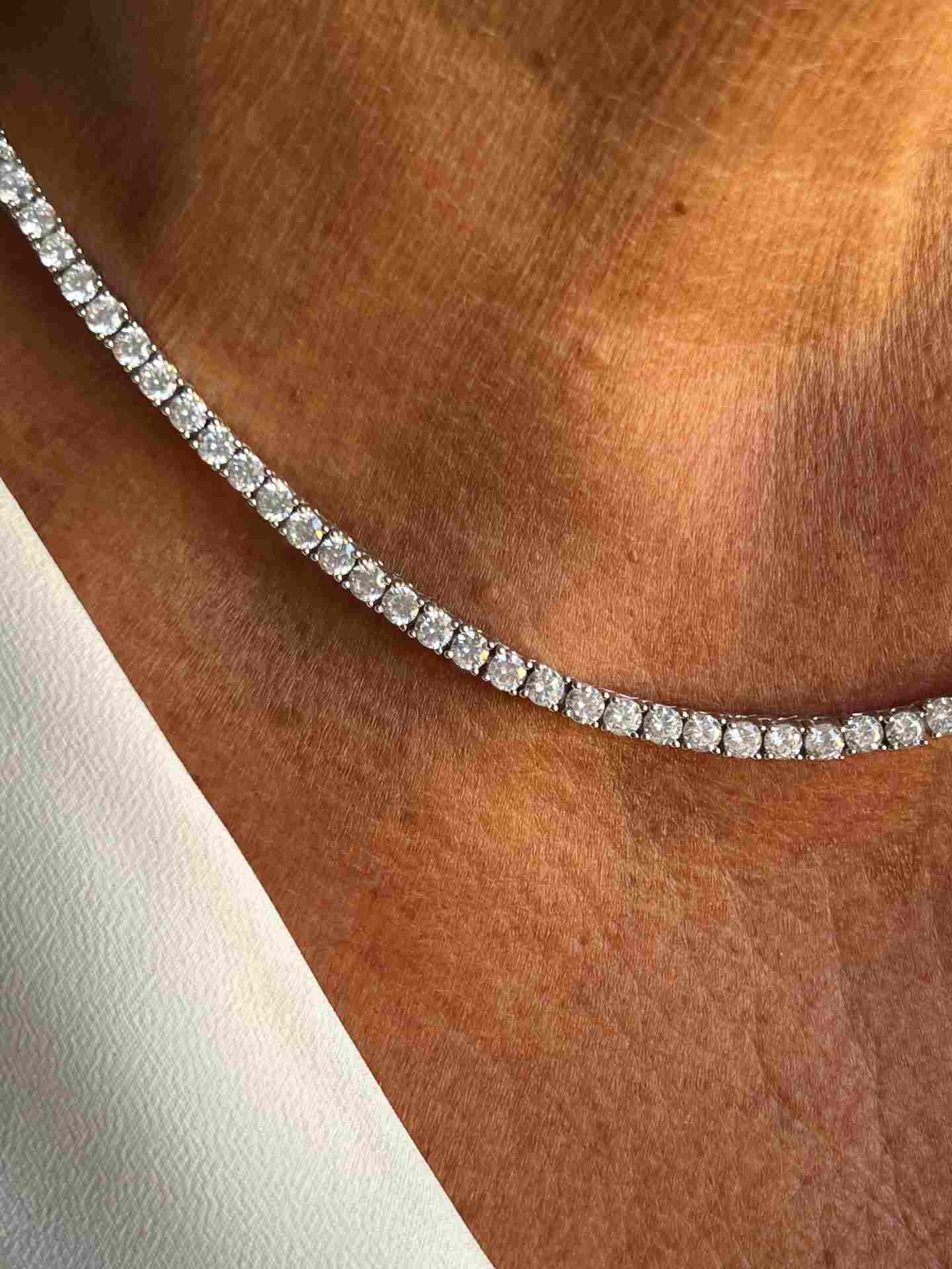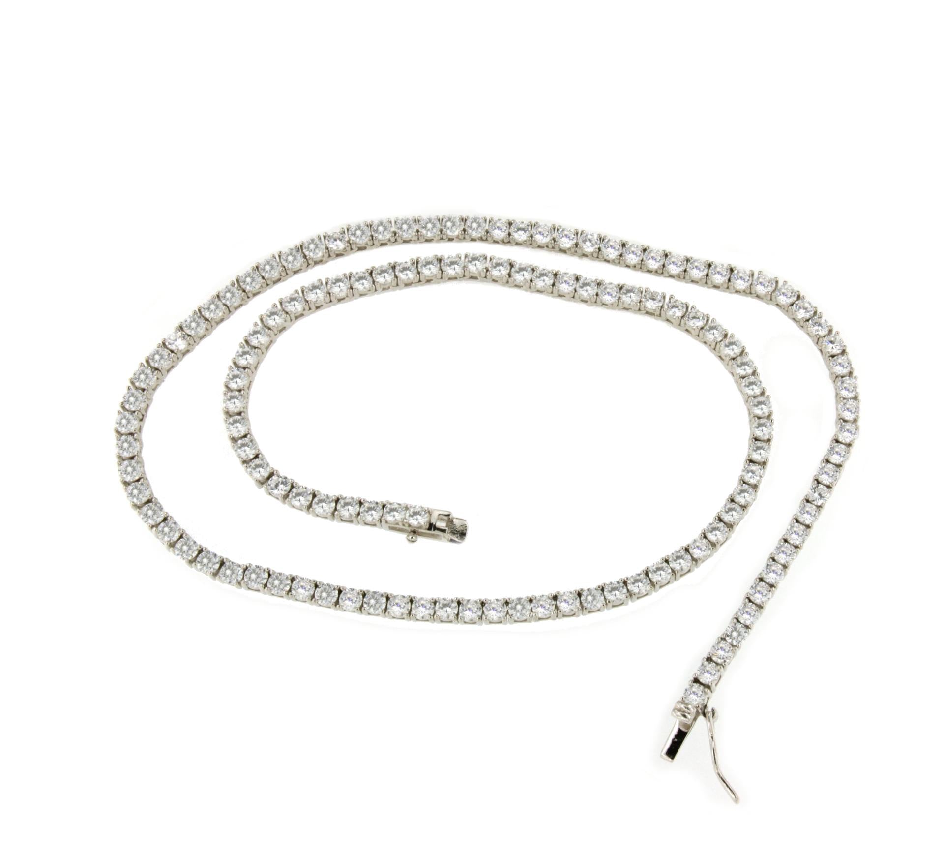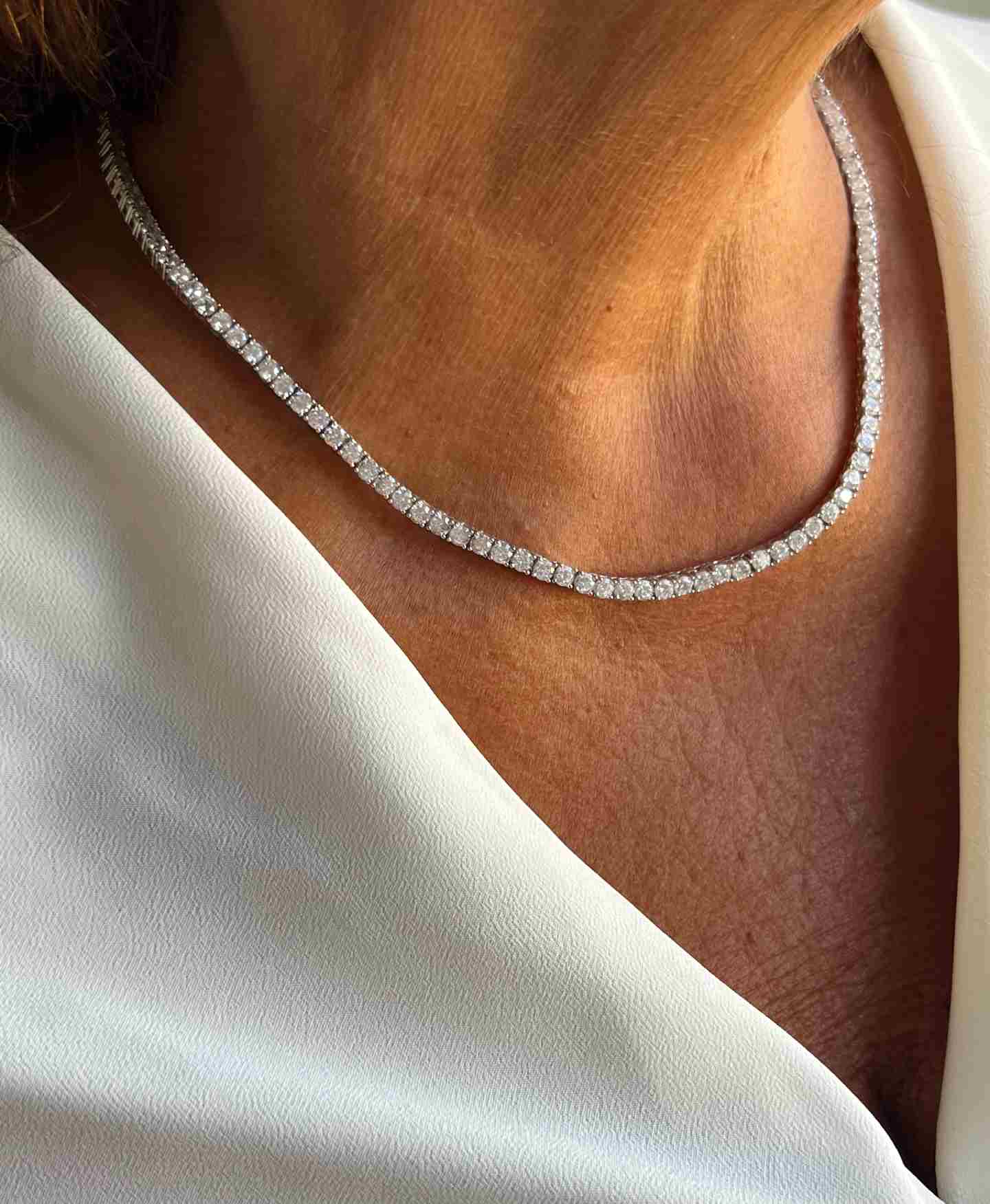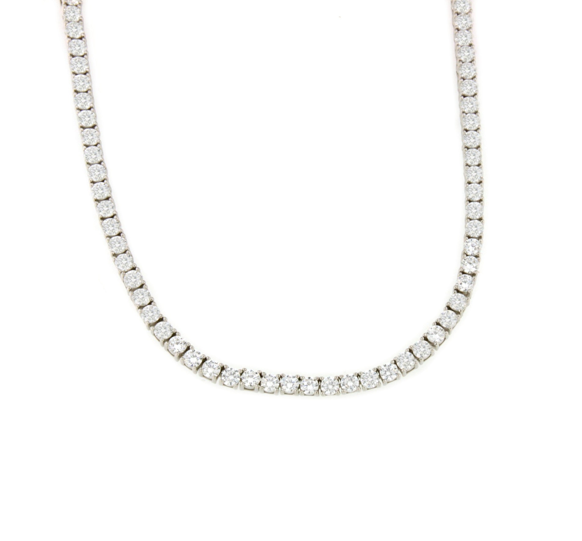 The spectacular Riviére CATHERINE choker is crafted from sterling silver and features cubic zirconia stones set in an illusion mounting to enhance their brilliance and create a more substantial appearance. It has a virtually invisible box clasp and an additional safety loop.