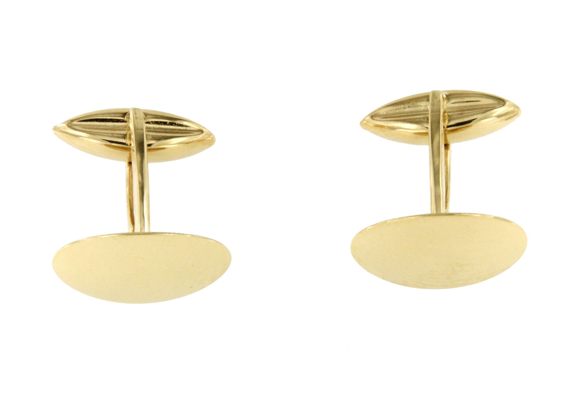LUSOS are plain cufflinks with an oval plate for personalization with engravings or initials, crafted in 18-karat yellow gold. Classic style.