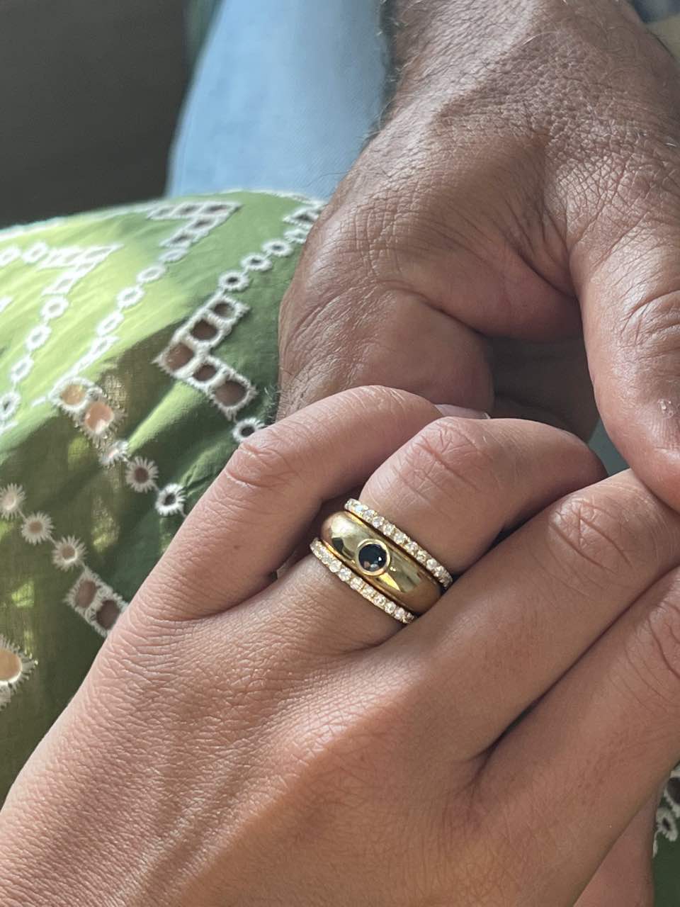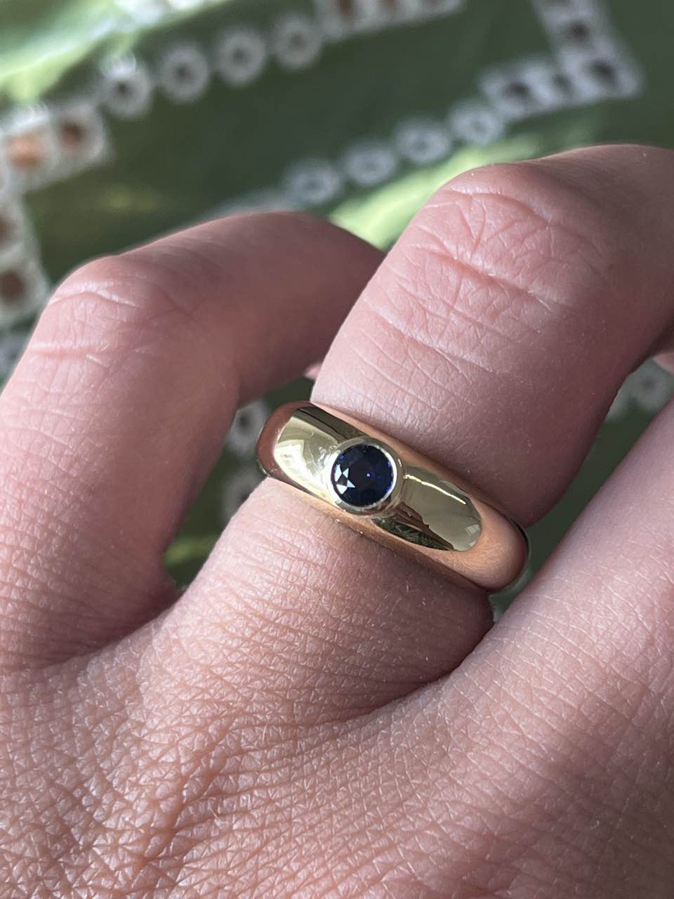 Precious gem: Diamond: 1 brilliant cut diamond (0.30 carats) and Sapphire: 1 brilliant cut sapphire (0.45 carats).