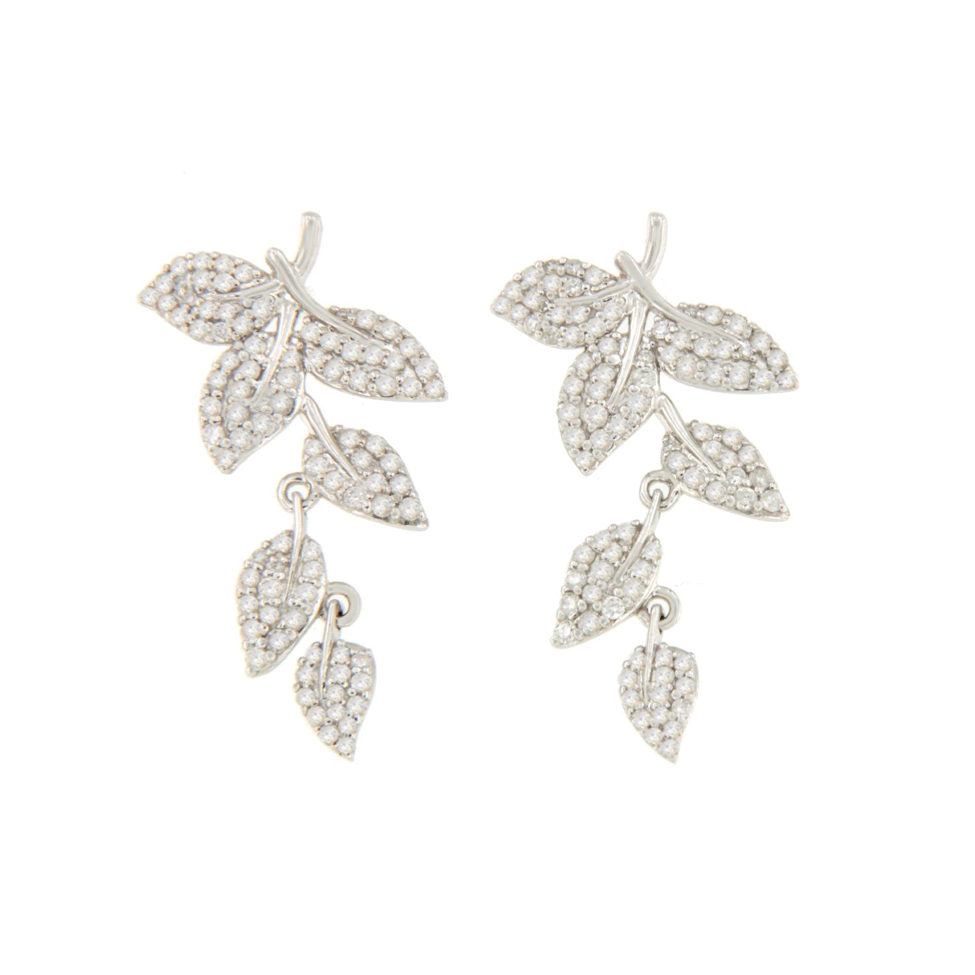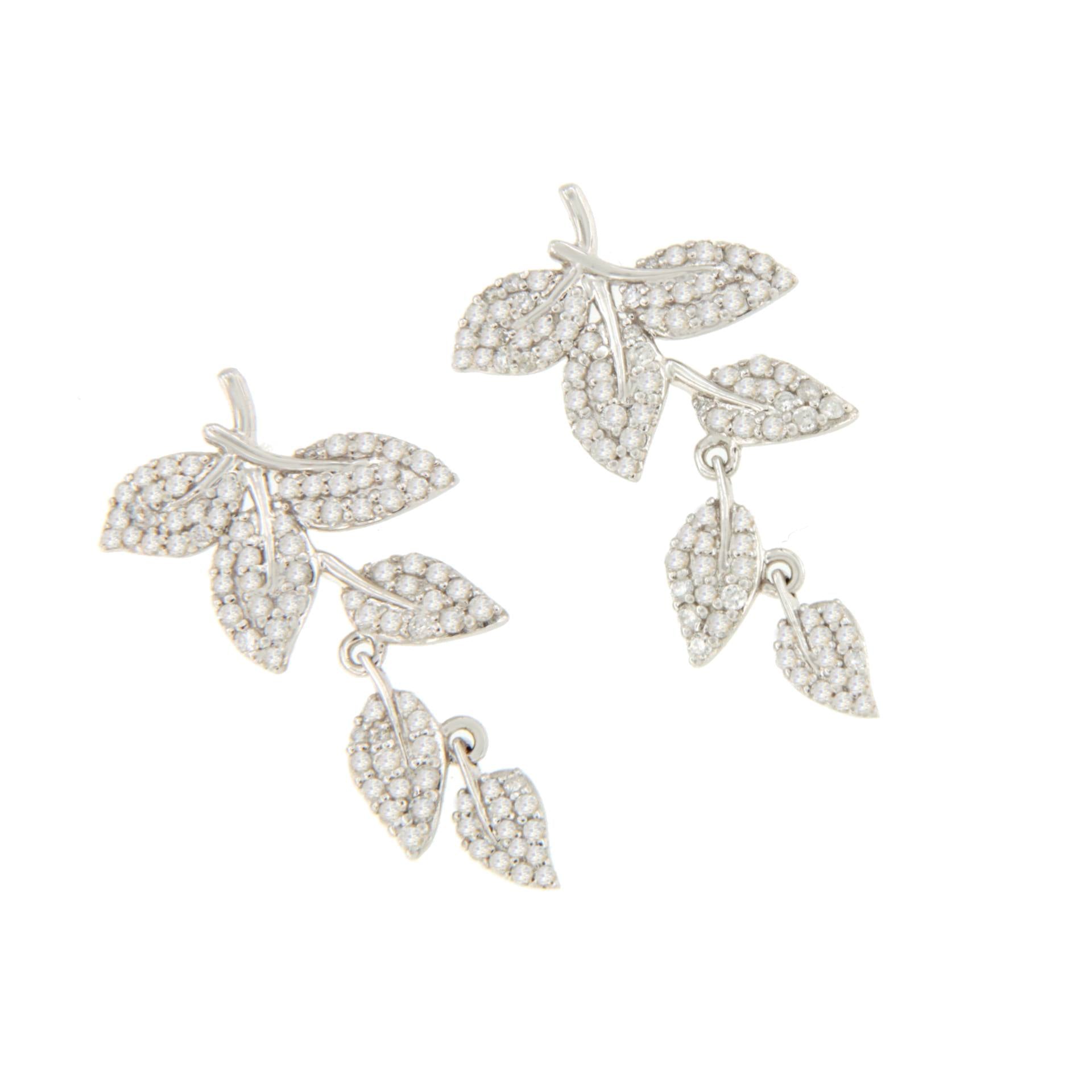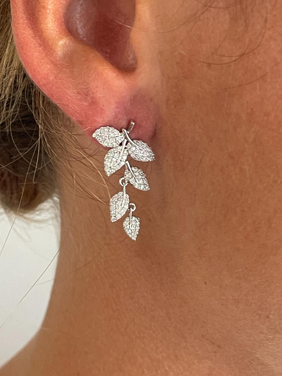 BACABA is a white gold earring with brilliant -cut diamonds , featuring a head of articulated flower leaves that give movement to a spectacular earring .