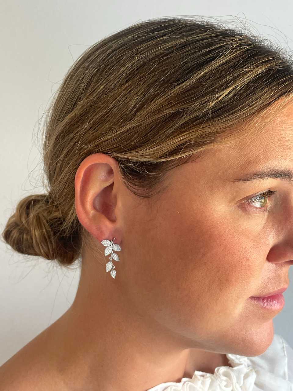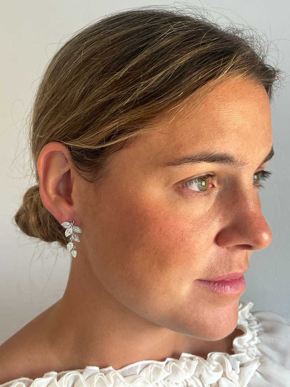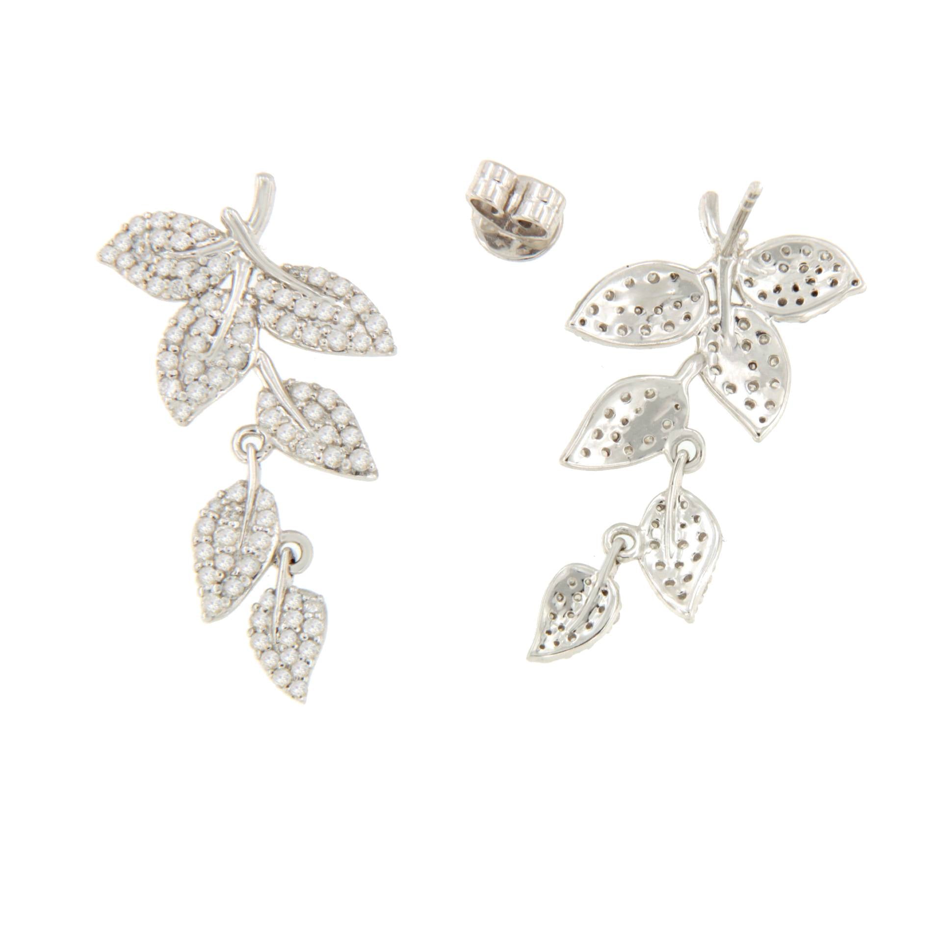 BACABA is a white gold earring with brilliant -cut diamonds , featuring a head of articulated flower leaves that give movement to a spectacular earring .