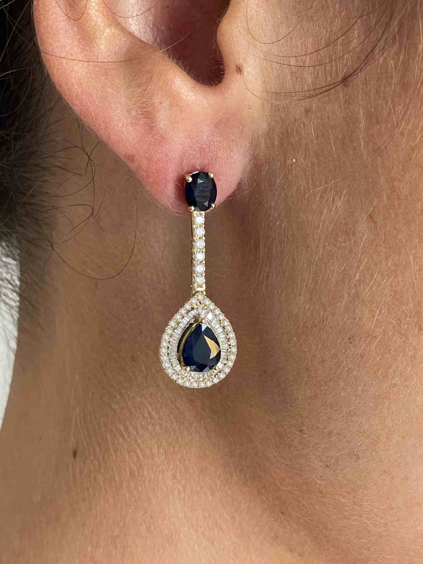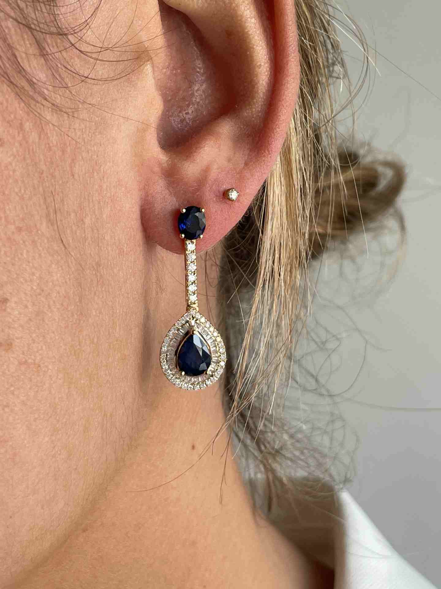 BOSTON earring in 18k yellow gold with sapphire, diamonds and baguettes