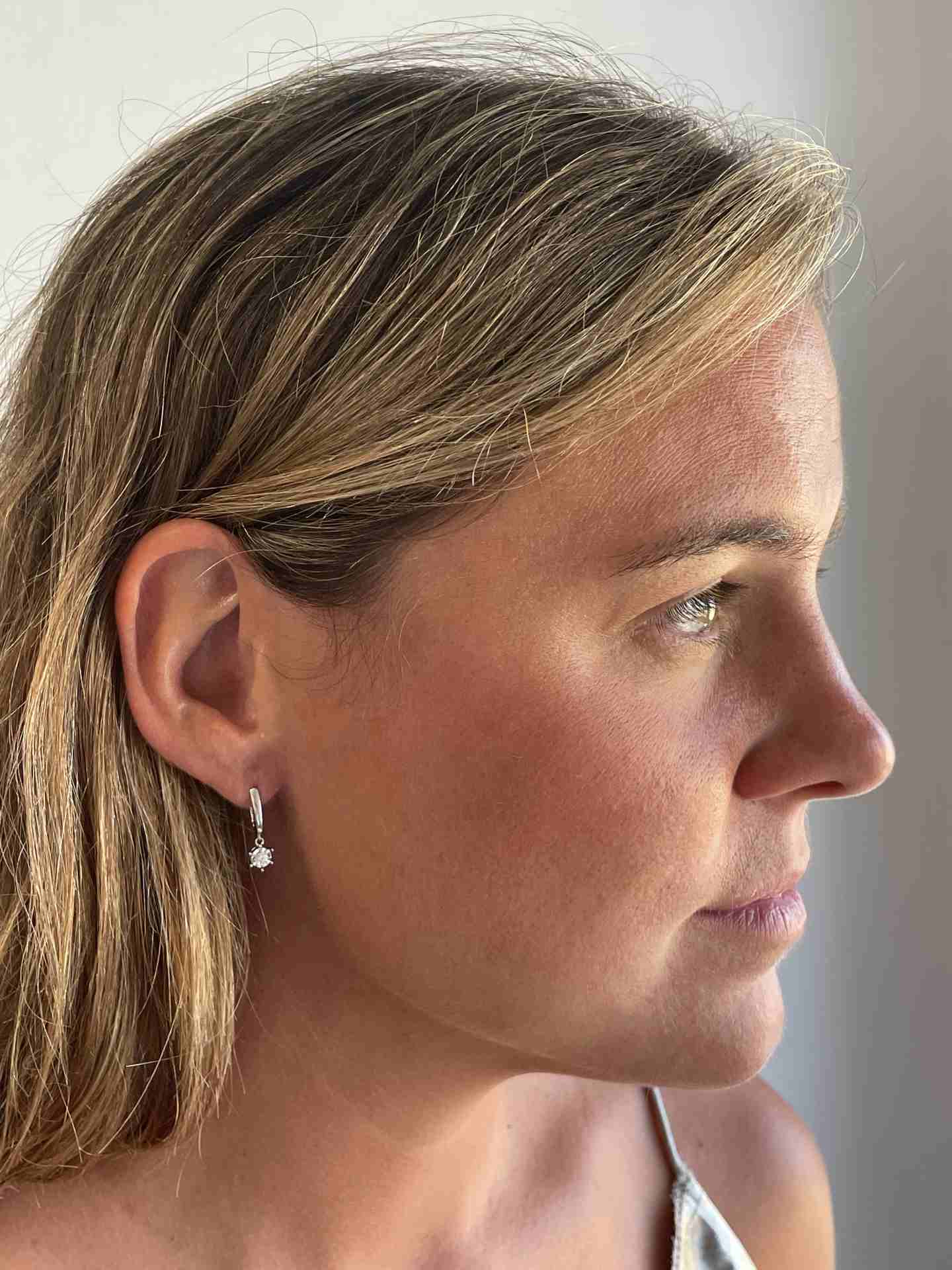 BOURGES pendant earrings with diamond hoops in 18k white gold