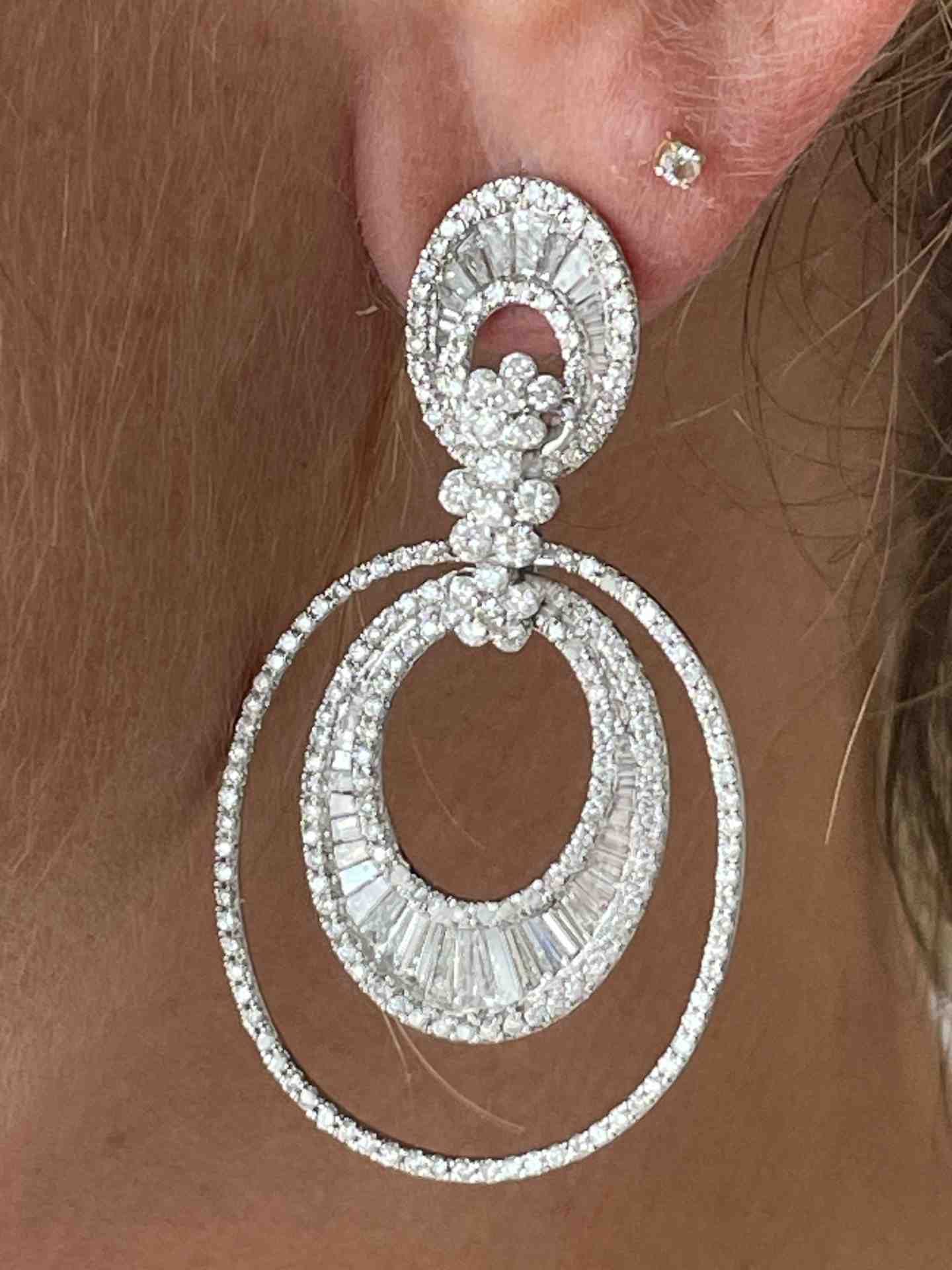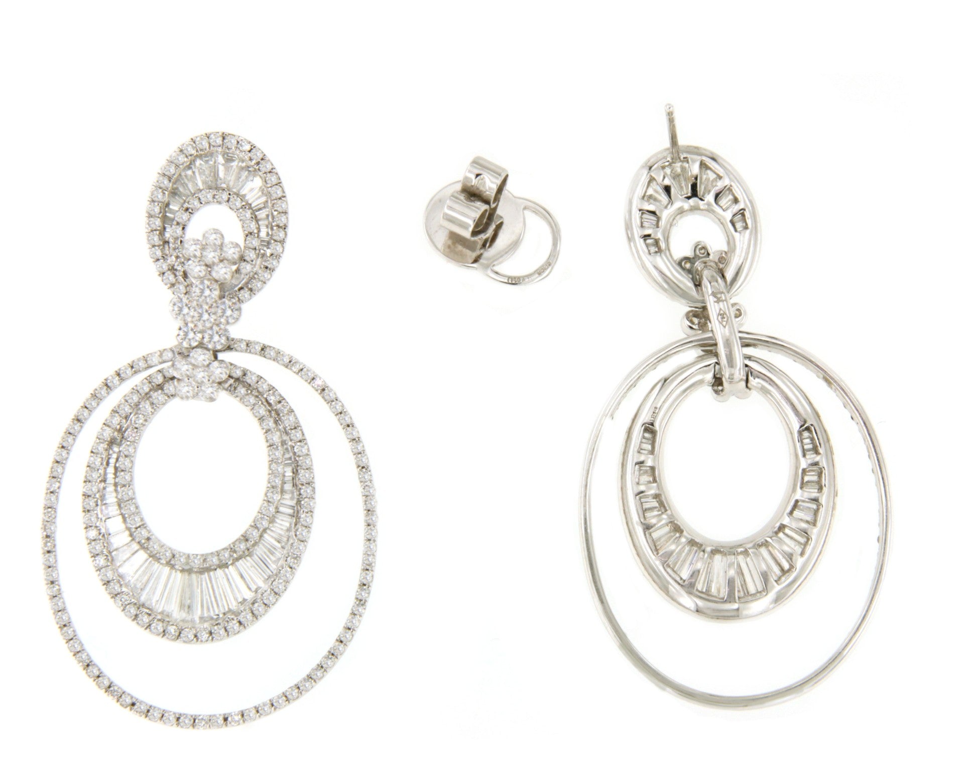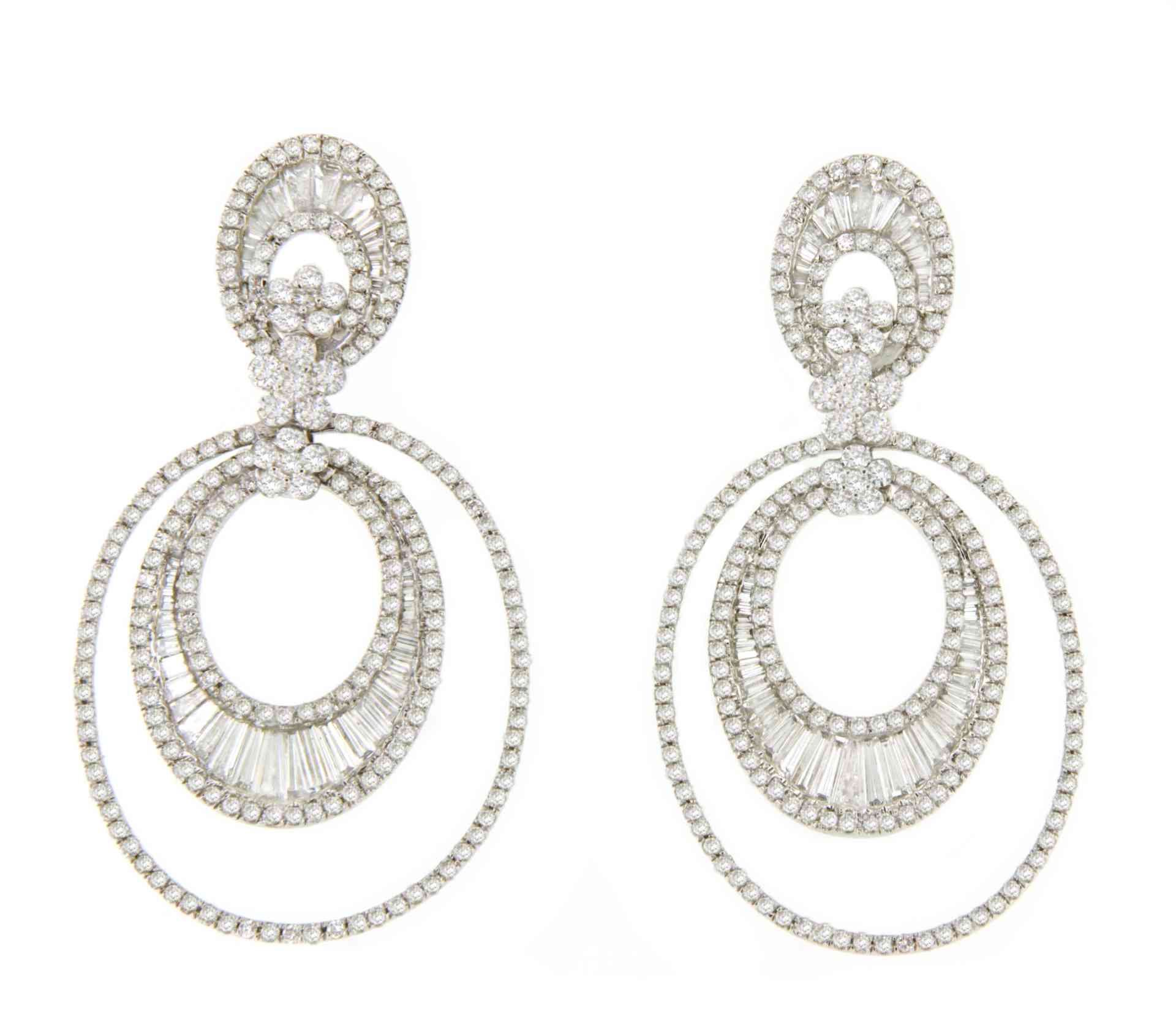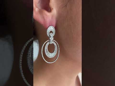 BUHO are wonderful long earrings in 18-karat white gold with hoops that hang with diamonds and baguettes.