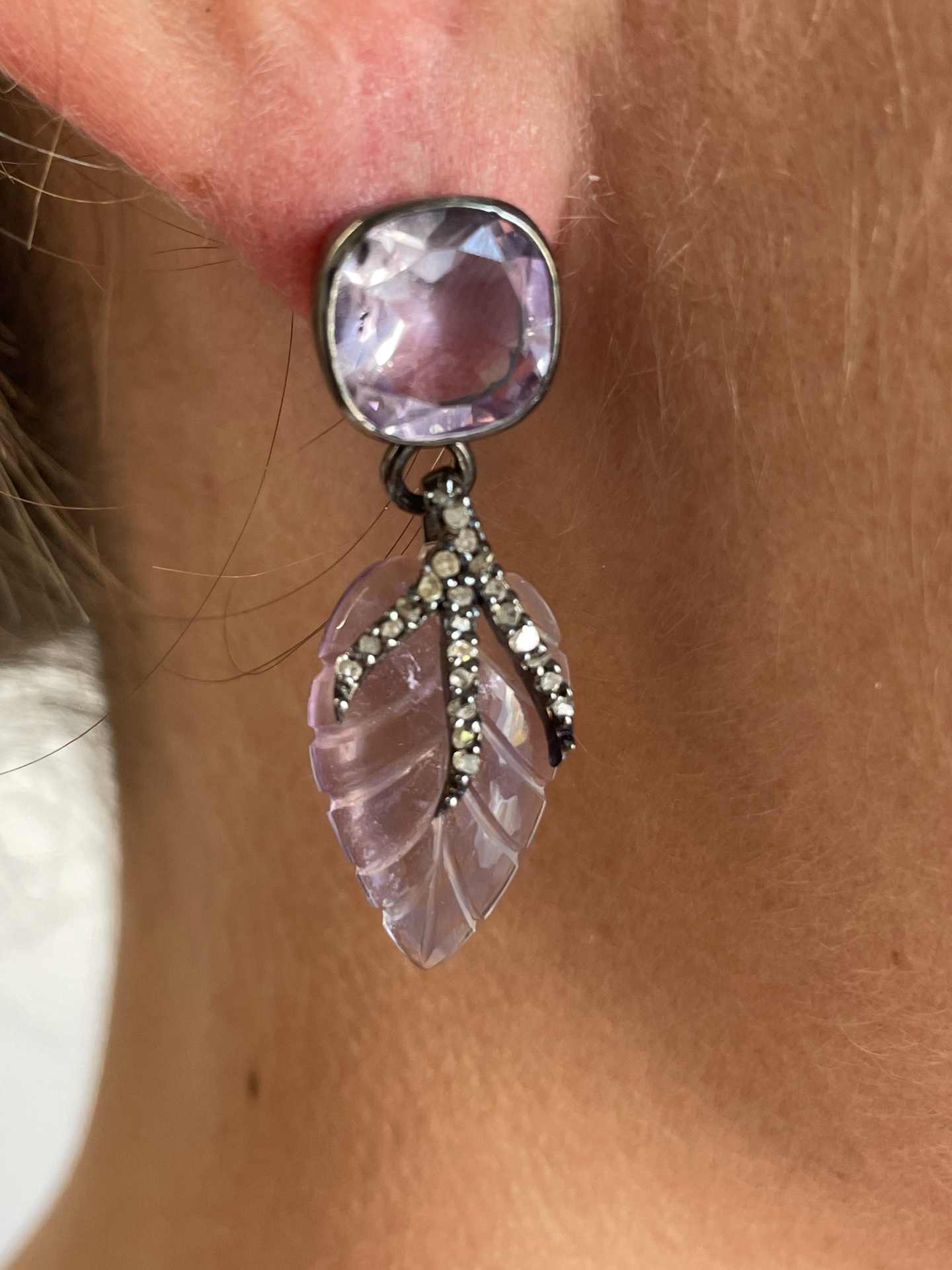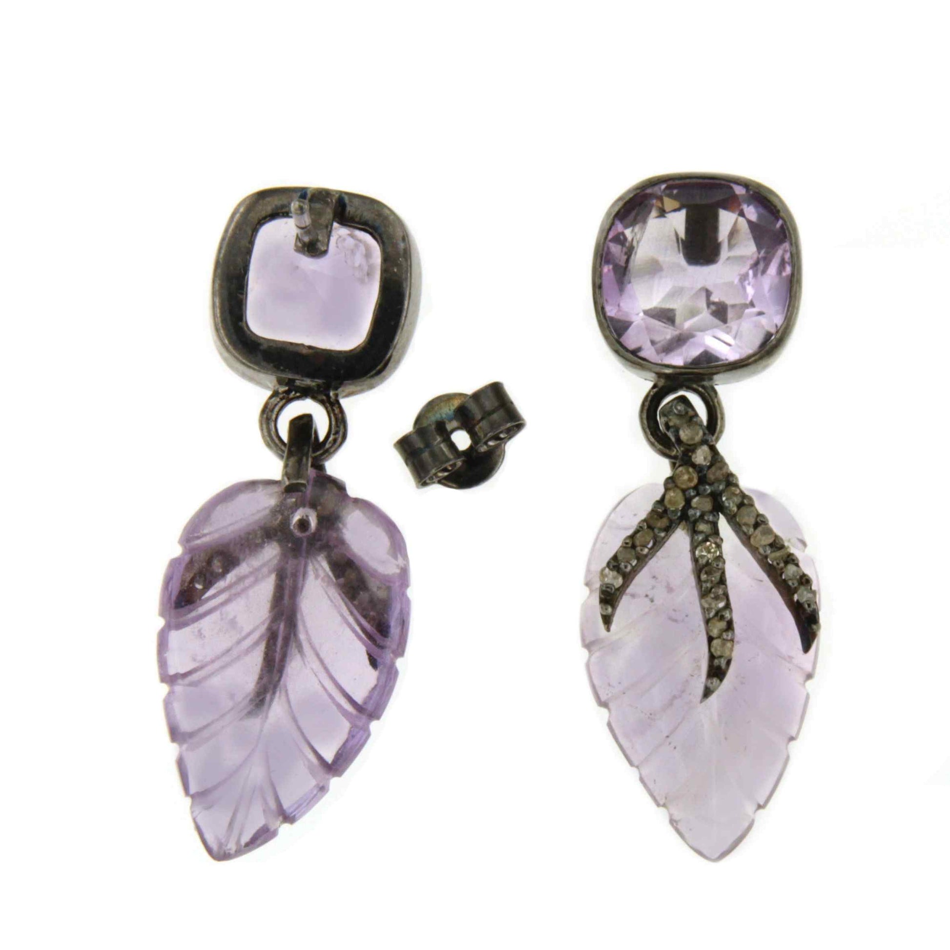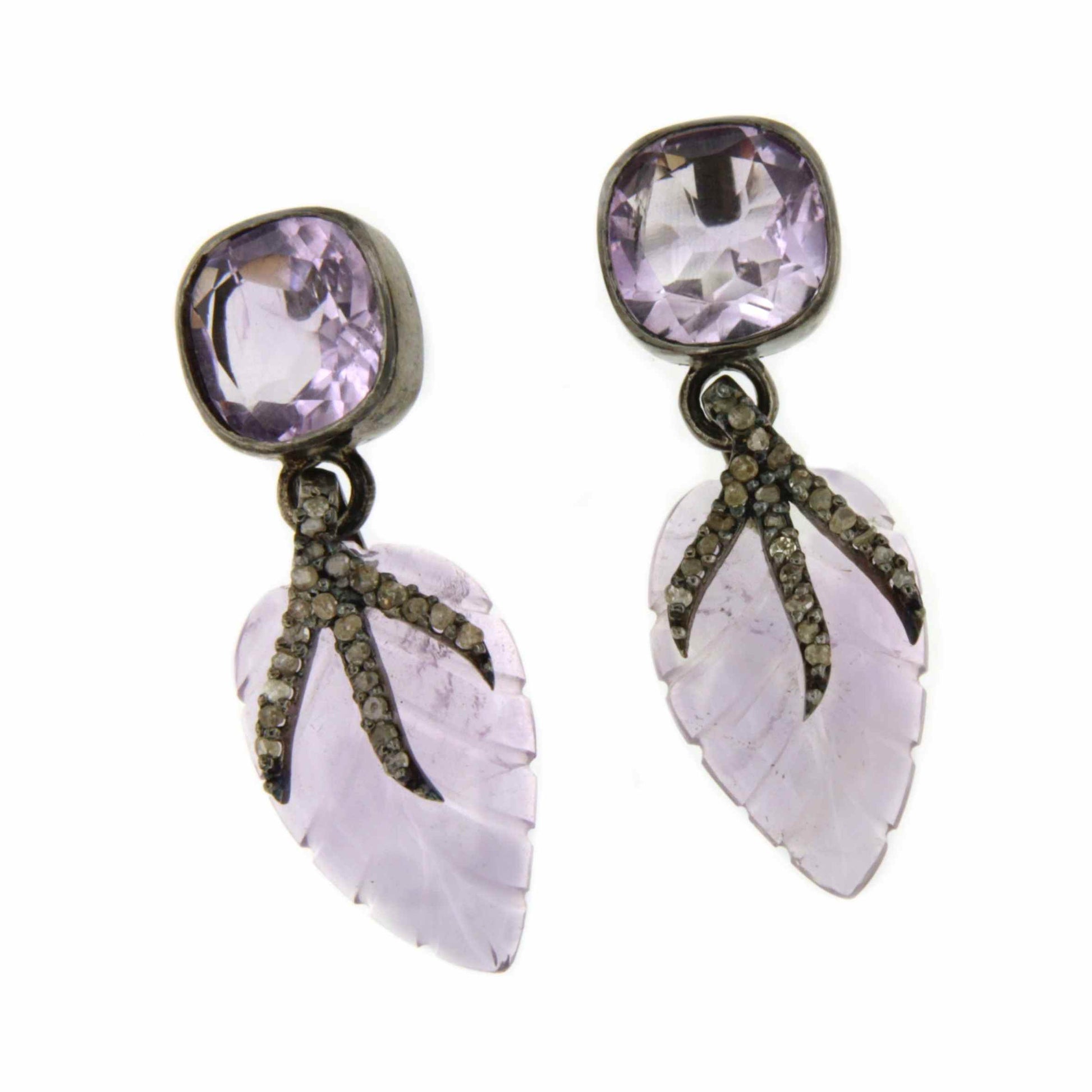 FOCA are earrings made of 925 sterling silver , rhodium-plated in black, with carved amethysts and brown rock-cut diamonds .