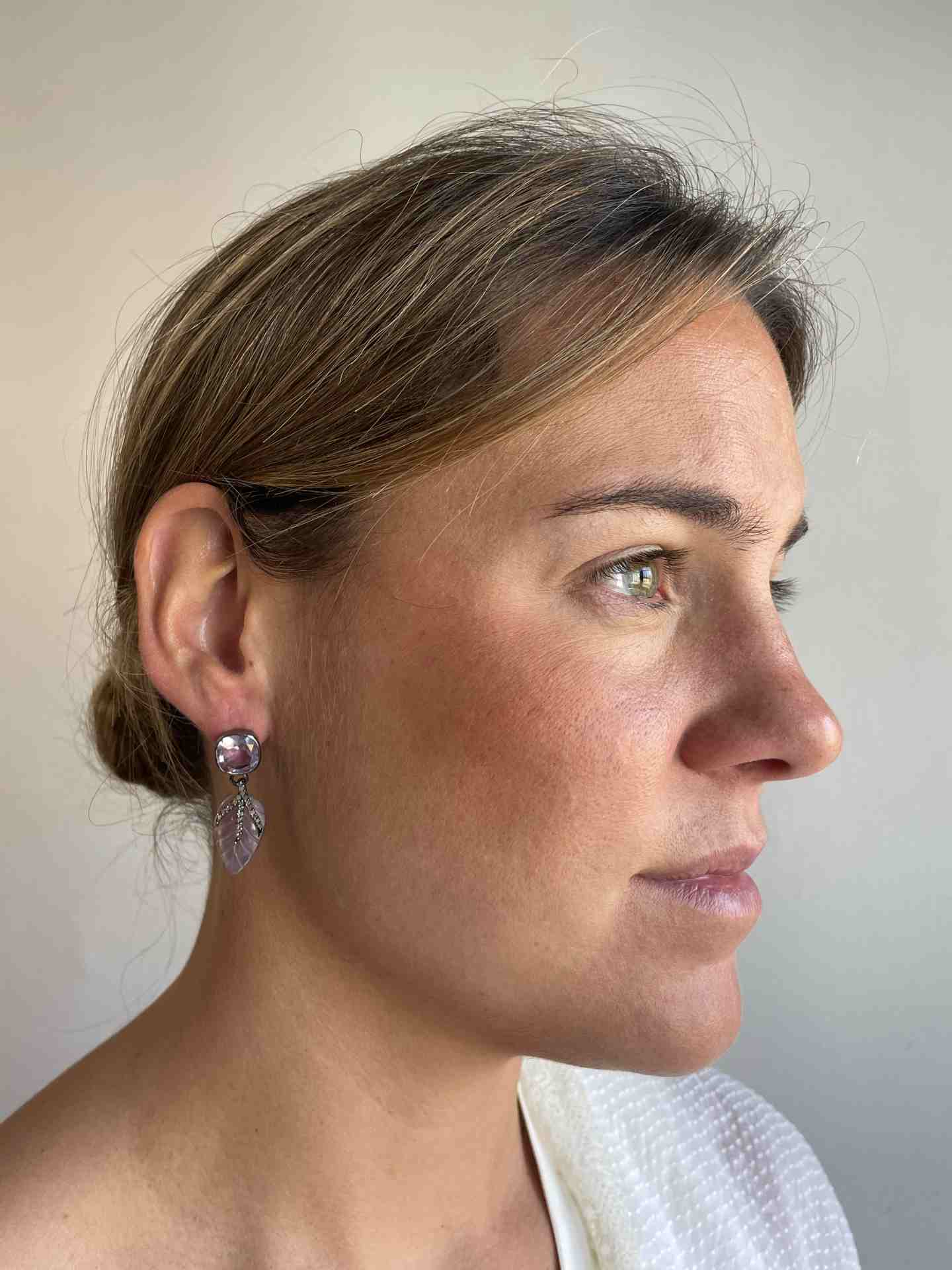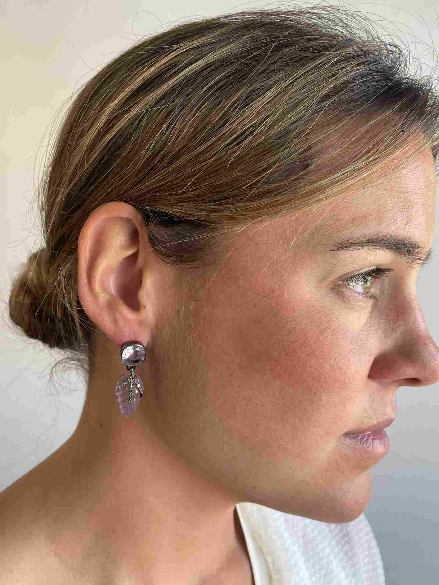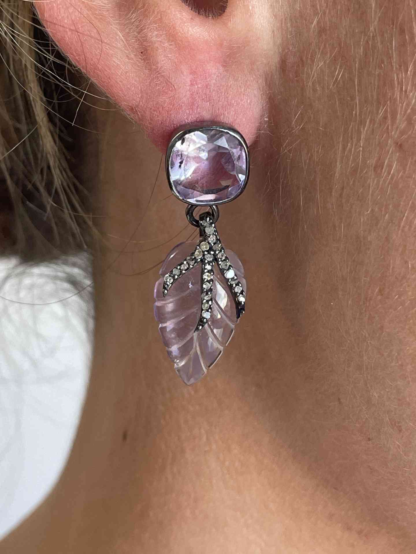 FOCA are earrings made of 925 sterling silver , rhodium-plated in black, with carved amethysts and brown rock-cut diamonds .