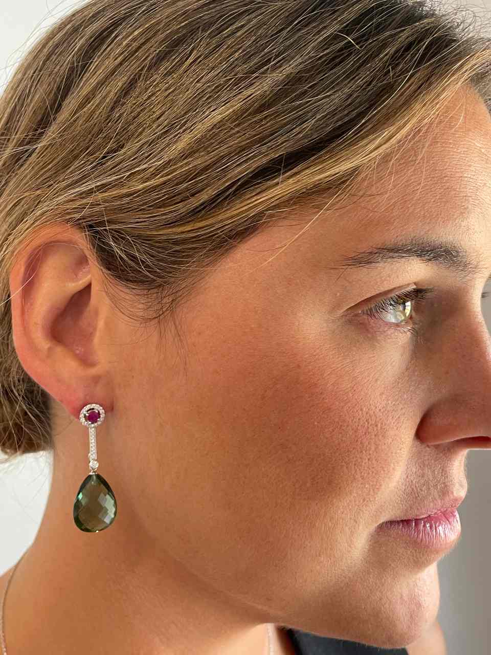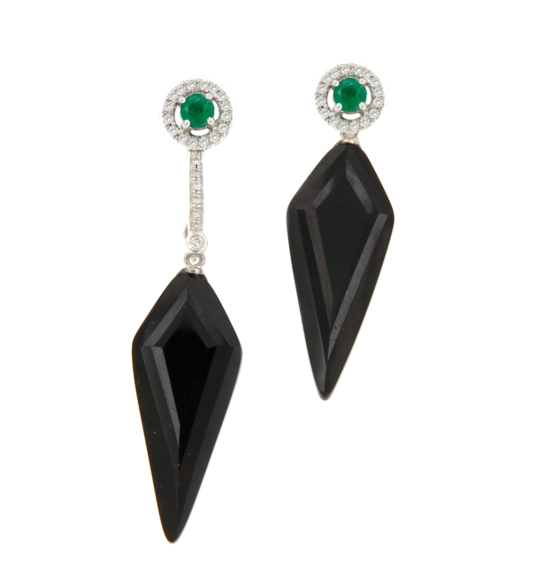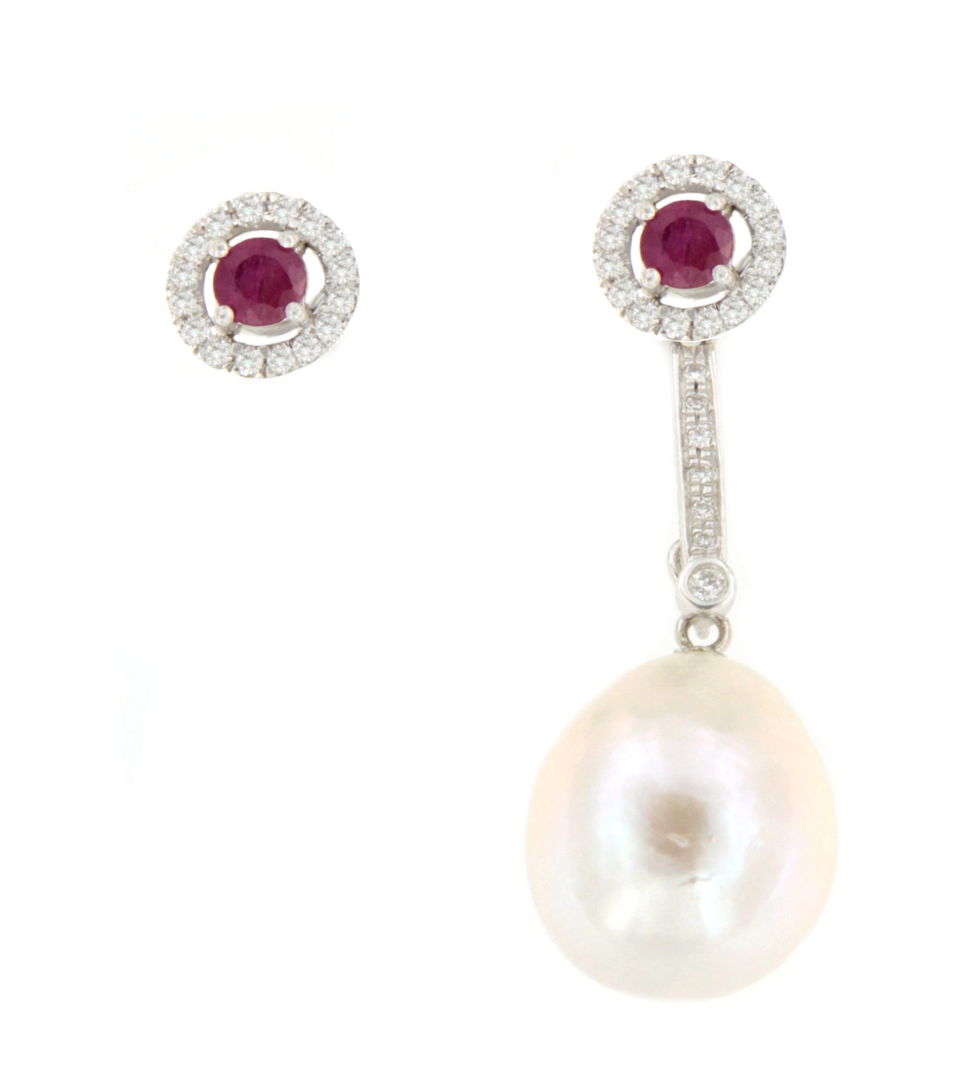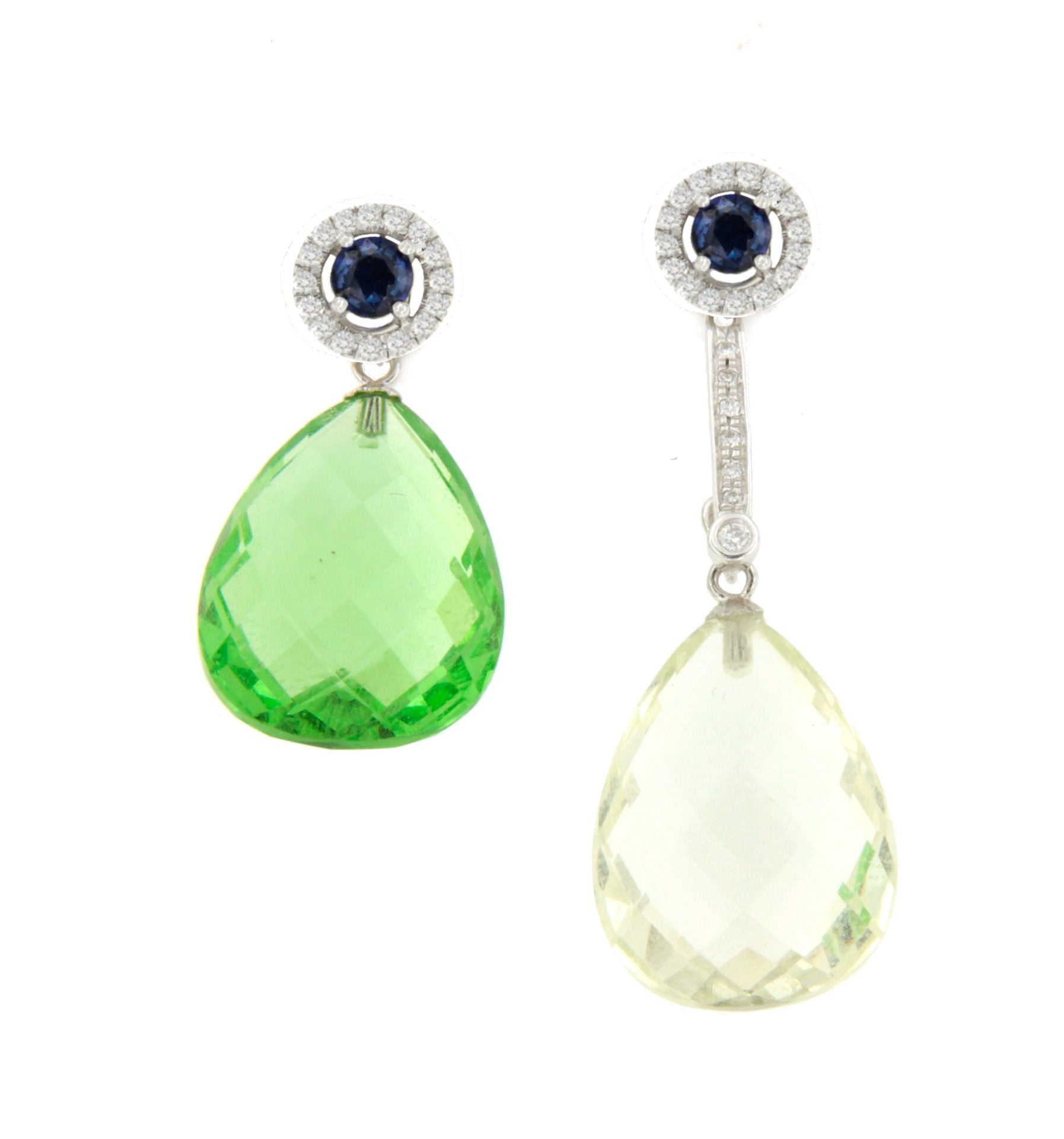 GAC, detachable earring in 18k white gold (includes detachable mechanism) with a center of sapphires, rubies, or emeralds surrounded by a halo of diamonds . Its success in white gold in the Ferrara model speaks for itself!