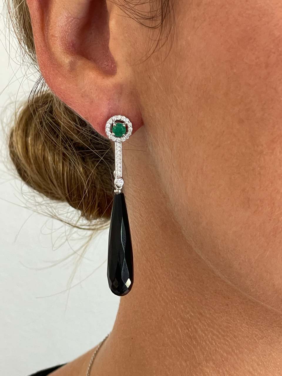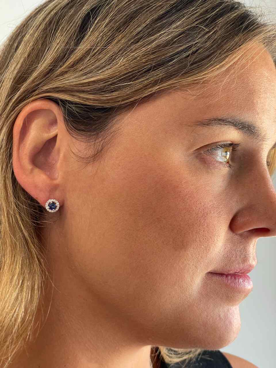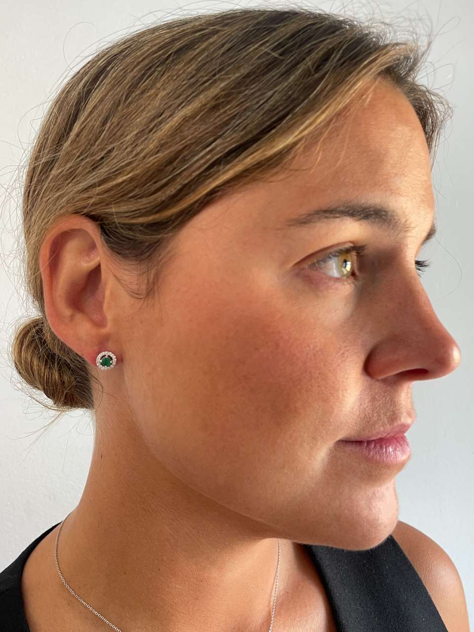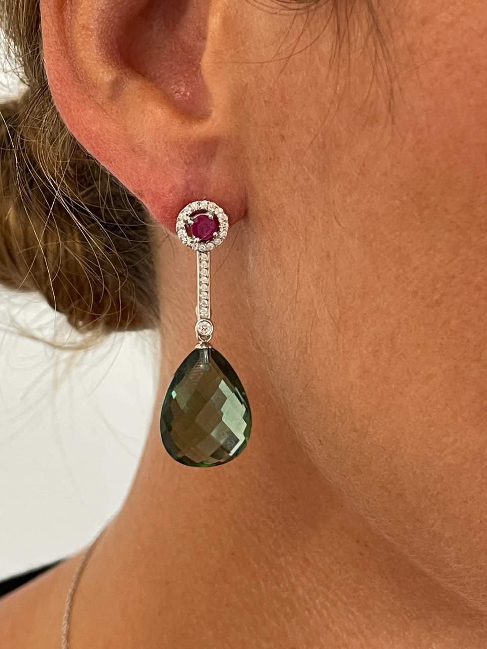 GAC, detachable earring in 18k white gold (includes detachable mechanism) with a center of sapphires, rubies, or emeralds surrounded by a halo of diamonds . Its success in white gold in the Ferrara model speaks for itself!