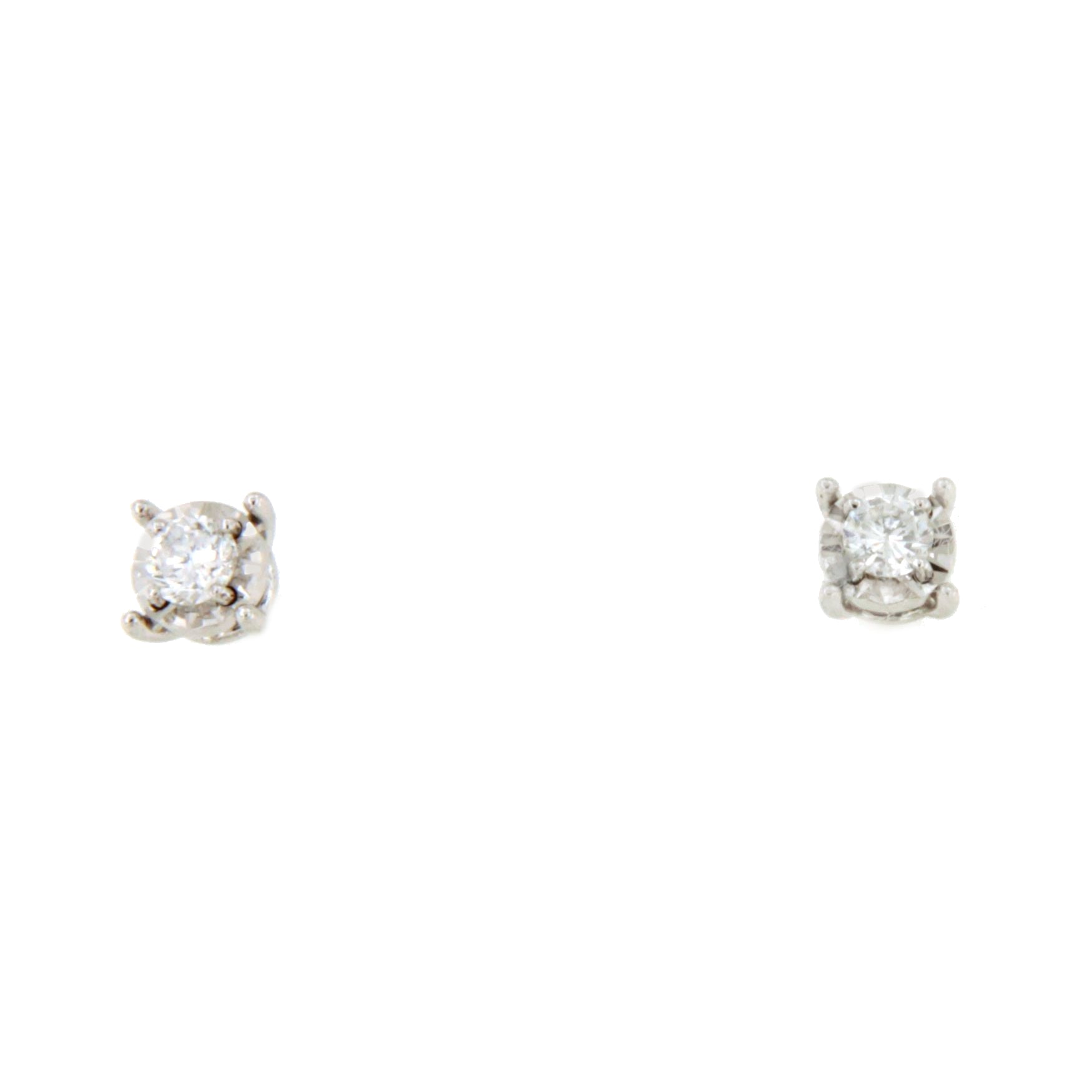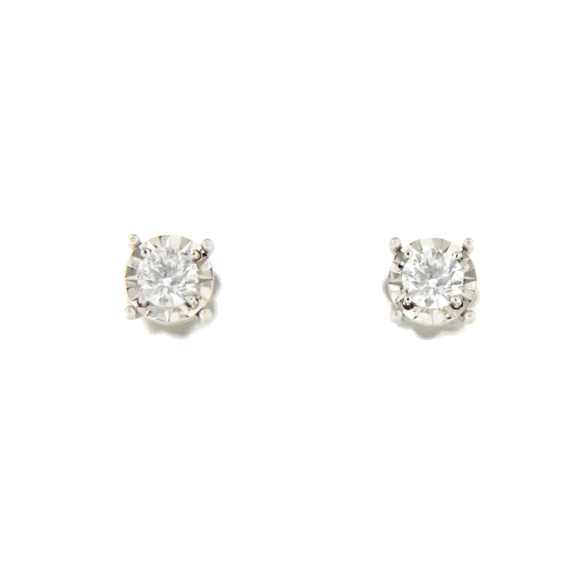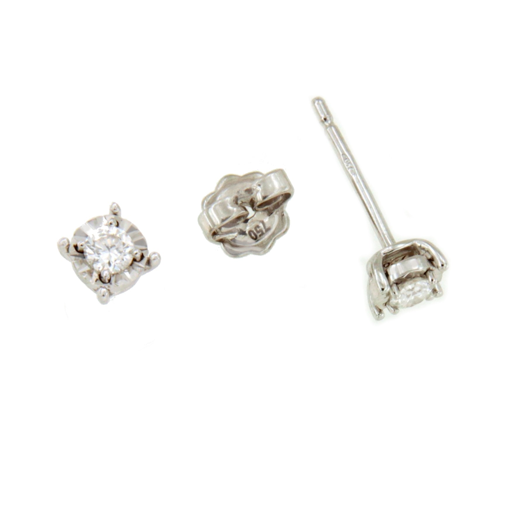 GUANA, are some sleeper earrings with diamonds on a diamond base These illusion earrings, set with four prongs, are crafted in 18-karat white gold and are ideal for everyday wear. Available in various sizes.