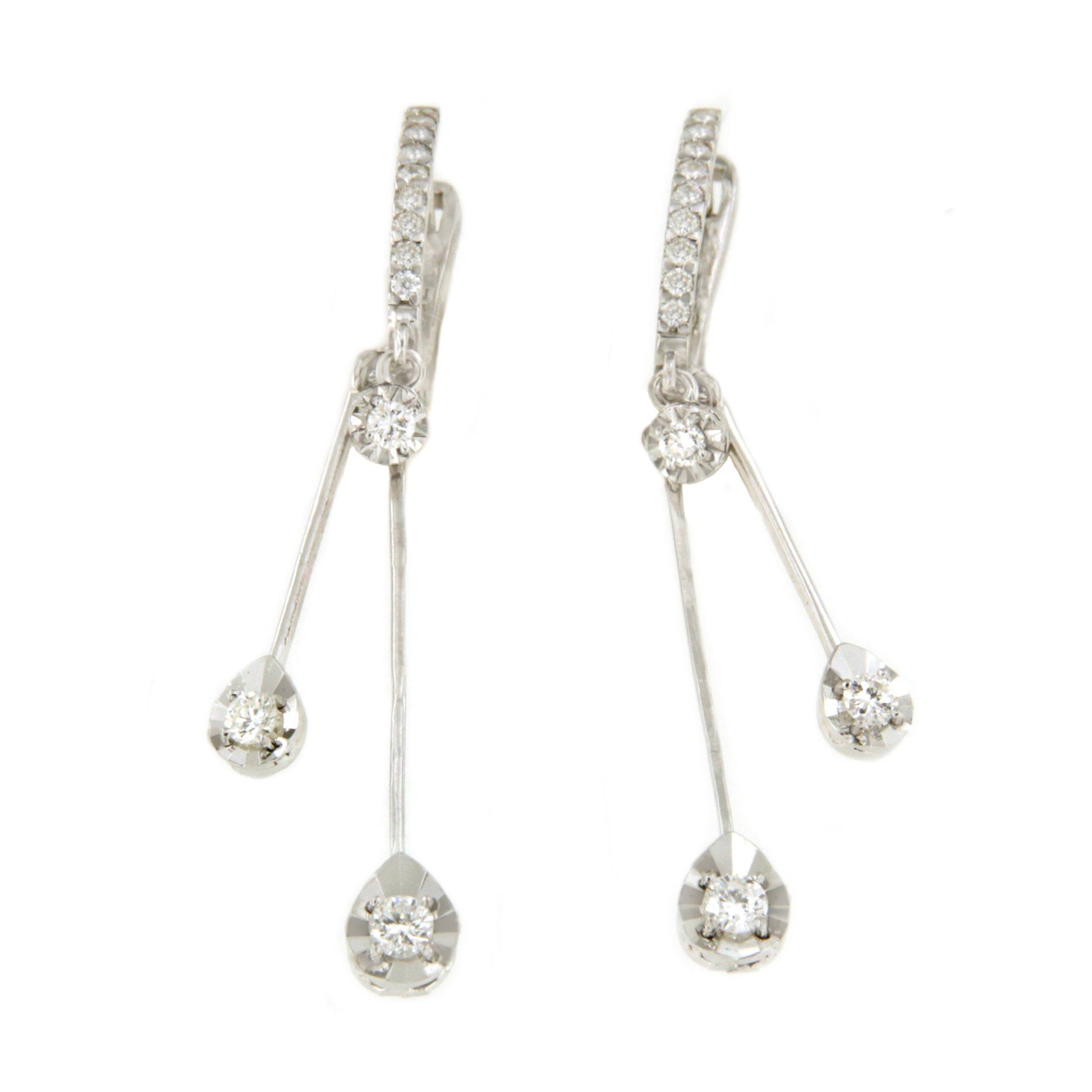 NANCY, long half-hoop earrings from which faceted pear-shaped stones with diamonds dangle. Very new . Made in 18k white gold .