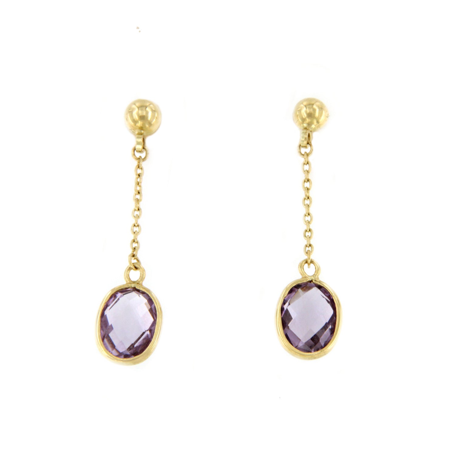 Crafted in 18-karat yellow gold , this earring captivates all who see it. Its long, sophisticated design features a delicate chain that culminates in a dazzling amethyst centerpiece , adding a touch of mystery and allure.