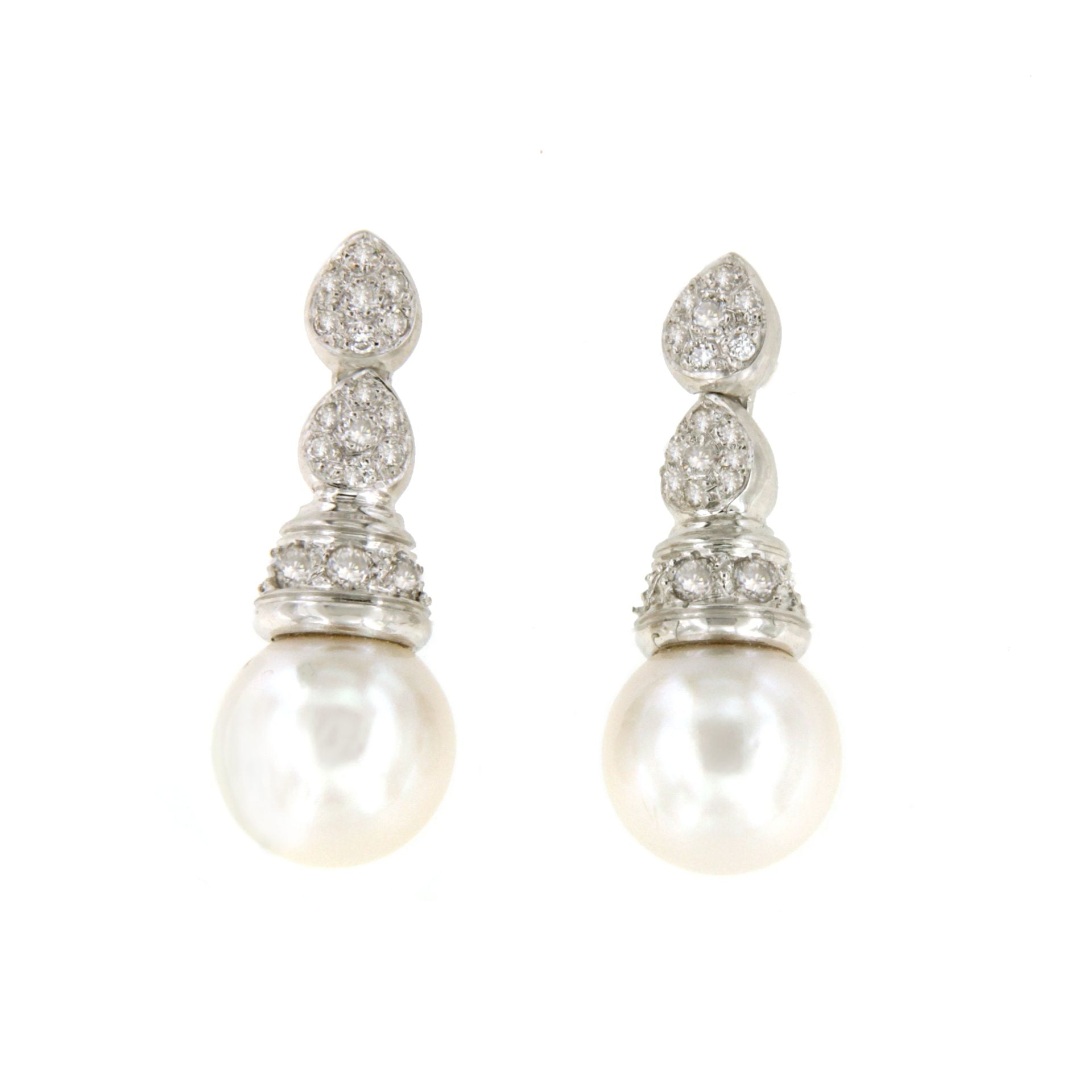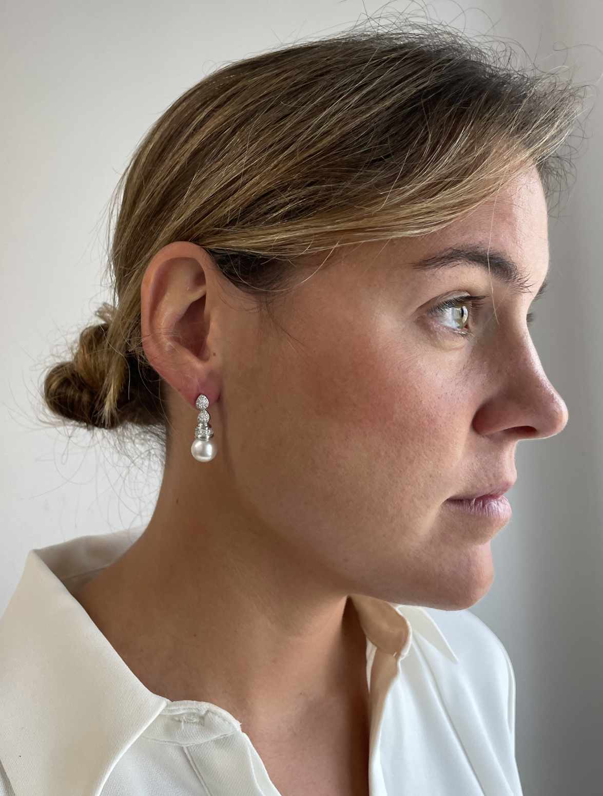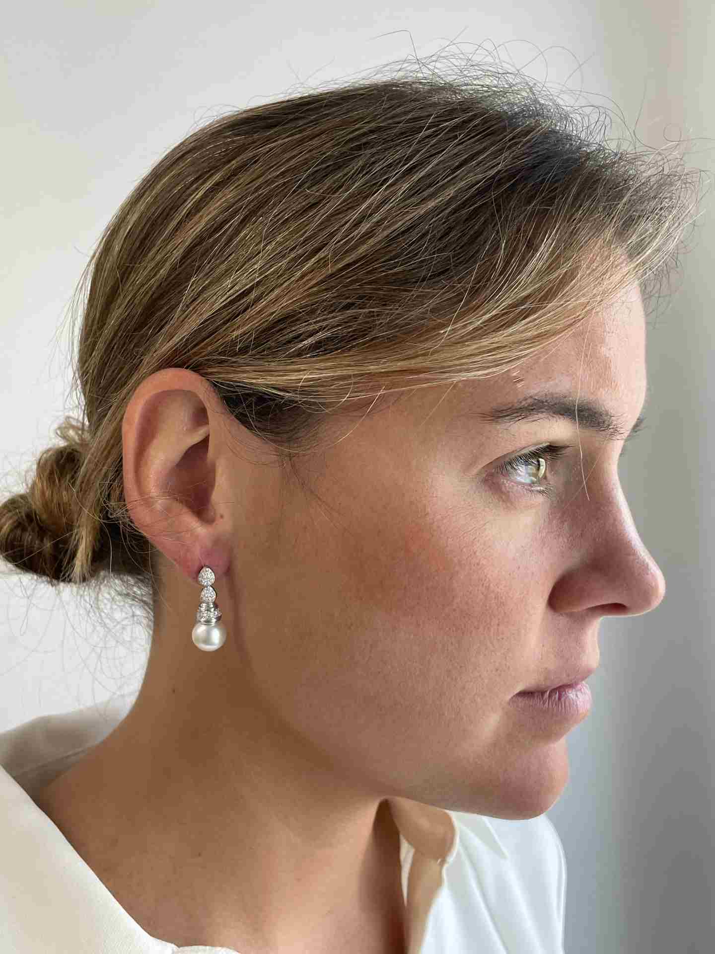 PATO are diamond earrings with 11mm Australian pearls, crafted in 18-karat white gold. A unique piece for any occasion.
