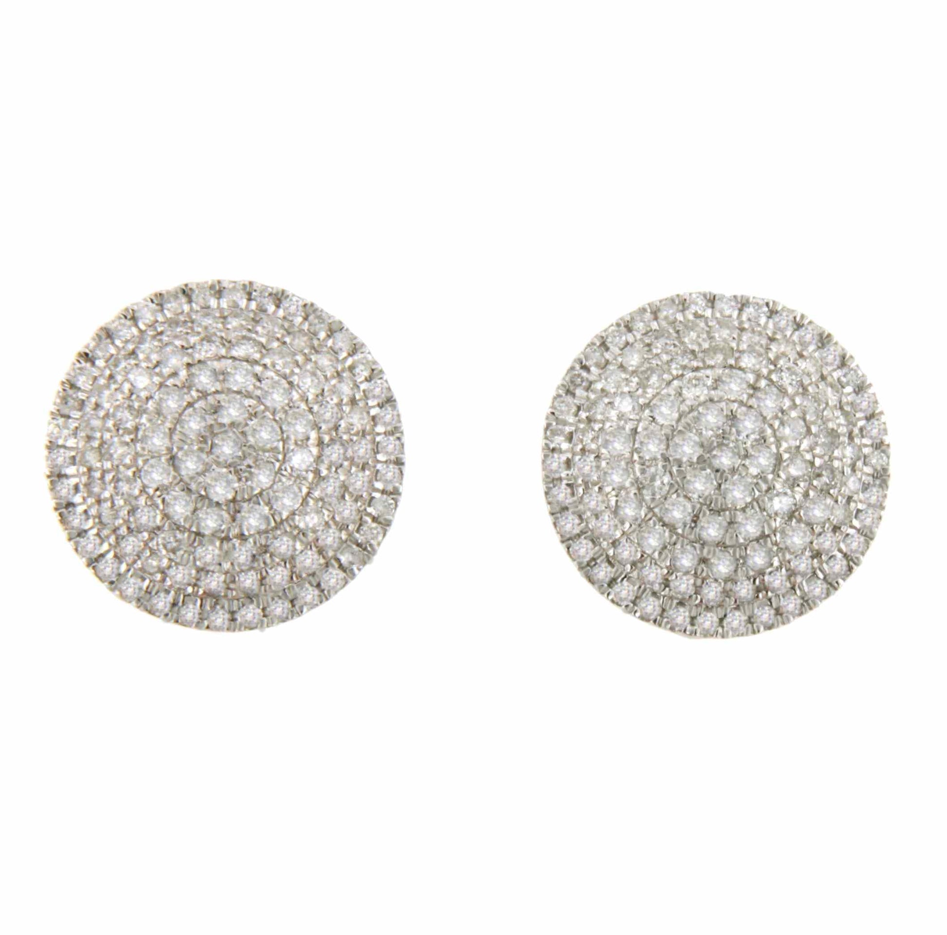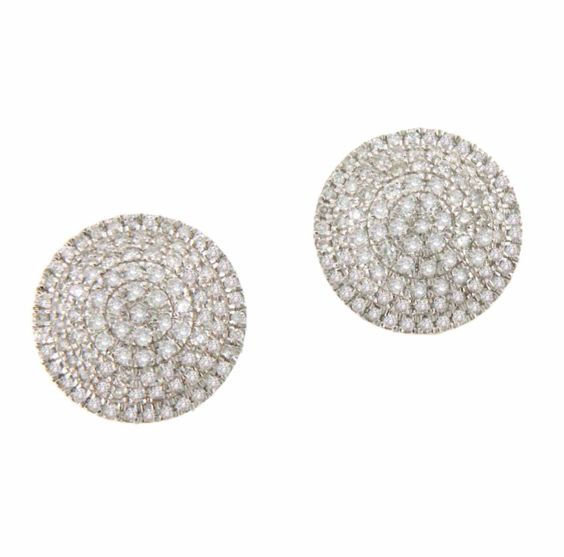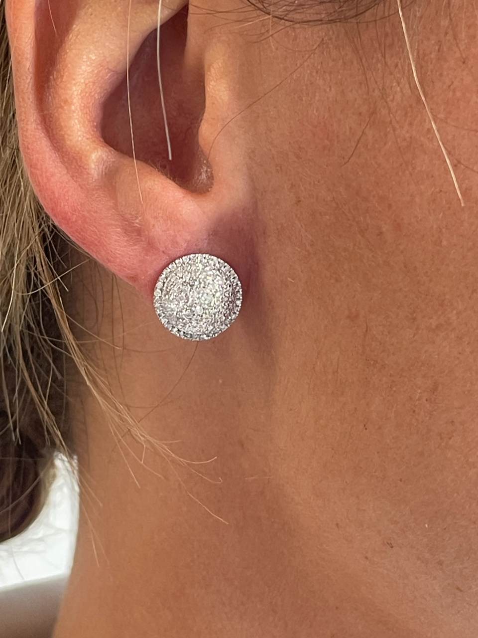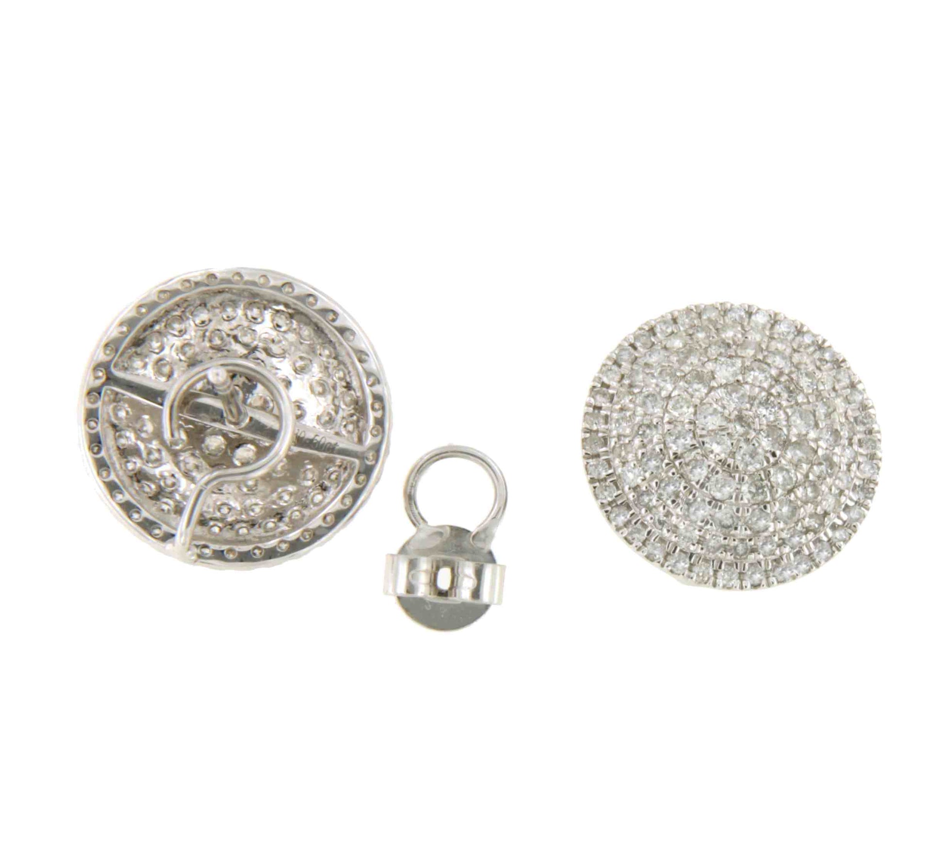 Detachable 18k white gold stud earrings with pavé diamonds.