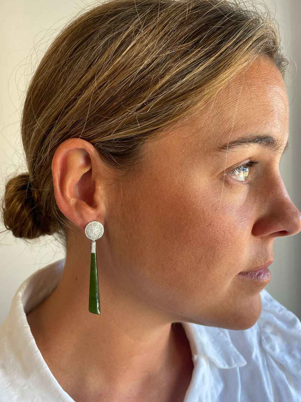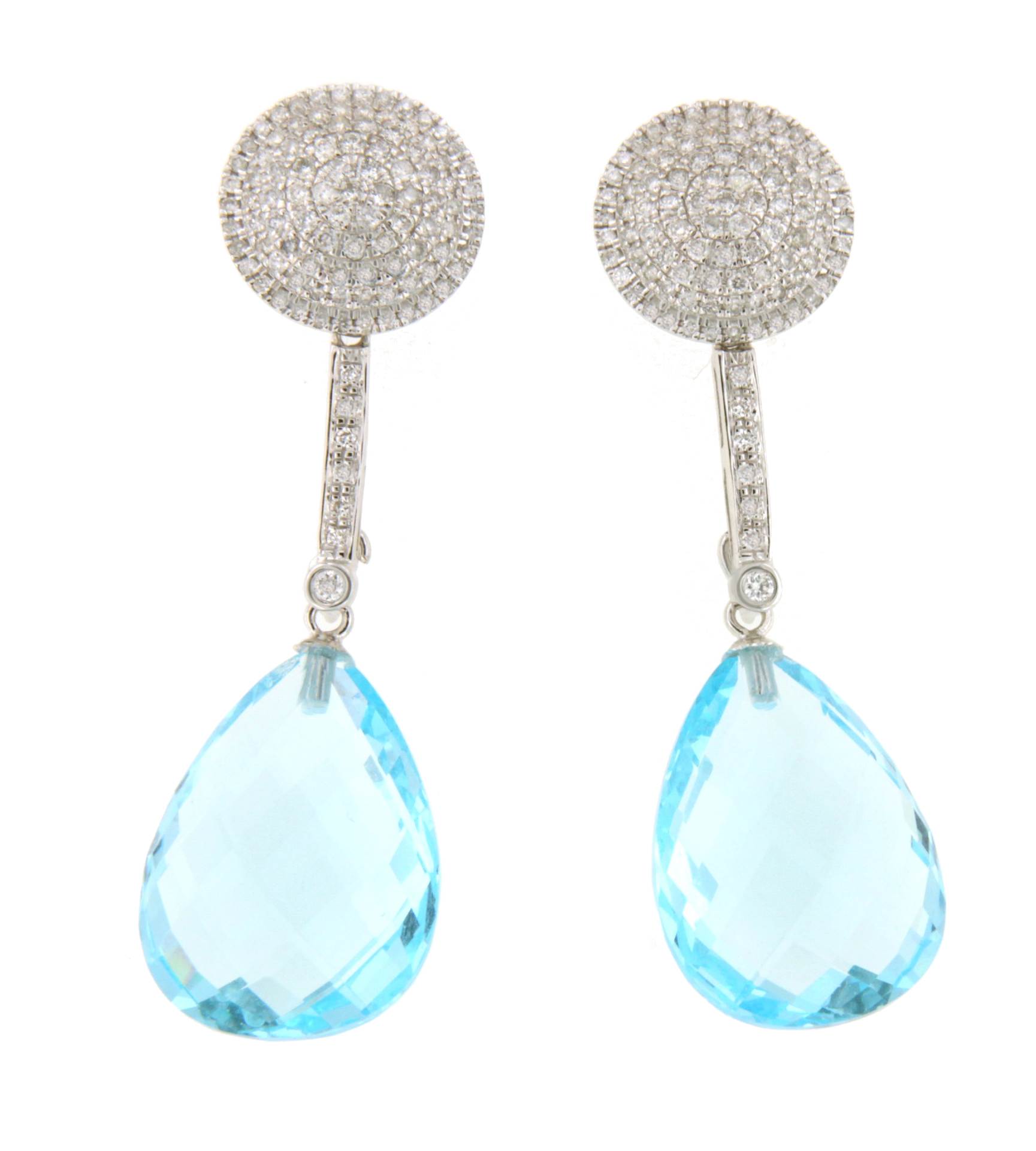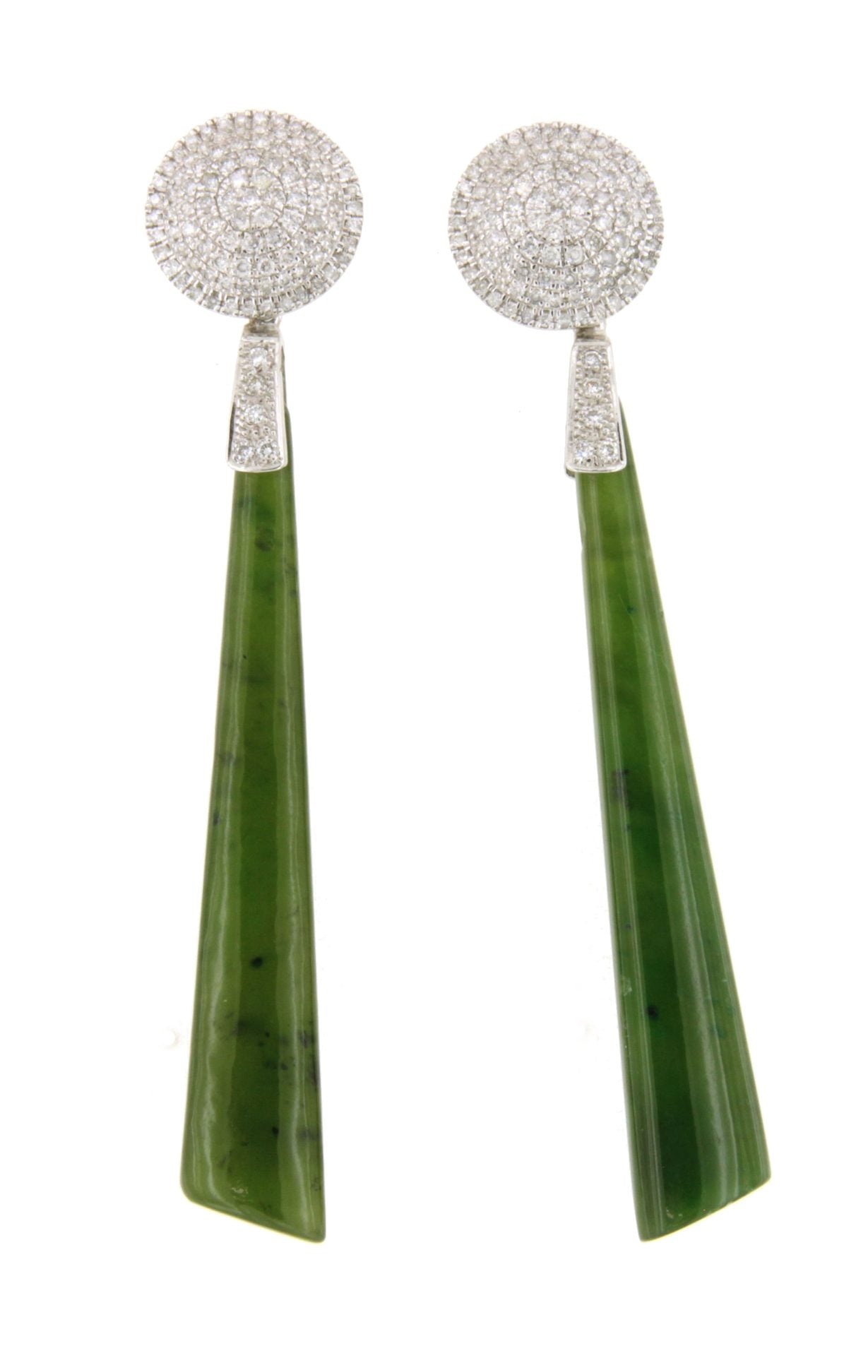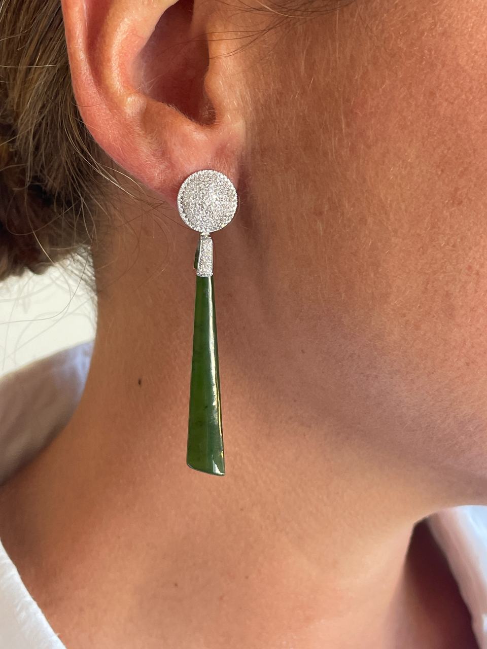 Detachable 18k white gold stud earrings with pavé diamonds.