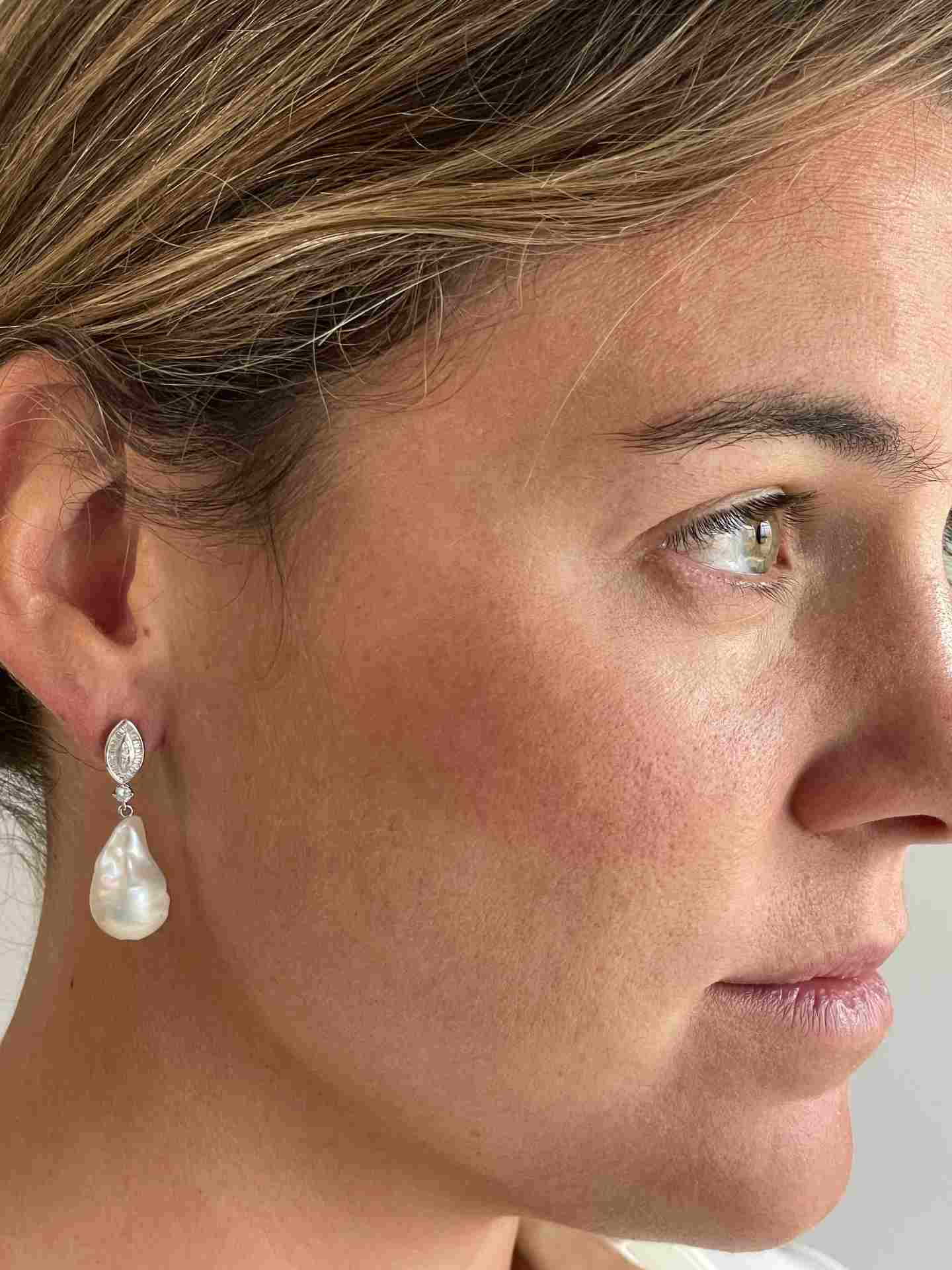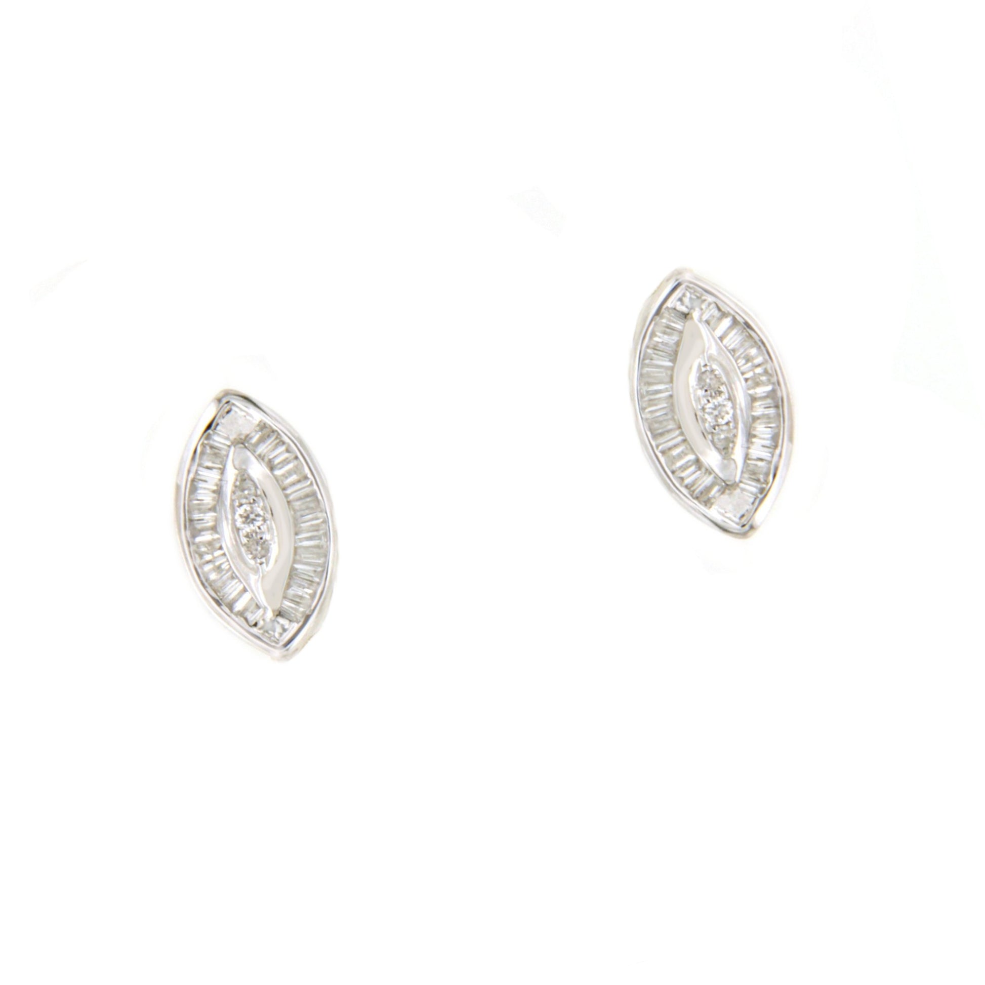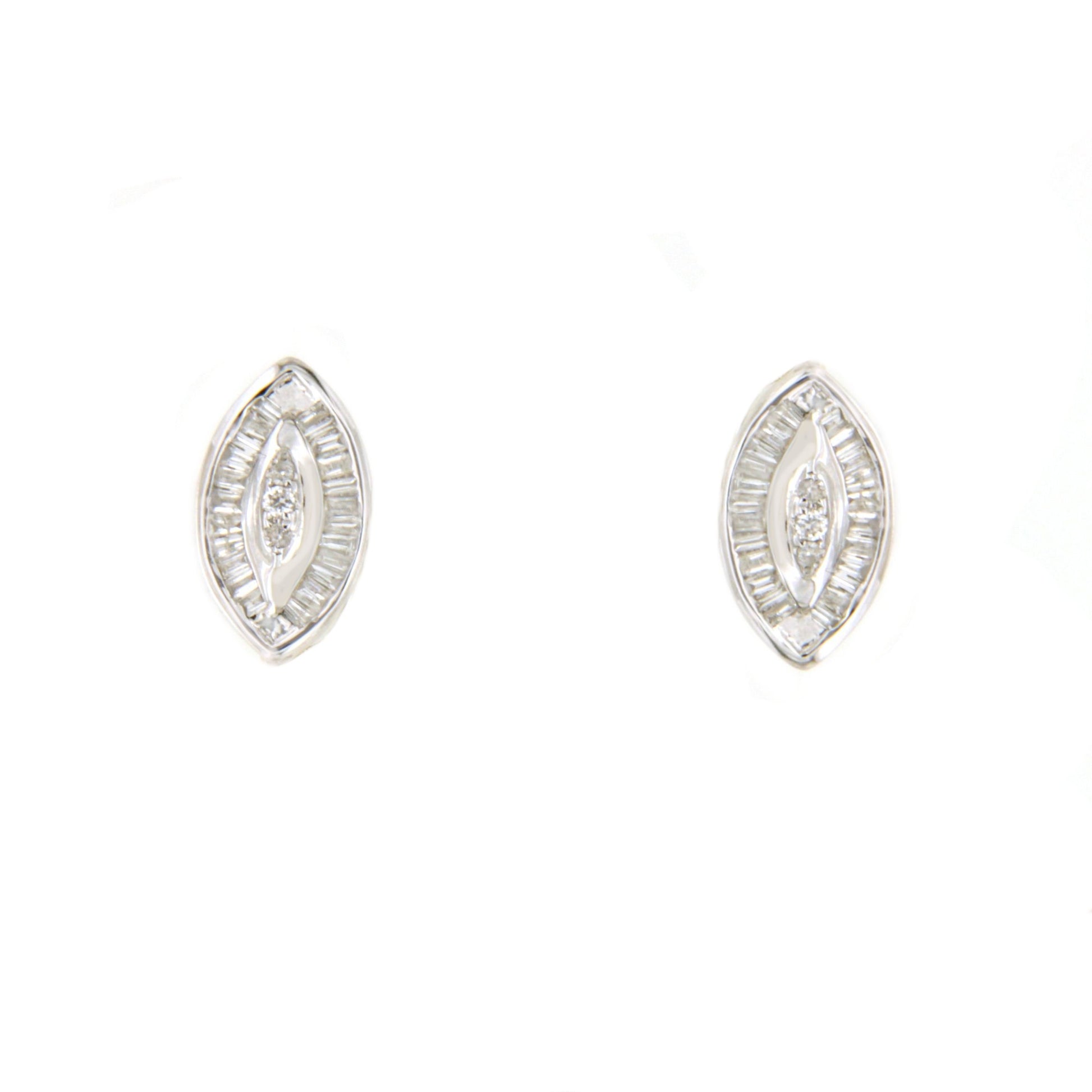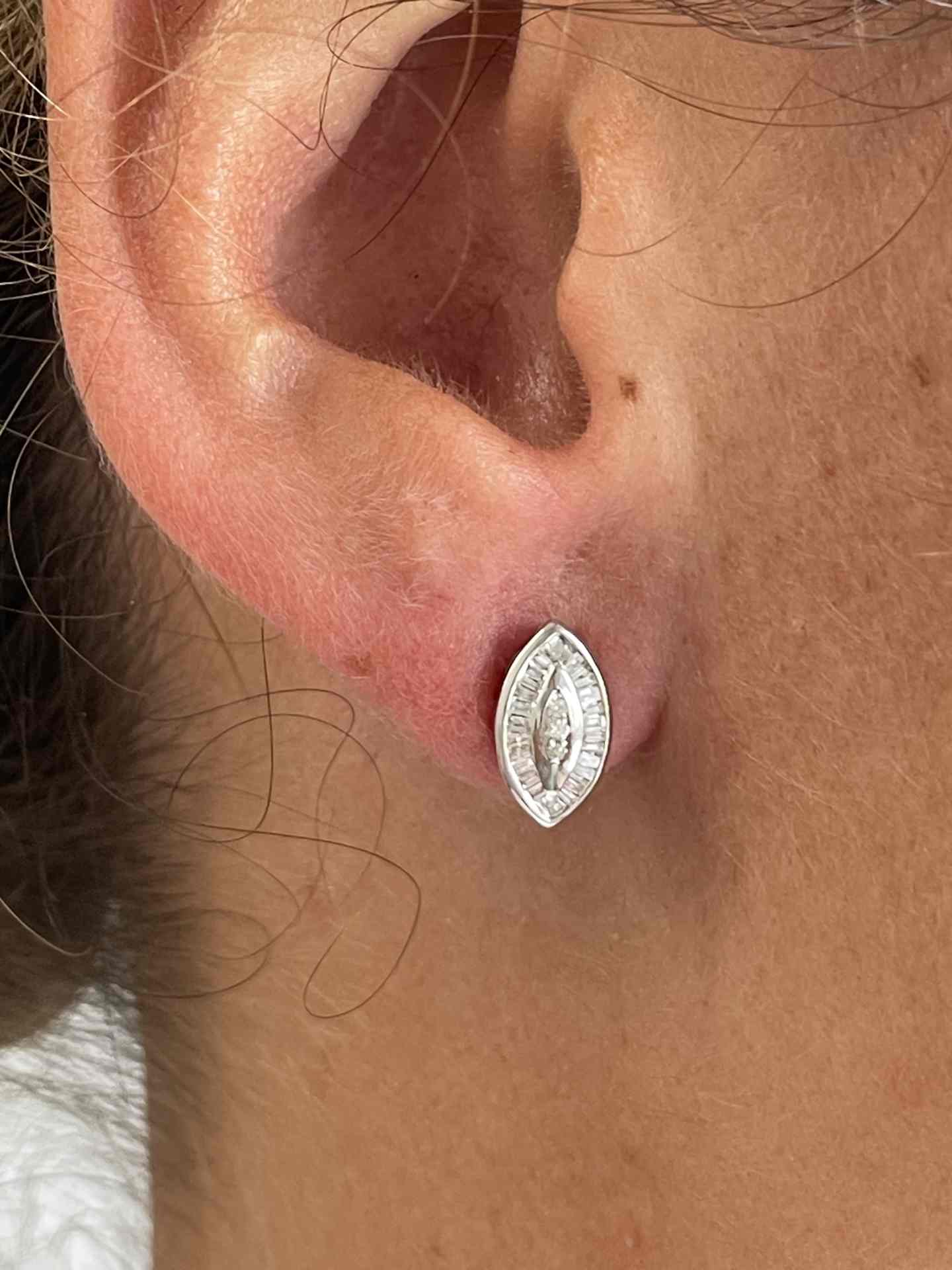 PITON is a detachable earring made of 18-karat white gold in the shape of a marquise with baguettes and diamonds.