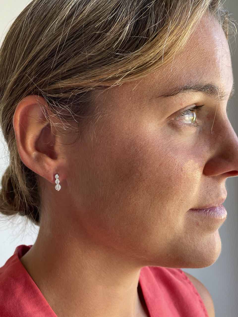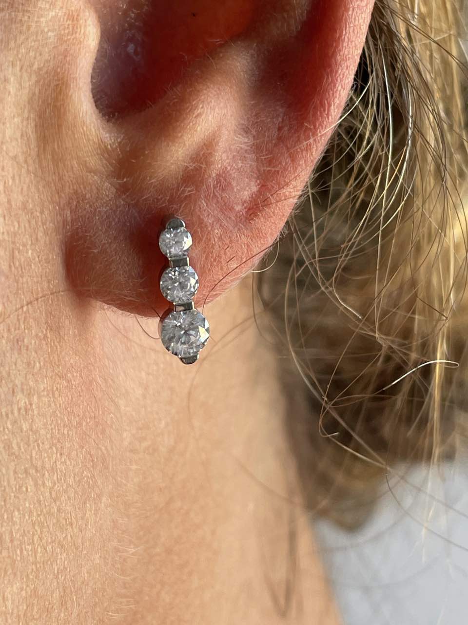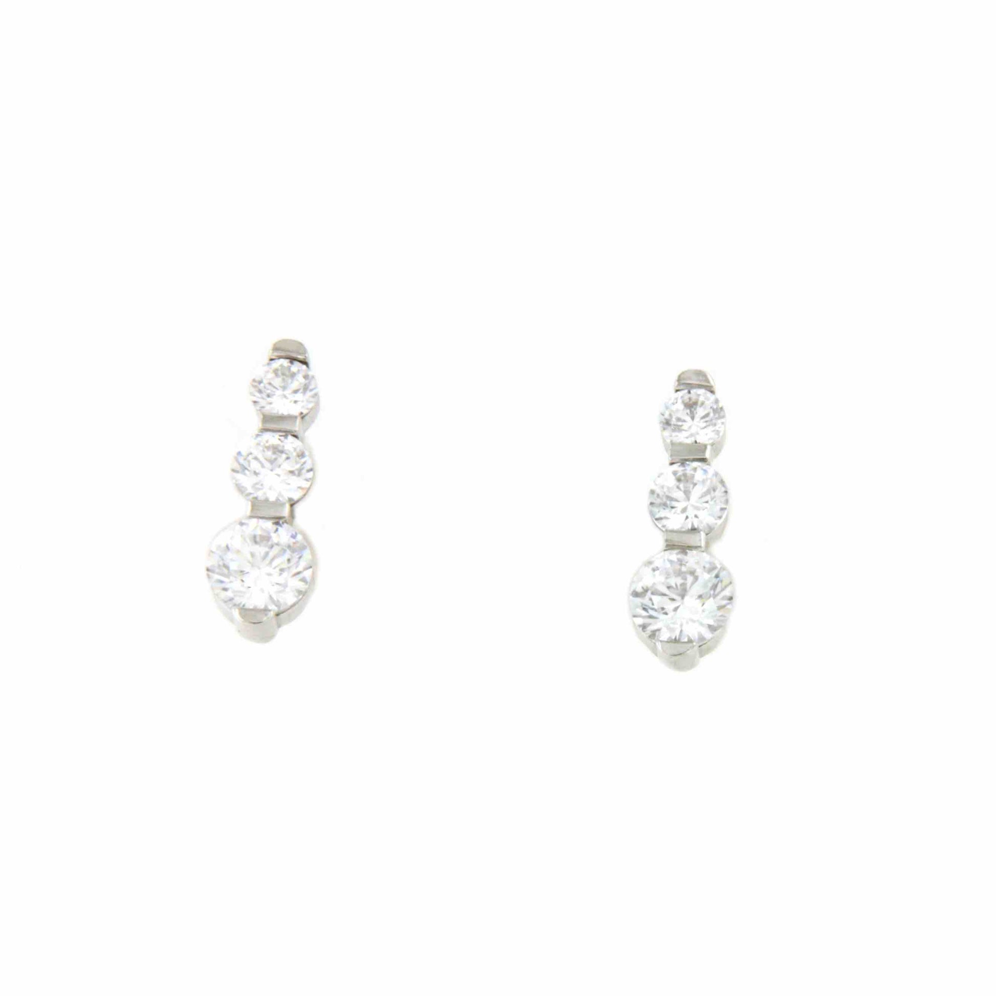 VARZIM are earrings with cubic zirconia of different sizes, set in 18-karat white gold . They have classic push-back closures.